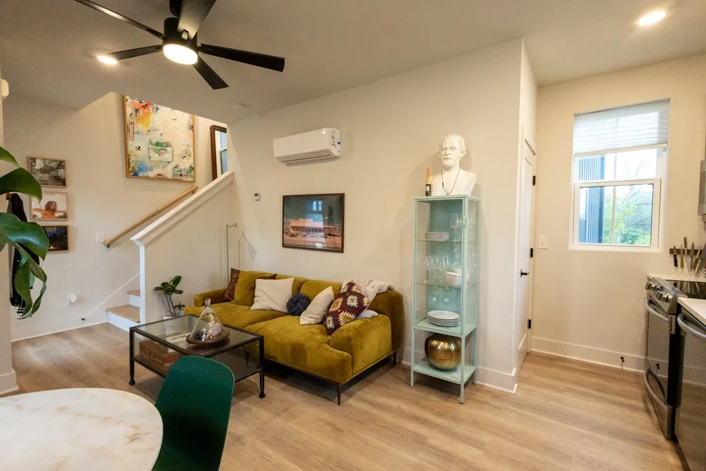 Enjoy the heart East Nashville in this commercially-zoned, 3-level, NOOSTR eligible townhome. Conveniently located near Shelby Bottoms Greenway, world-class restaurants, entertainment, and shops. Flooded with natural light, this unit offers contemporary LVP flooring, all-wood cabinetry, stainless appliances, and a massive rooftop terrace. All appliances and systems are only three years old; each floor is individually heated and cooled to control energy costs. Low maintenance and turnkey, whether you plan to owner-occupy or add to your STR portfolio. Plenty of parking, both reserved and on road.