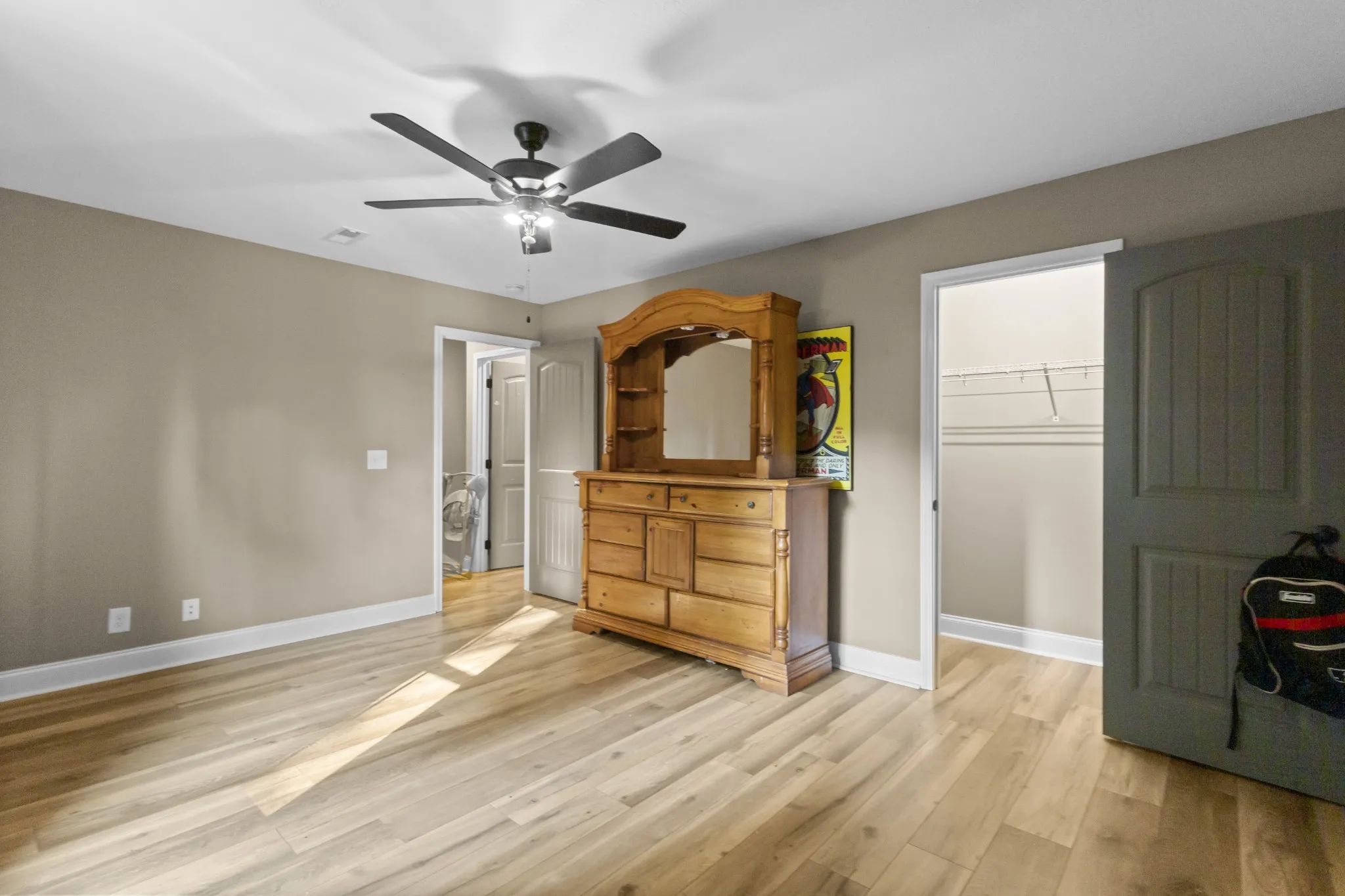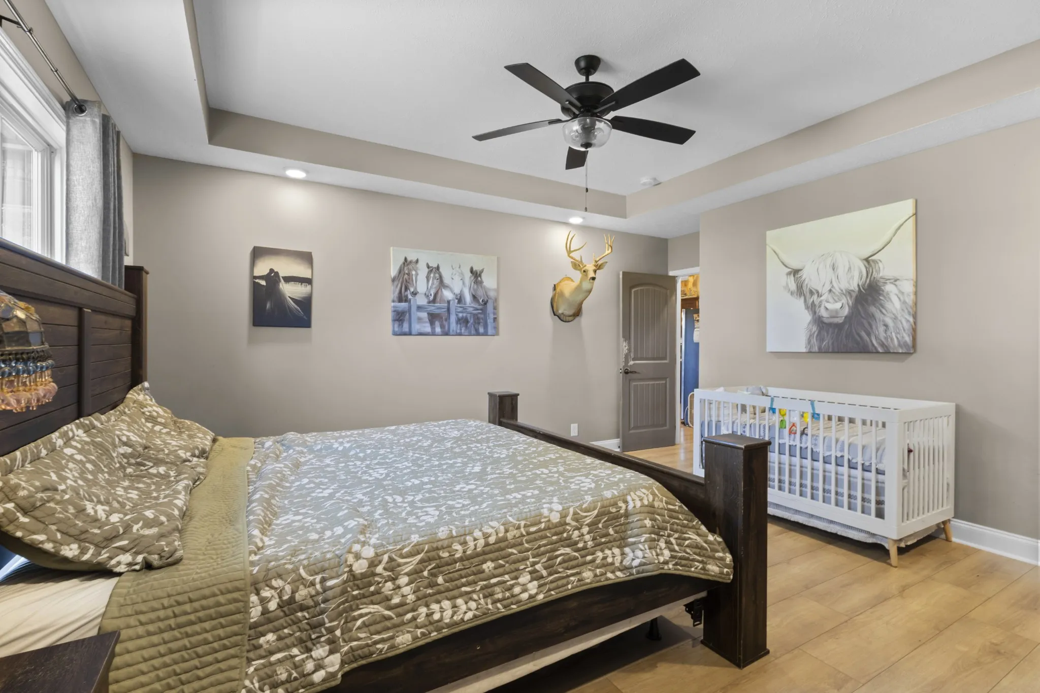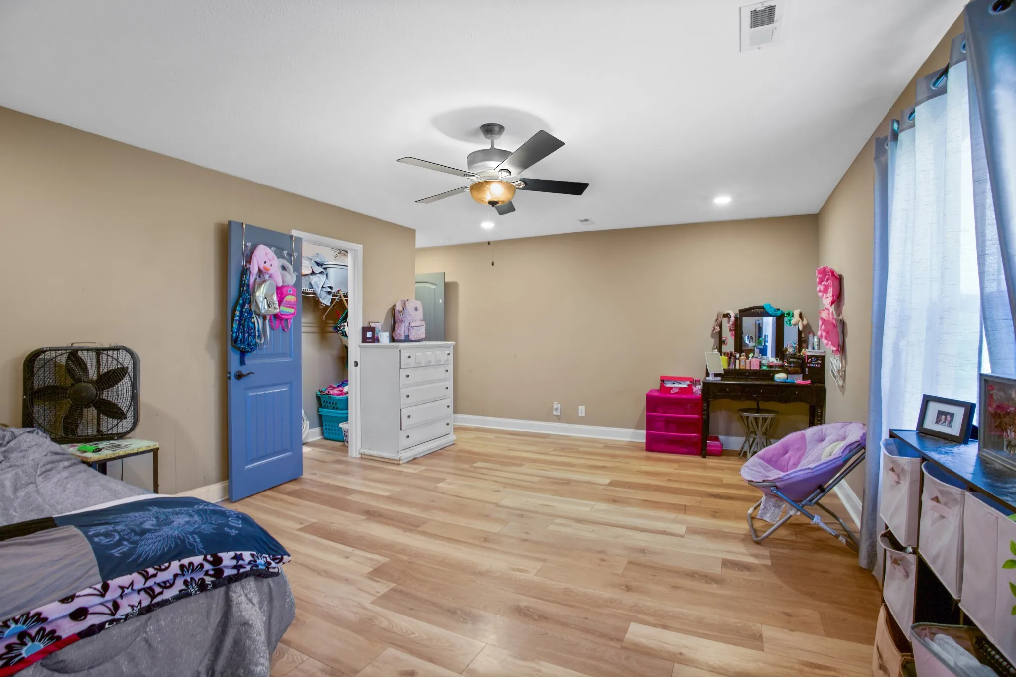 Owner/Agent! Front door opens to beautiful open floor plan with coffered ceilings. Open concept into the kitchen w/granite countertops, tile backsplash and stainless steel appliances to include refrigerator. Primary bedroom on main floor has beautiful tray ceilings and a full double vanity with tile shower/tub combo and a spacious walk in closet. The remaining 4 bedrooms are spacious rooms with their own walk in closets. This house was built for space and storage. Over half acre fenced in back yard! Perfect for your new mini farm. Enjoy many summer nights off that covered back patio! NO HOA! No City Taxes!