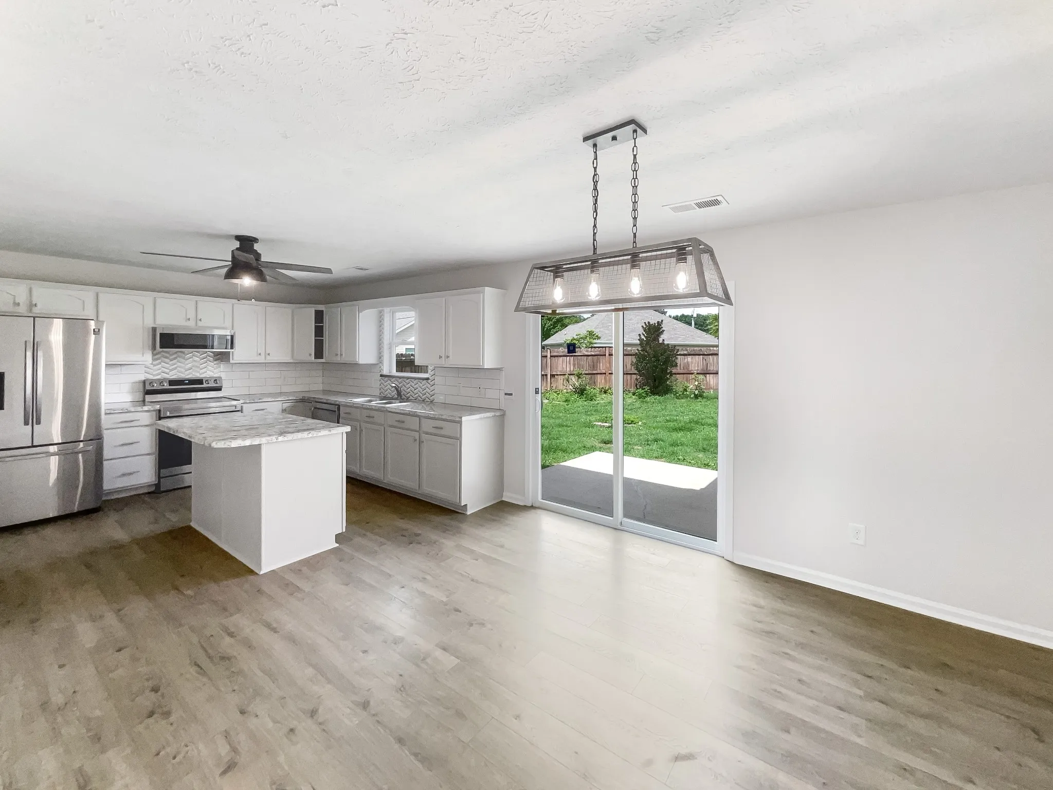 Welcome to this beautiful property with a serene ambiance, thanks to its neutral color scheme. The modern kitchen features a stylish island, ideal for entertaining and meal prep, and an elegant backsplash that complements the stainless steel appliances. Enjoy the patio for relaxing on sunny afternoons, and appreciate the privacy and security of the fenced-in backyard. The freshly painted interior adds to the clean, inviting atmosphere. This home blends comfort and style perfectly—don’t miss out! Seller may consider buyer concessions if made in an offer