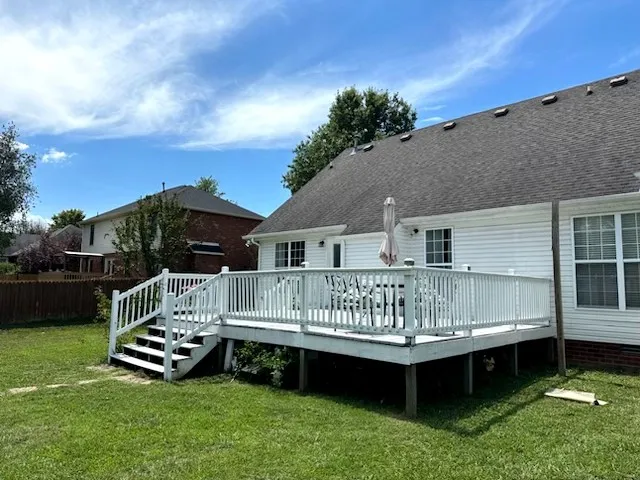 Move-in ready and no HOA. Large contemporary living area with fireplace and beautiful lighting, kitchen has abundant cabinet and drawer space. The biggest primary bedroom you’ve likely ever seen: even has an extra seating/work area wing. Two more bedrooms share a second bath. No carpet in this home! Utility room (washer/dryer stays), two-car garage. New HVAC. Spacious back deck with large, flat backyard (0.43 acre). Convenient to Veterans Hospital, Miller Coliseum, and not far to MTSU.