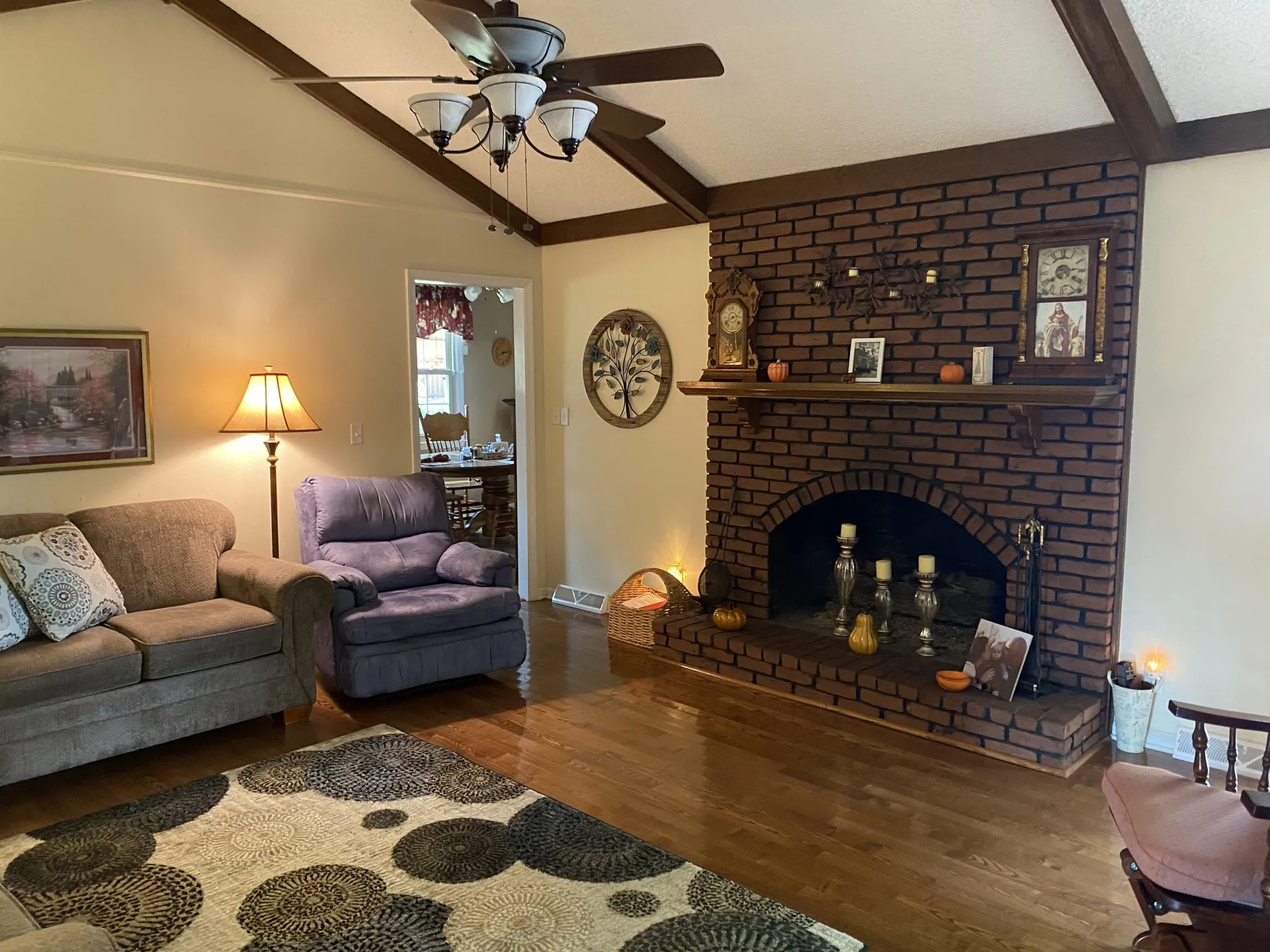 Charming one-level home in Lebanon City Limits! Well-maintained, 3 beds, 2 baths, living/dining combo, kitchen/eating combo with gas stove. Family room features a gas fireplace and vaulted ceiling with wood beams. Bonus room with built-ins and office space. Spacious laundry room, 2-car garage with ample cabinets. Hardwood, carpet, and tile flooring. Shed included. Convenient location, 5 minutes to grocery stores, shopping, coffee shops, and restaurants. A fantastic home with great features!