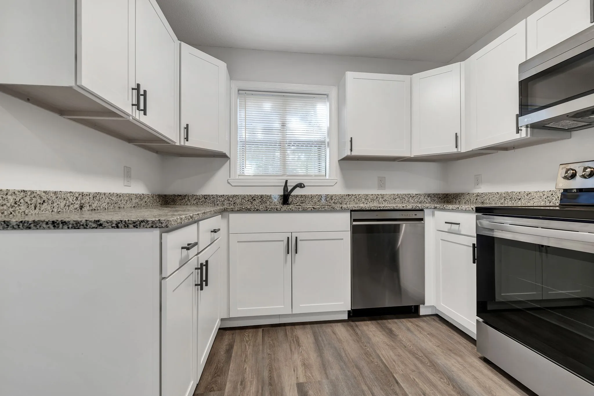 Sharp Renovation includes all-new kitchen with GRANITE and STAINLESS LG appliance package. All new flooring-grey LVP on main level and fresh new carpet up. Each bedroom has it’s OWN full updated bath! The 1/2 bath downstairs is also updated. Private deck and fenced backyard. Excellent opportunity to have a great home OR addition to your investment portfolio. NO HOA!