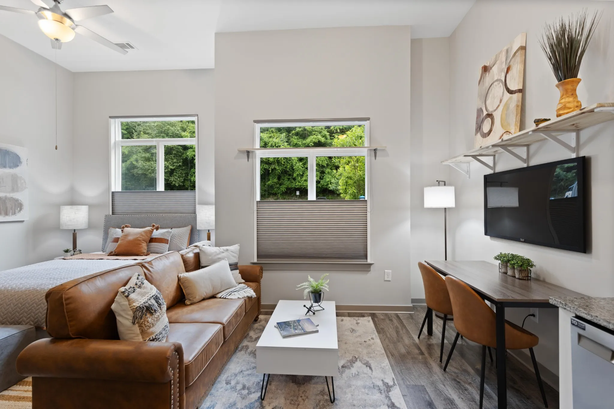 Amazing & convenient location in Downtown Chattanooga, just blocks from the downtown Riverfront area. Easy access to the 16+ mile Tennessee Riverwalk. Desirable Building with great amenities. Spacious efficiency studio apartment on the first floor with extra tall ceilings for additional storage space. Large convertible living space, dining area and kitchen with granite counters and stainless steel appliances. Full bath with laundry area (washer & dryer stay). Large pantry/storage space & lots of natural light with the use of the honeycomb up/down, down/up blinds. Customize to your liking and needs! Dog friendly environment with greenspace, potty bag station and there is even a luxury dog washing/blow drying room for residents! Amenities include a nice pool area, Exercise room and a large common space room for possible entertaining or lounging.