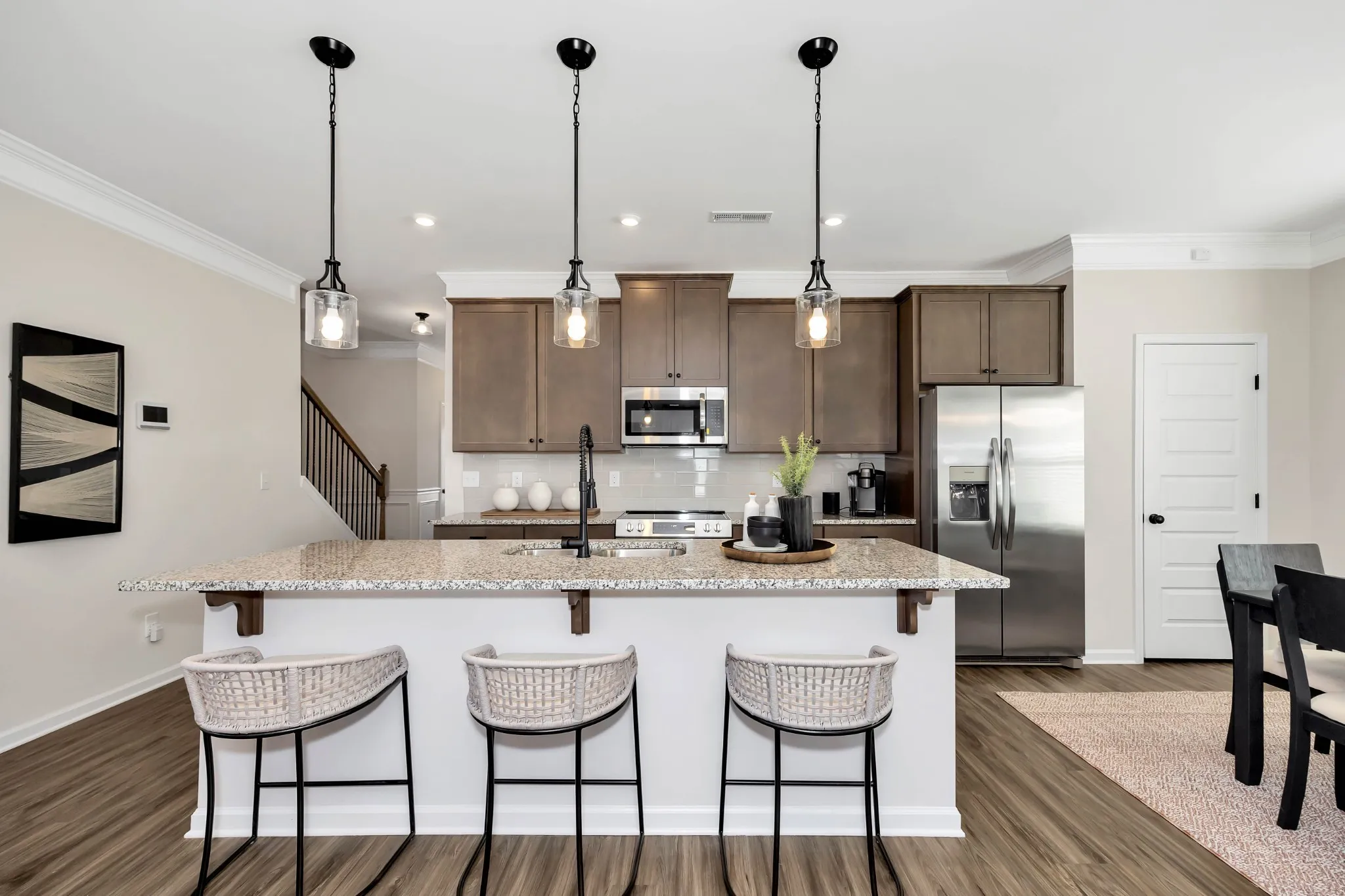 The Braselton II at Stratford Station by Smith Douglas Homes has a rear corner covered patio, directly accessible from the light-filled family room. A large eat-in island kitchen overlooks the family room for easy entertaining. On the second floor, a spacious loft can be optioned to a fourth bedroom and separates the private owner’s suite from two secondary bedrooms. The owner’s suite includes a massive walk-in closet, and private bath, and has easy access to the second-floor laundry room. **SPECIAL INCENTIVE UNTIL SEPTEMBER 30TH!!!! Save 50% on options up to $20,000!!!**SELLER BUYING DOWN RATE TO 4.875%!!!!**