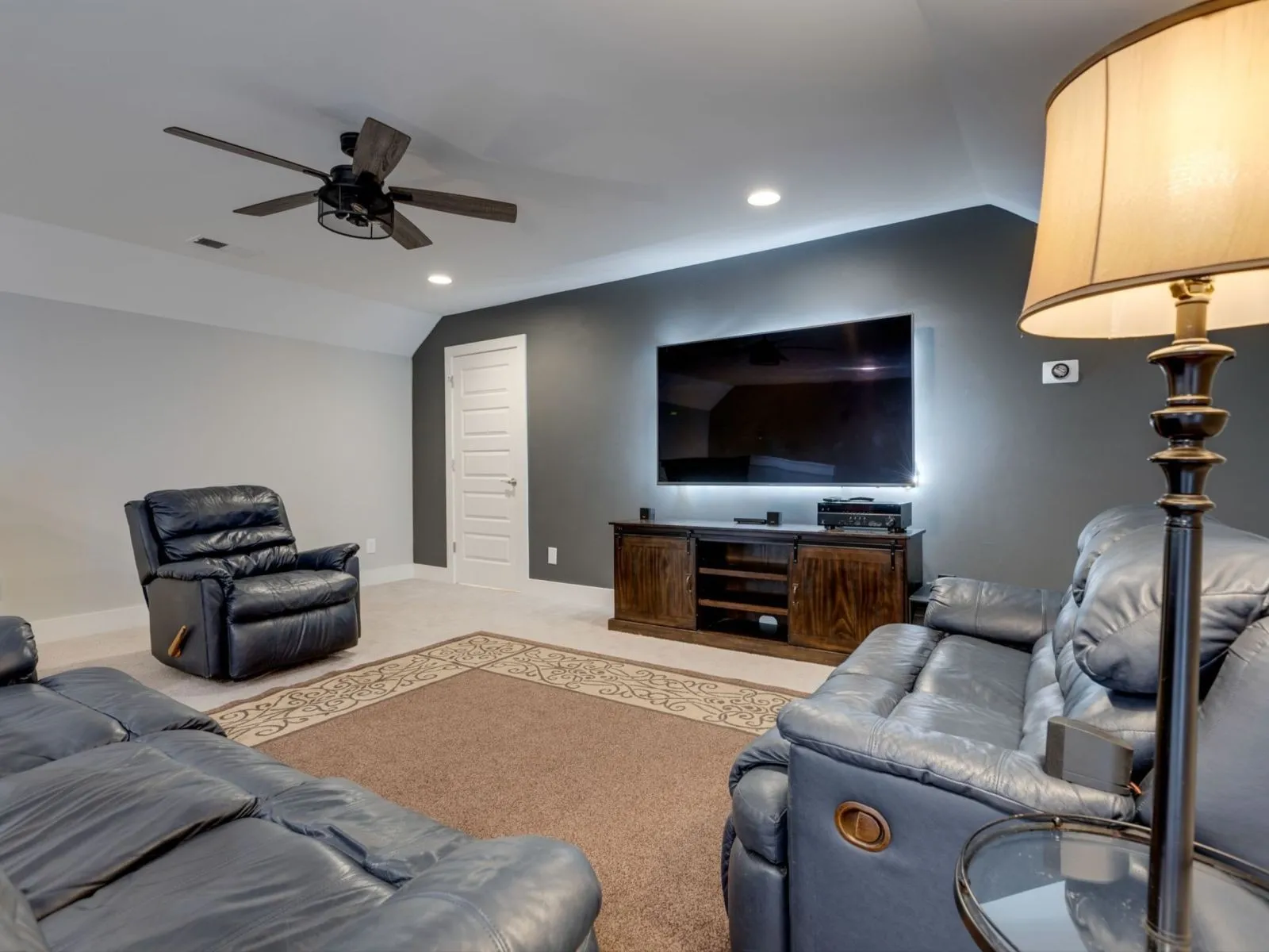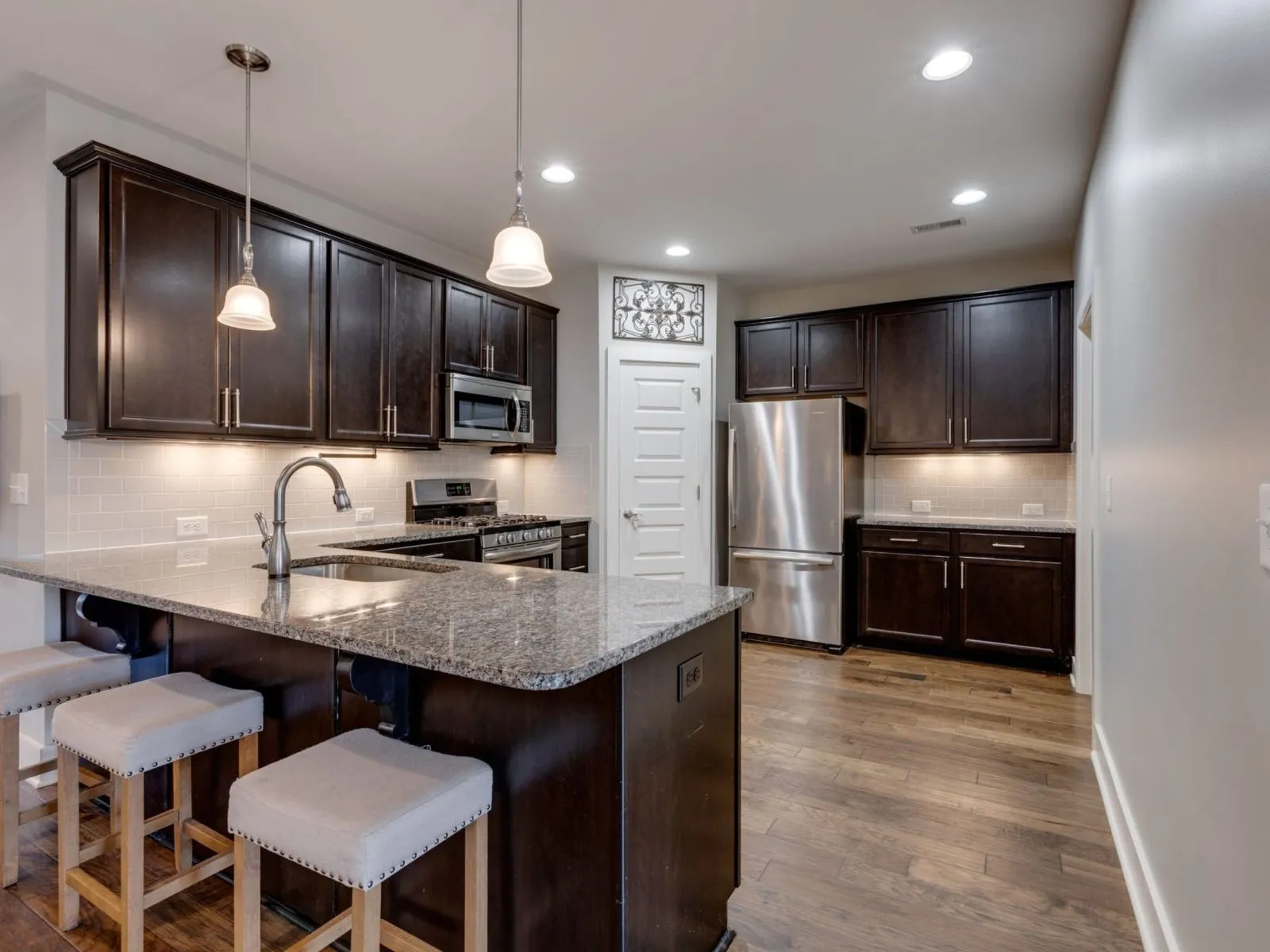 Charming 3-bed, 3-bath townhome in lovely Waters Edge boasts a spacious layout perfect for families and entertaining. Sparkling, open kitchen with upgraded appliances, granite countertops/bar seating, gas range, generous pantry, and refrigerator. Owners suite, 2nd bedroom, and sunroom located conveniently on the main. Spacious 2nd floor bonus room hosts a ready-to-go media room complete with leather couches, 75” 4k TV with entertainment center, and Bose 5.1 surround sound. Also has a 3rd full bathroom with spacious walk-in closet and makes excellent 3rd bedroom. Lovely, gated courtyard (secure for pets), and just across the street is a community playground with gorgeous open green space. Connected 2-car garage. Top-rated schools. Close-knit community with families in all walks of life, a community pool/fitness center just a 3-minute walk away. Close proximity to schools, shopping, and dining, this beautiful home waits for you to make it your own. Sure to go fast. Book a showing today!