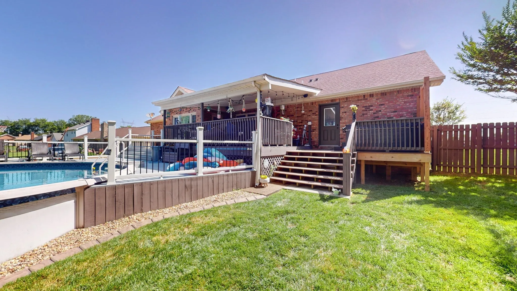Beautifully maintained and manicured half acre lot with its own oasis in the backyard, with a pool to enjoy in the hot TN summers, covered rear porch extended with it wrapping around the pool. Detached 12×12 permanent metal barn with concrete floor and electric and water at the corner. Rear-entry 2 car garage in the popular Cages Bend and Douglas Bend area just around the bend from Old Hickory Lake, in a highly sought after school district. Real hardwood floors in dining room, kitchen and living room. Brand new carpet in bonus room and bedrooms. All bathrooms are completely remodeled and updated. NEW central HVAC unit on home 2 years ago and still under warranty. Mini split HVAC added to the bonus room. Crawl space was just foam insulated and a new liner laid in Spring of 2024. NO HOA and no city sewer. Home is on a septic system that was just pumped in the Spring of 2024. Call today for your private tour