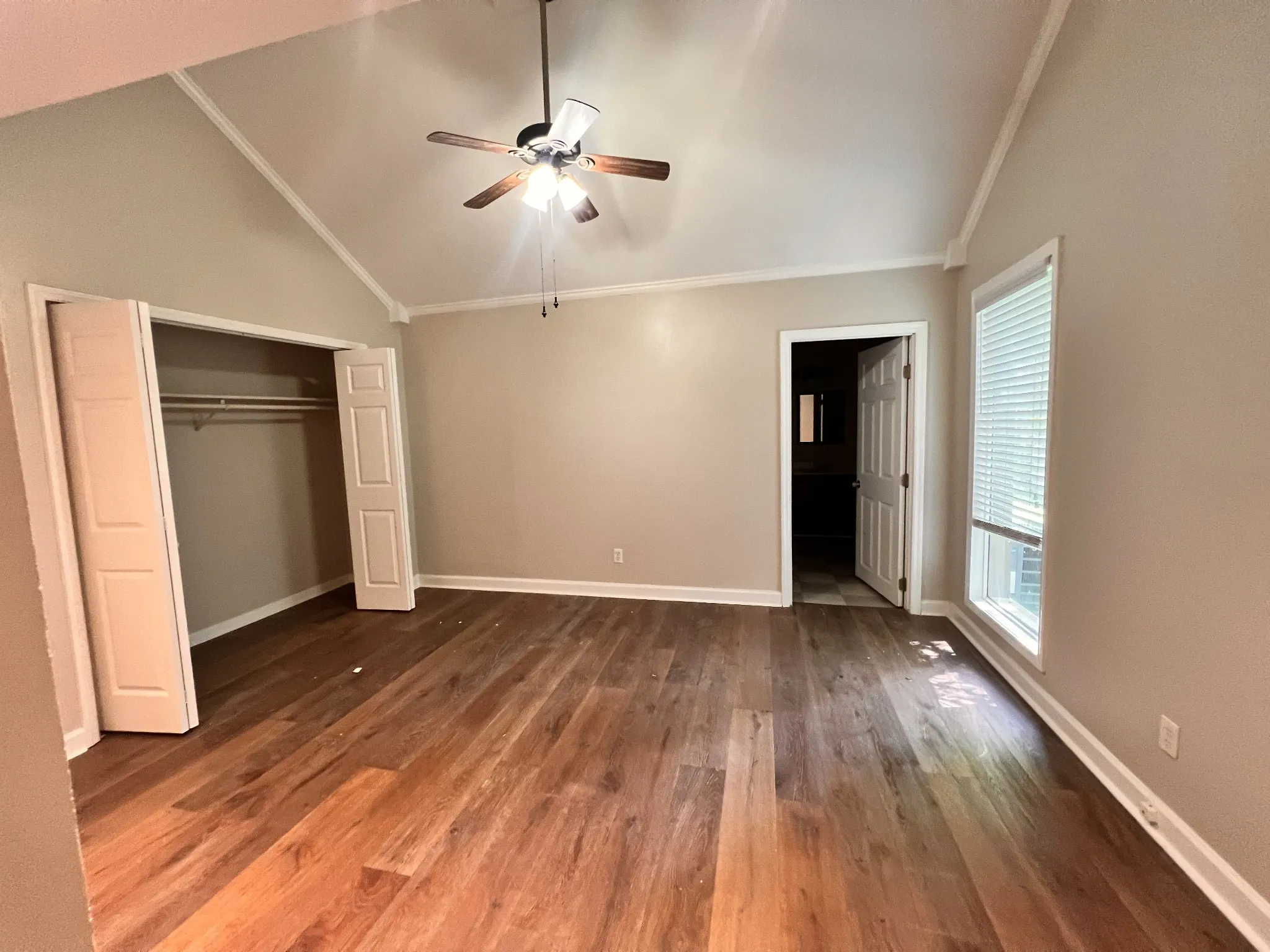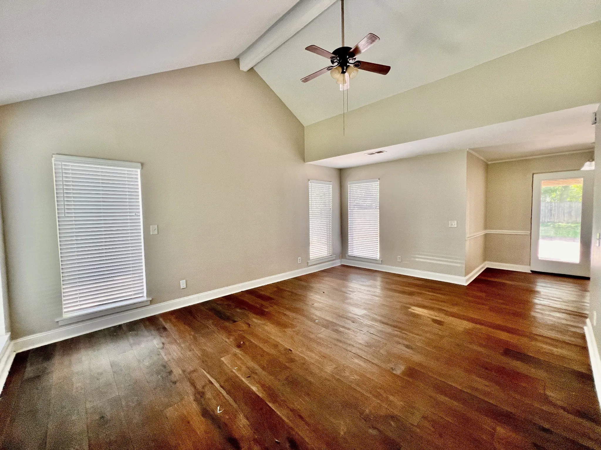 Cozy painted brick home on quiet street with large, fenced backyard and covered deck! Spacious living room and primary bedroom, both with vaulted ceilings! Hardwood floors! Galley kitchen! This is a great starter home or perfect if you’re looking to downsize!