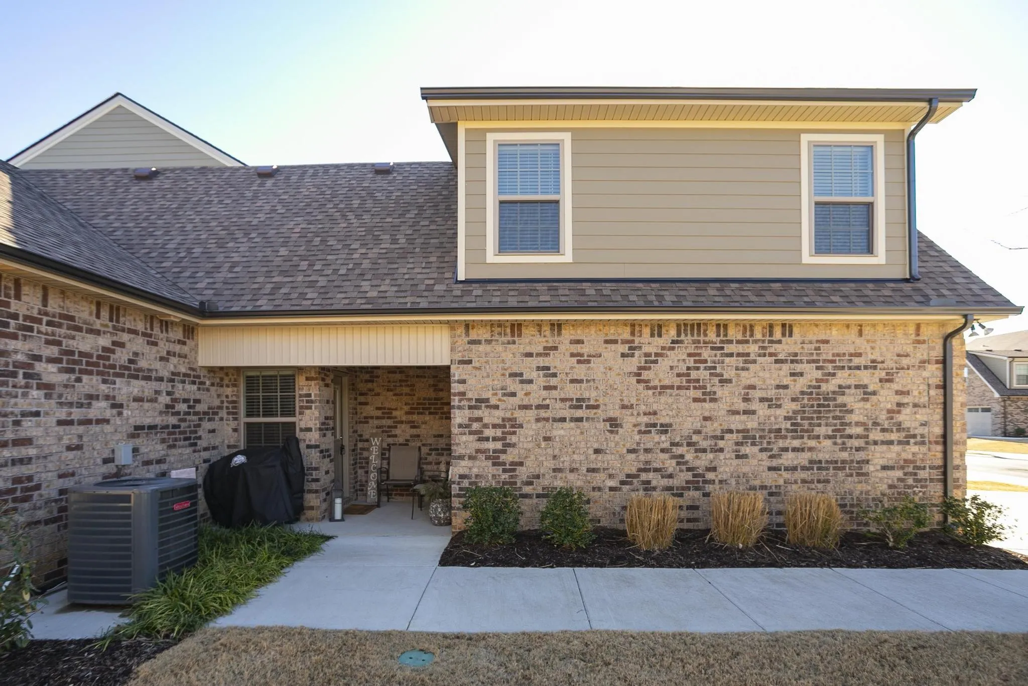 BETTER THAN NEW! Opportunity to own this all brick End Unit in the highly sought after Maples Retreat subdivision. Floorplan features 3 bedrooms, 2 baths (owner’s suite down) Rec. Rm over garage, open floor plan, kitchen w/custom cabinets, island, granite tops, tile in wet areas. 2 car garage at rear entry. Many extras have been added. Amenities include swimming pool, playground, basketball court, tennis courts and soccer field. Easy access for overflow parking. QUICK MOVE-IN!!