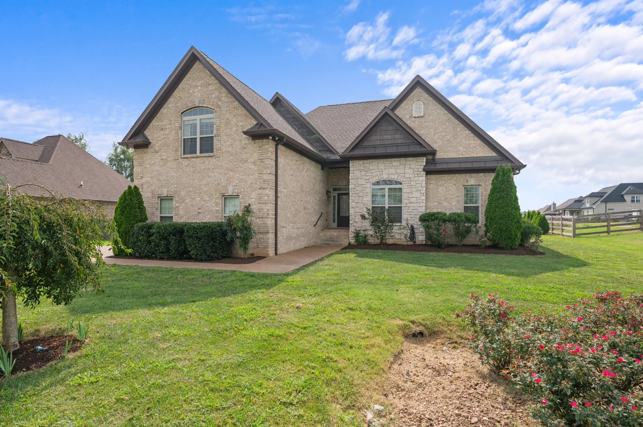 2018 Eastland Construction, beautifully artistic stone & brick home in Richardson Farms. This 6 year old Jackson floor plan sits on a huge lot and is perfect for a garden! 4 BEDROOMS total with 3 bedrooms on the main level (site perked for 3BR). Additions include exterior uplighting, Hardwood added to the primary BR and 2nd BR on the main level, and makes a dedicated OFFICE space if needed. 3 car garage w/ huge bonus room upstairs including an extra bedroom with on-suite full bath! Garage is currently used as a wood shop, completely insulated with its own mini-split HVAC unit, and 220V wiring. No HOA! Conveniently located to Providence shopping area, I-40, downtown Nashville/Airport, but treats you to peaceful country views and beautiful sunsets!