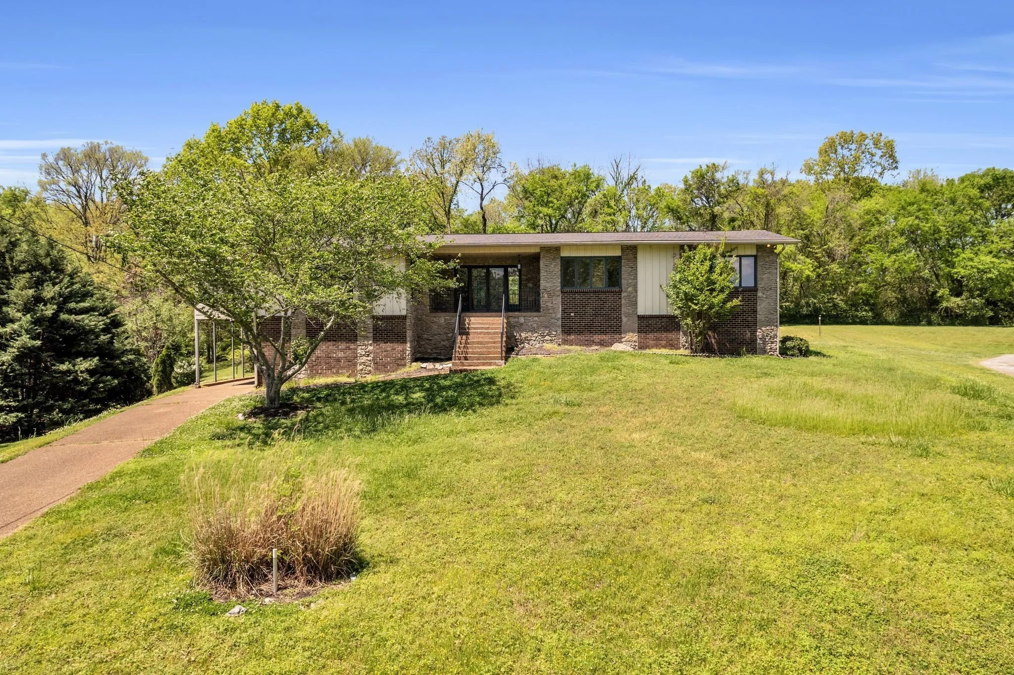 Farmhouse Retro-Chic Elegance Meets Modern Comfort Step into a world where vintage allure and modern amenities. This tranquil cul-de-sac brick and cider home is nestled in a lush wildlife reserve, offering idyllic paths for nature lovers. • Scenic serene Water Views accessed from a climate-controlled sunroom and a porch with a built-in grill. • Revel in the charm of farmhouse finishes, a cozy fireplace, and built-in features near the hearth. • A chef’s dream with stainless appliances, tile floors, and a wet bar. • Benefit from a new HVAC, natural gas furnace, grill, and tankless water heater. • Peace of mind with an on-site tornado/bomb shelter and updated electrical fixtures. • Proximity to Mount Juliet and Nashville’s vibrant suburbs, with rail access for easy commutes. • Downstairs’ versatile space for entertainment, an in-law suite, or rental income. • Assumable VA Loan: coveted 3% range. Seller open to owner financing options*Seller willing to owner finance Equity portion as well*
