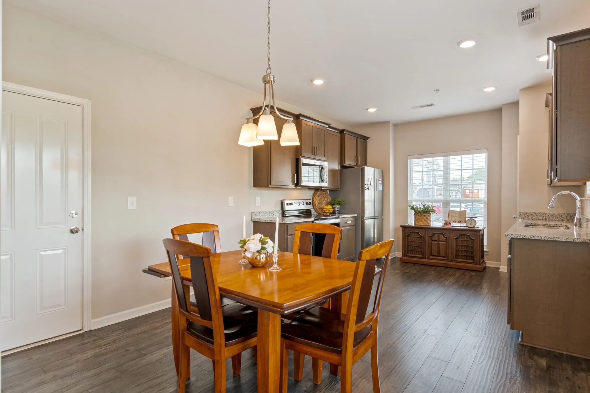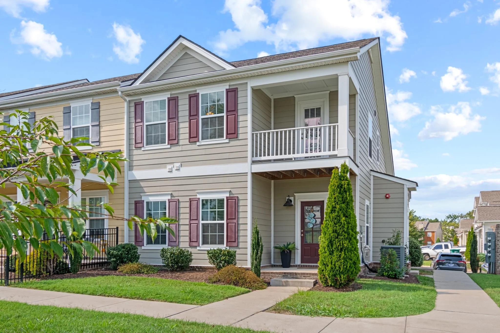 Price improvement on this wonderful townhome with the primary on 1st floor in Spring Hill. Welcome to this lovely end unit townhome in the sought after Spring Hill Town Center! The primary bedroom is on the main floor, while upstairs offers two bedrooms and a full bath. Washer and dryer connections on both floors. Relax on the east facing balcony with sunrise views. Enjoy a spacious eat in kitchen with plenty of cabinets and counter space. Benefit from low-maintenance living with the HOA handling landscaping and yard work inside and outside the fence. Washer and dryer connections are conveniently provided on both floors. Conveniently located to numerous restaurants, shopping, Saturn Parkway and I-65. You can also walk next door to the library. This townhome combines comfort and convenience. You don’t want to miss seeing this one!