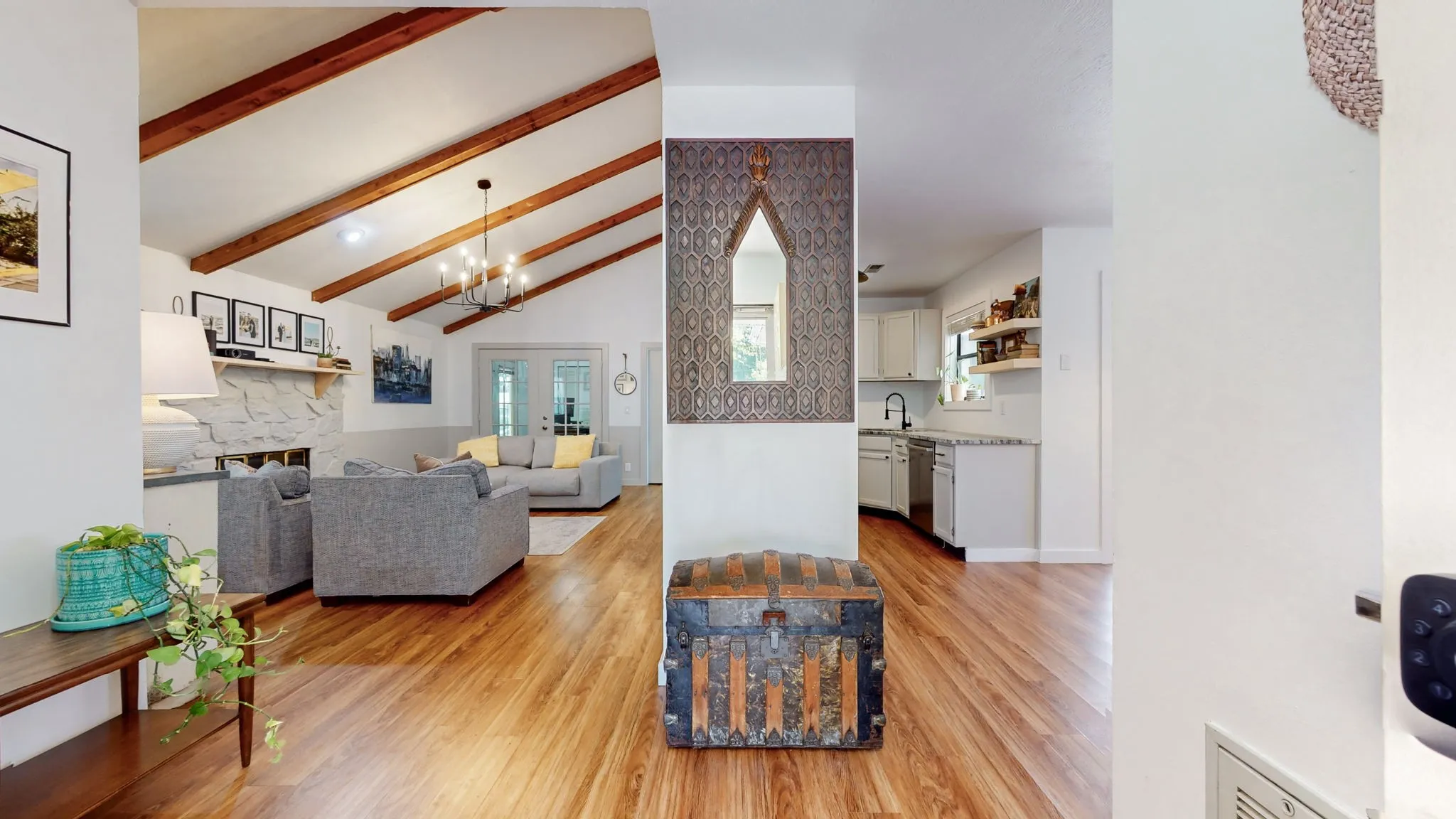 Charming, renovated 3 bed/2 bath home – just 20 minutes from Downtown Nashville! Impeccably maintained, this home filled with natural light, and the living room boasts a wood-burning fireplace, adorned with beautiful wood beams, setting the perfect ambiance for cozy evenings. The renovated kitchen features NEW stainless steel appliances (all less than one year old), and the dining area leads to a stunning outdoor patio inside the spacious yard with privacy fence – ready for all your entertaining, relaxing, and gardening dreams. Lovely, spacious, and renovated Primary Suite with Double Vanity. Plus, there’s a one-car garage and storage shed! Convenient location with all major services within 1 mile or less. Washer/Dryer, and Grill Do Not Remain.