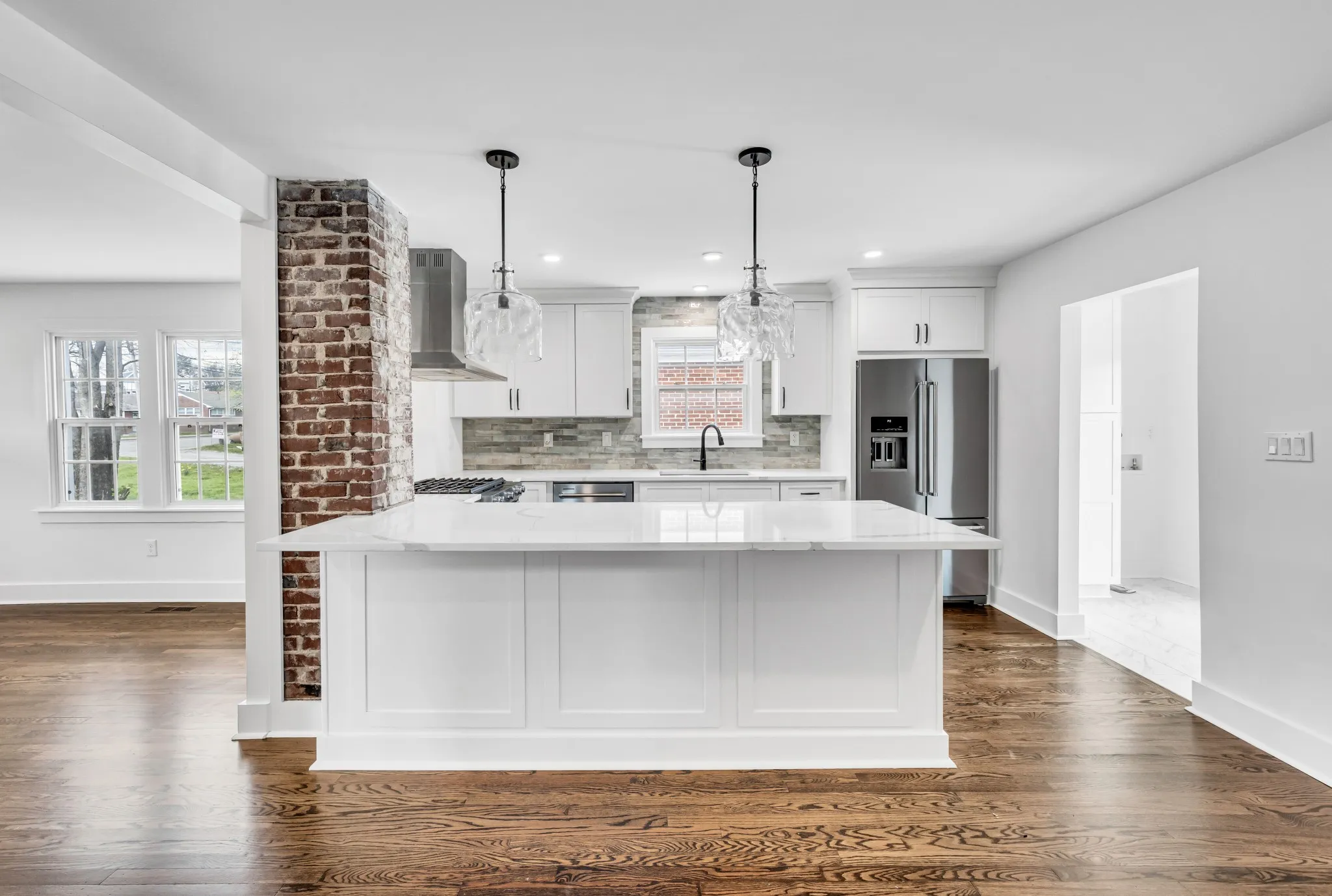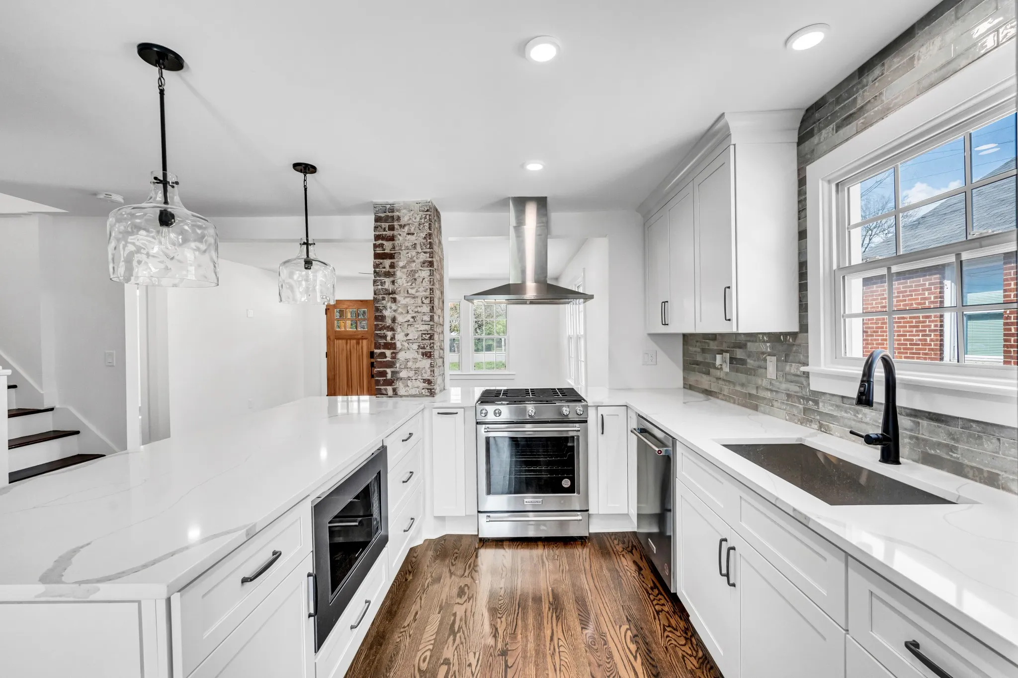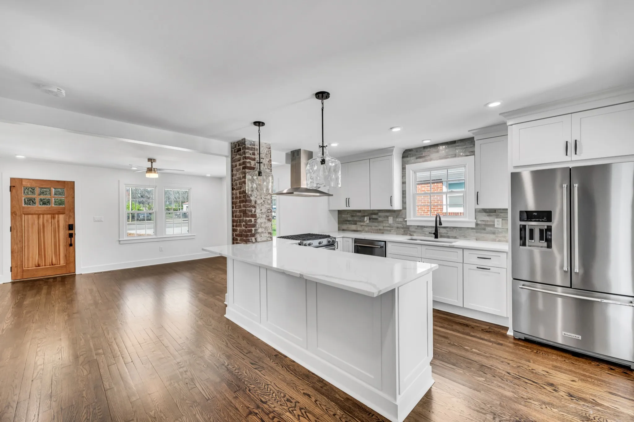 Come home to this charming cottage style home with a blend of elegance and comfort, making it a perfect place to call home. Home sits on a .33 acre lot! Open Floor Plan with Modern Sleek Finishes, Refinished Hardwood Flooring. Kitchen offers Tiled Backsplash, Quartz Countertops, Custom Cabinetry, Breakfast Bar, Brand New Stainless Steel Appliances, Pantry. This home is practically Brand New as it was gutted down to the studs with New Electrical, Plumbing, Tankless Water Heater, and Windows Throughout. Separate Laundry and Full 2nd Bathroom in rear. 2nd story expanded into an extra large bedroom with a sitting area.18×36 Detached Garage & Concrete Slab providing plenty of additional Parking Space.