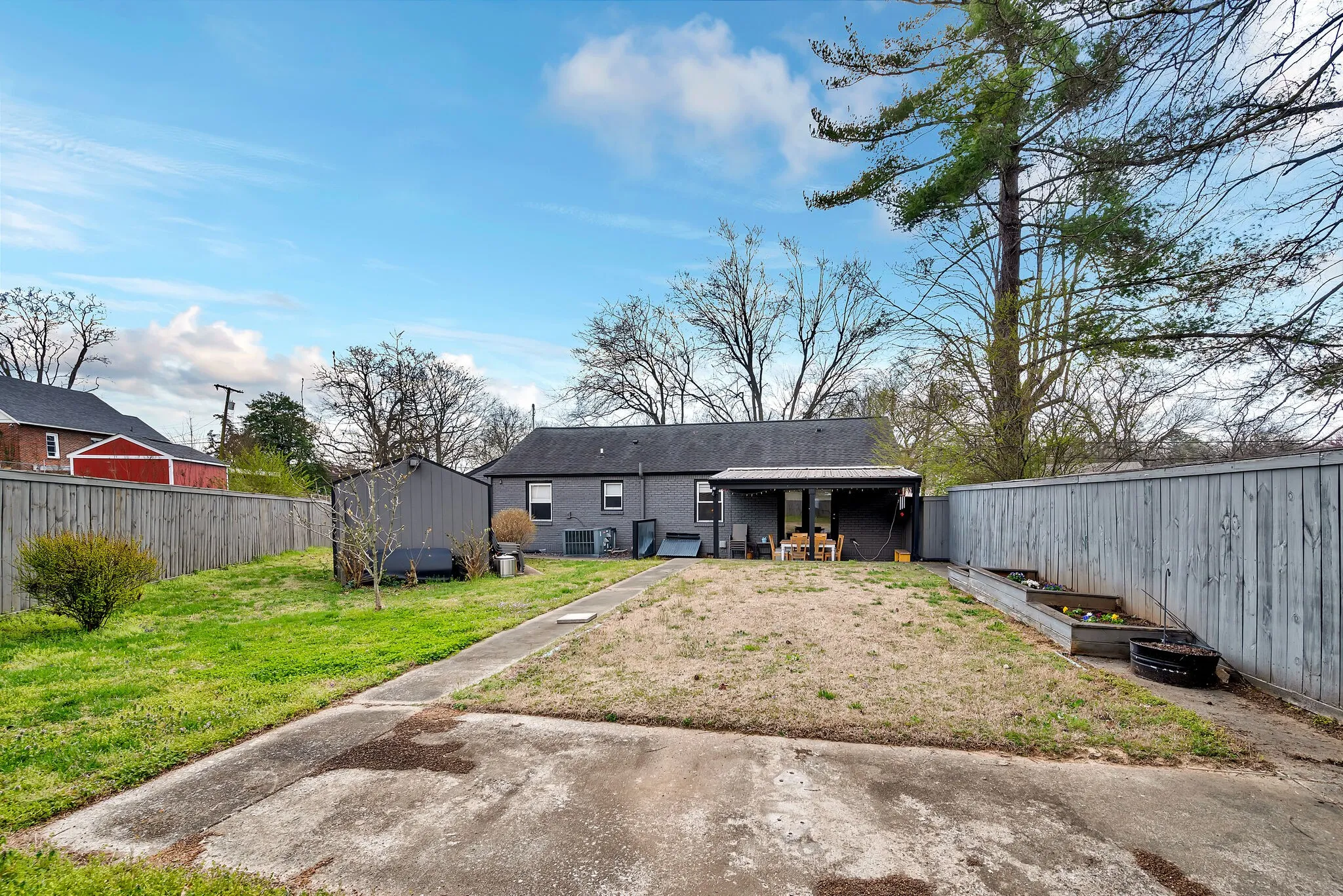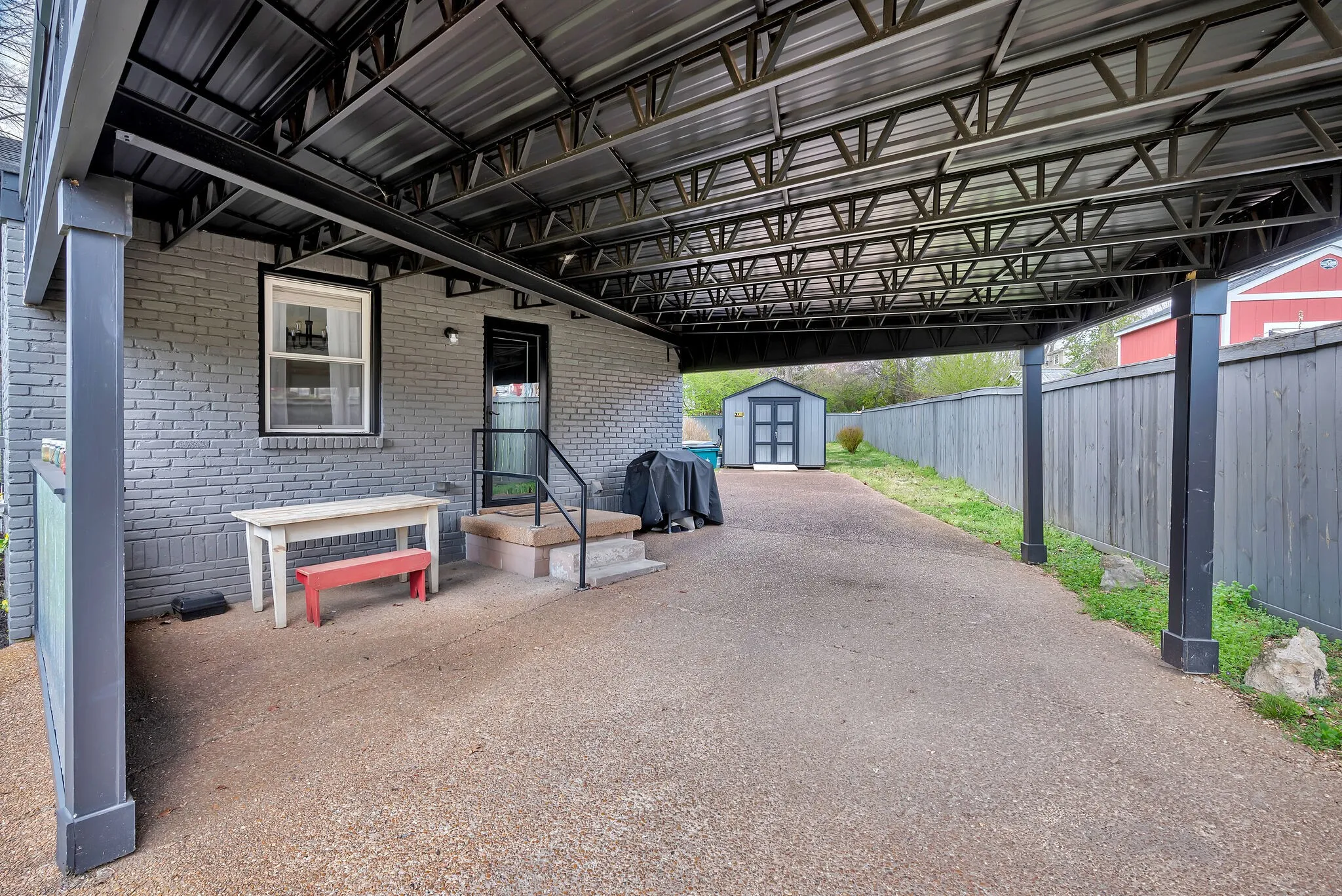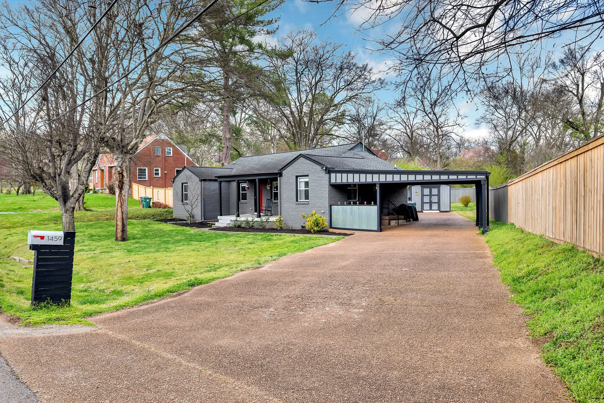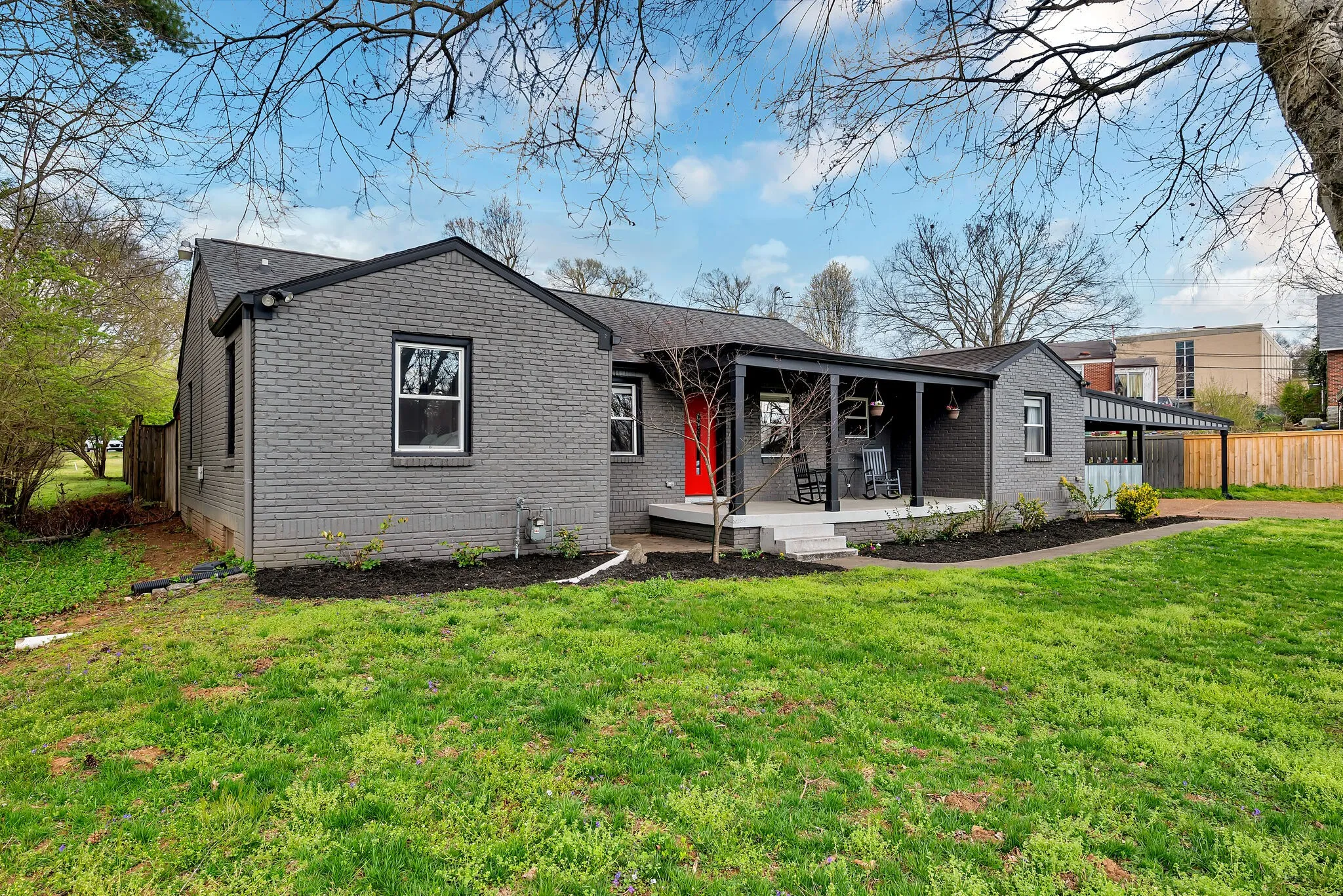 Beautiful East Nashville brick ranch with a contemporary feel. Located in a fabulous neighborhood and sitting on an over-sized lot. This property provides a lot of outdoor space, wide driveway with two-car carport, storage shed, privacy fence, painted brick exterior, patio off of primary suite and a rocking chair front porch. Inside you’ll find an open floor plan and updated features including a farm house kitchen sink, gas stove and subway tile in bathrooms. Previous owners had green friendly insulation installed and encapsulated the crawlspace, which is a huge bonus. The additional space in the basement (partially finished) has a lot of potential for a workspace, studio, storage, etc.