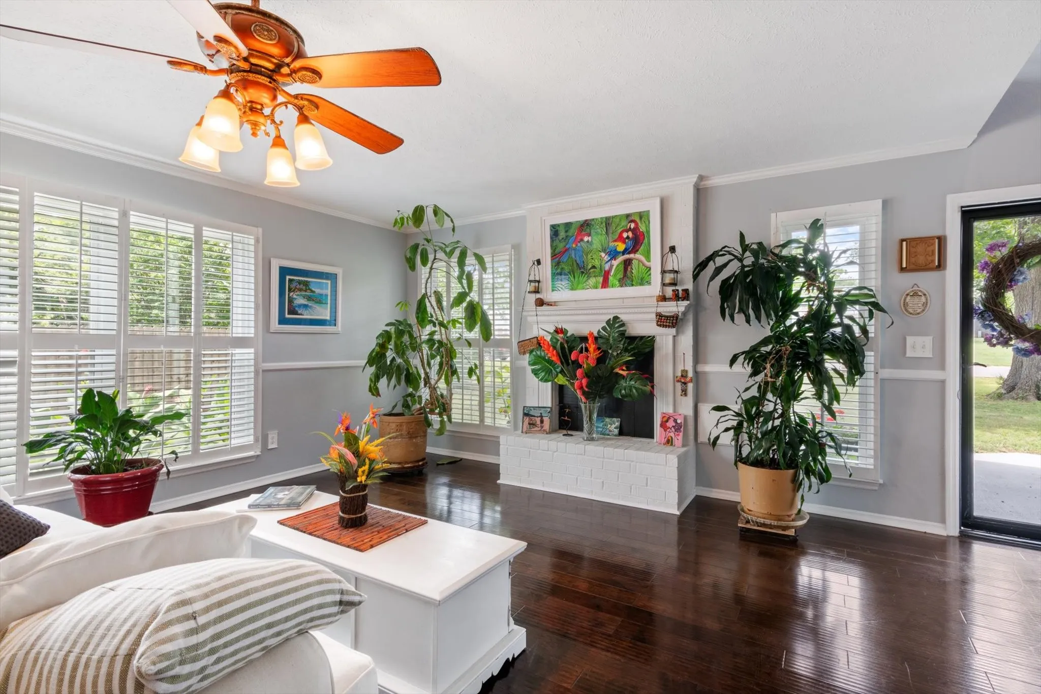 Home is in pristine condition. No HOA. Wood floors throughout. Plantation shutters. Great covered back porch. Above ground pool with large deck. New pool liner and filter. New microwave. Fresh paint. Large storage shed(12×36) Fenced backyard. Roof 2020. Refrigerator does not stay. This home will be a pleasure to view. Owner agent. Bathrooms updated . Large primary bedroom with walk-in closet.