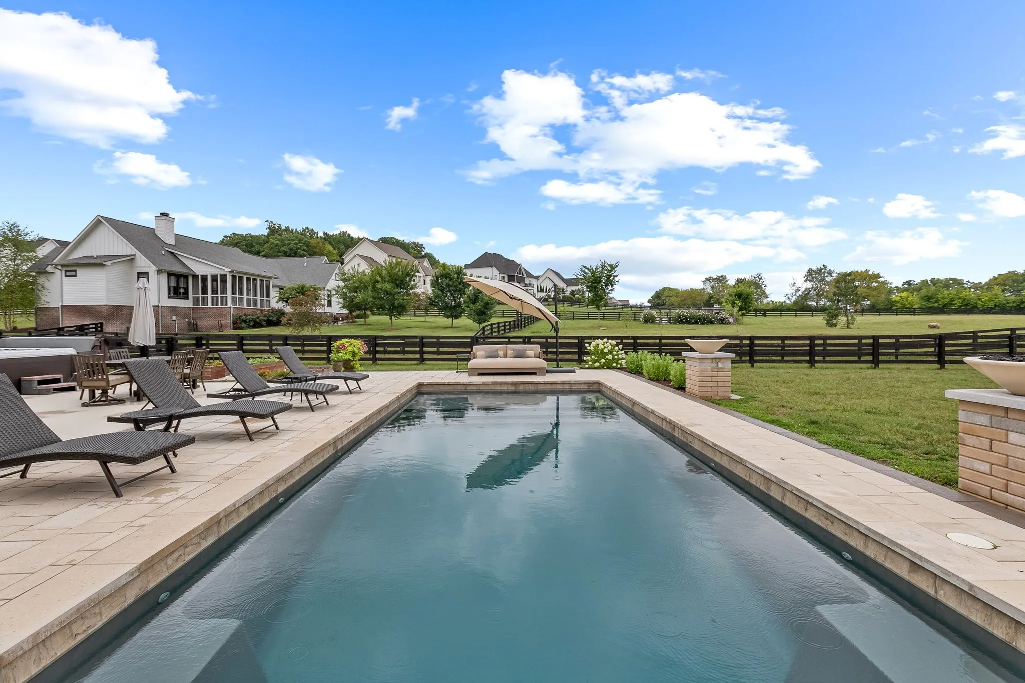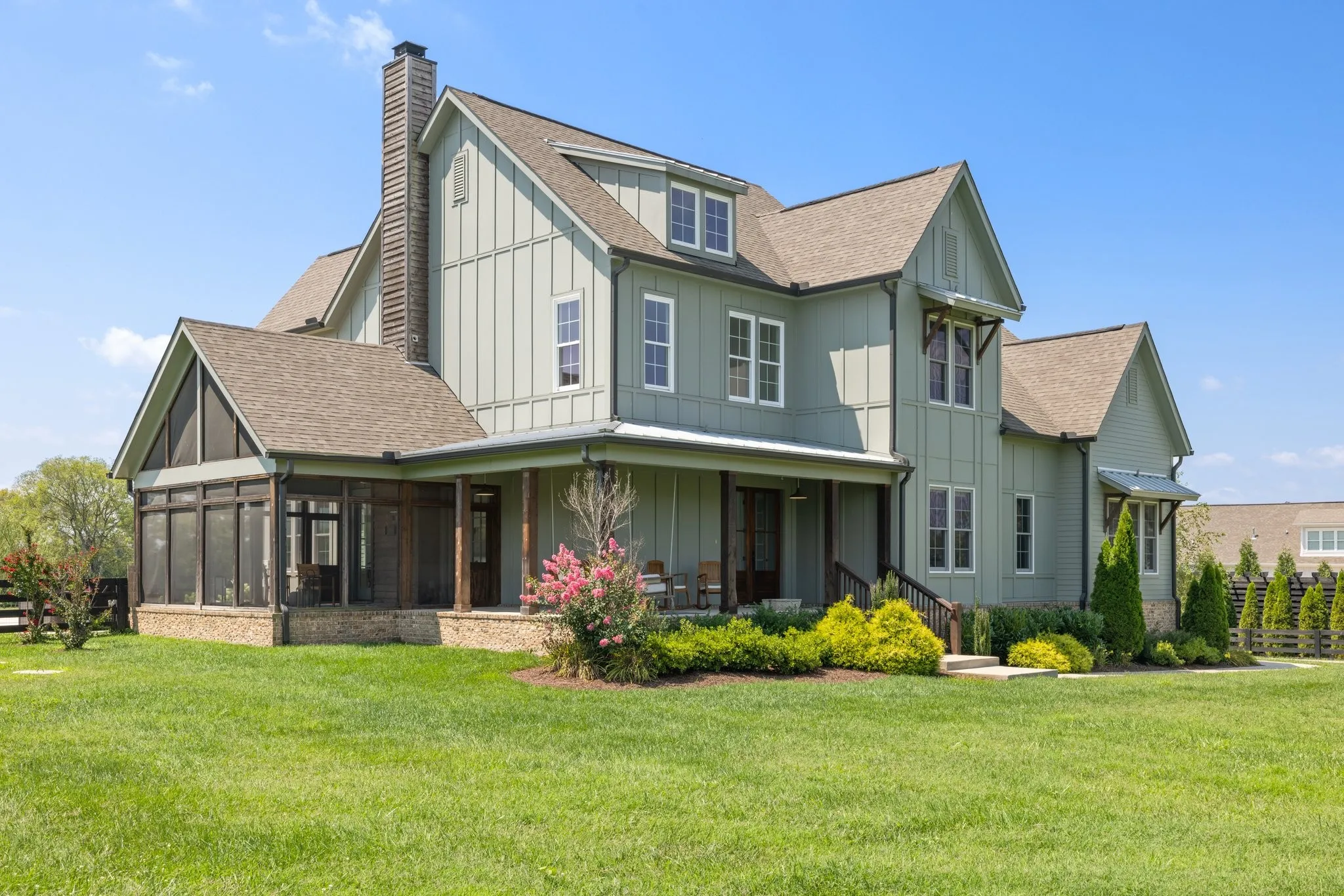 Beautiful modern farmhouse set on 1.1 acres With a fully fenced in yard. Open floor plan with lots of natural light, gourmet kitchen and large island, master bedroom downstairs with custom walk-in closet and gorgeous master bath. Downstairs bedroom could be used as flex room/office. Second master bedroom upstairs with full bath and huge bonus room with tons of possibilities. 3 Car garage. This home is a dream, with a wraparound porch, screened in patio, large paved patio in the backyard with a new hot tub and new pool that is perfect for entertaining or spending time with family watching the amazing sunsets.