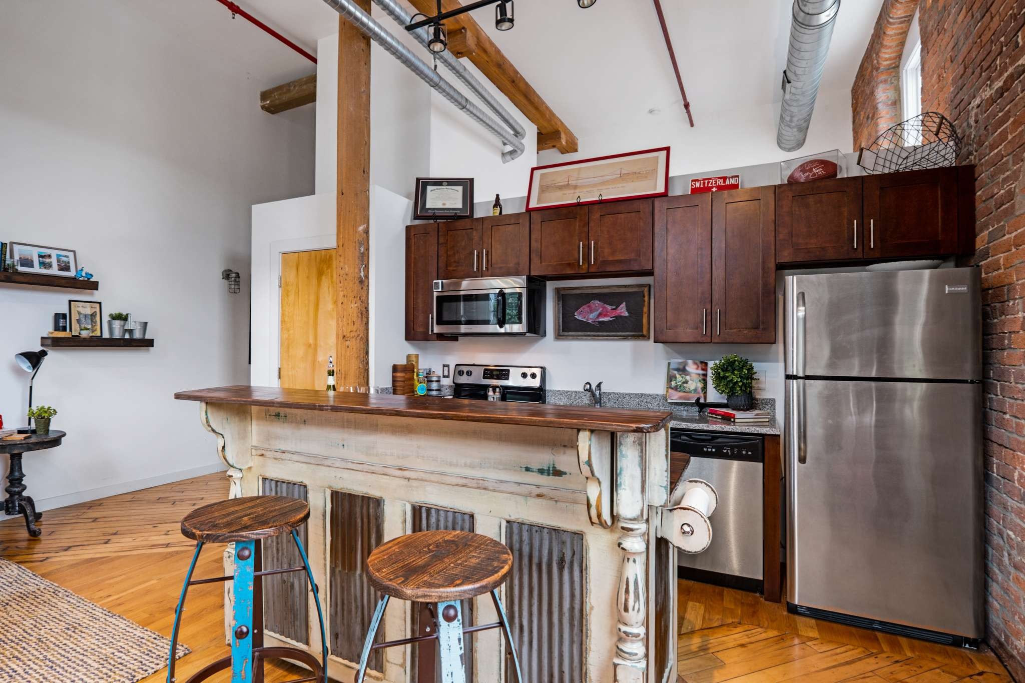 HIstoric Werthan Mills in coveted Germantown offers another upscale condo in end unit 369. 14′ ceilings, 1800’s exposed brick walls, large windows providing beautiful light, original mill hardwood flooring throughout. Kitchen opens to living area with an outside balcony. Amenities include: gated entry, 2 saltwater pools, dog run, large fitness/yoga room, bocce ball,canopied grilling area. Walk to popular restaurants, coffee shops,retail,Sounds, Farmers mkt with quick highway/interstate access!!