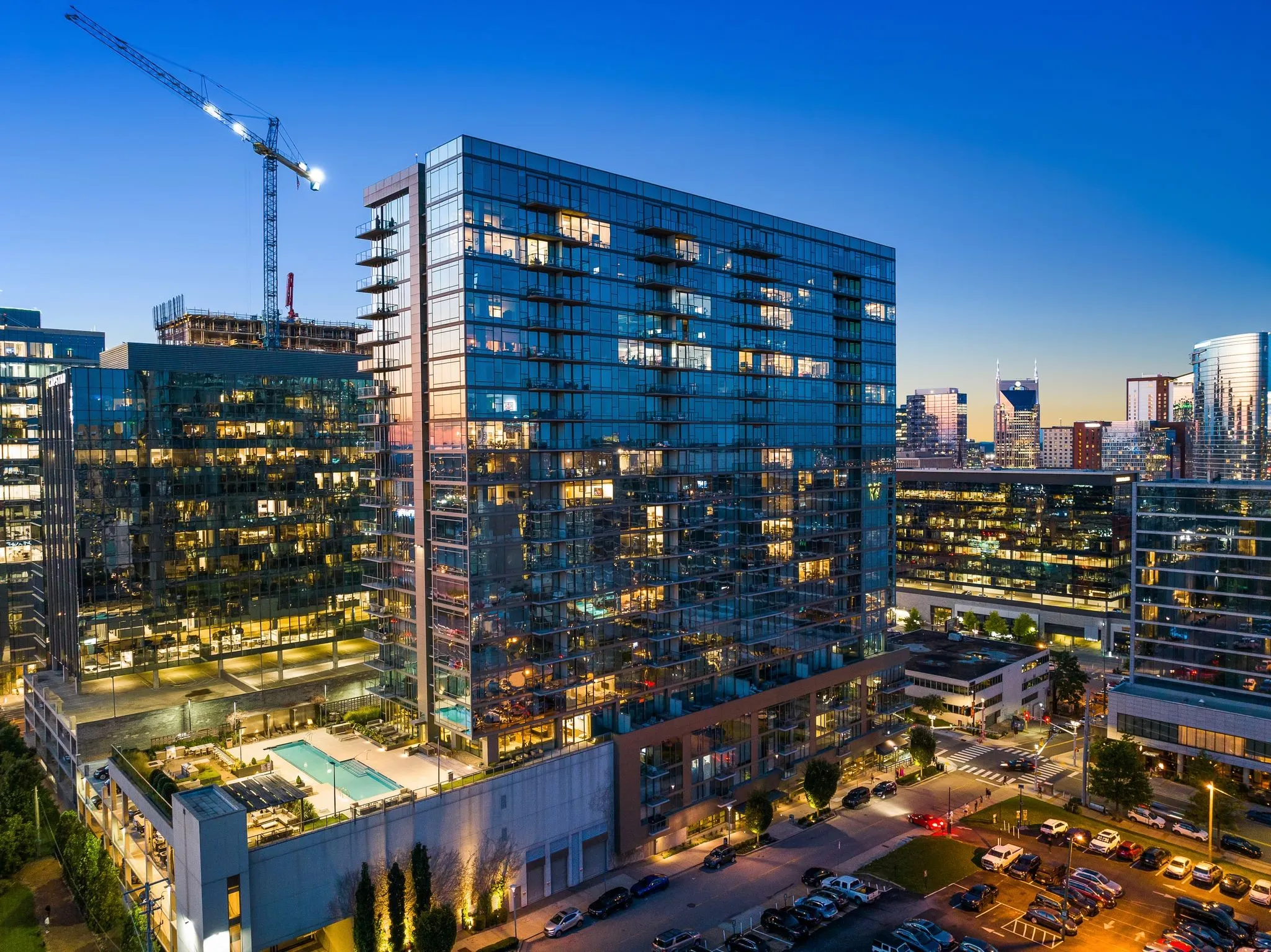 Nashville’s most prestigious location–the Gulch! Walk to Bridgestone Arena, Lululemon, Whole Foods, and so much more all while enjoying luxurious high-rise living. This beautifully renovated one-bedroom condo offers Gulch & 12 South Views, floor to ceiling glass, an enclosed bedroom for blissful sleep, upgraded hardwood flooring, soaking tub + shower, California Closet system, Surround Sound, built-in desk, retractable window shades and one assigned parking space. The TwelveTwelve building has over 25,000 square feet of amenities including 24-hour concierge, gated parking, salt-water pool and hot tub, trainer-driven fitness center, two lounges, rooftop terrace w/downtown views, 2 outdoor barbeque areas, fire pits, a covered dog park, bike storage, 2 guests suites for overnight stays and so much more!