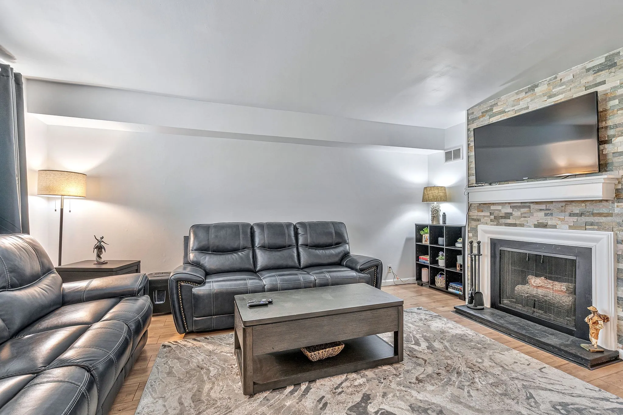 DO NOT CALL SELLERS! FRANCIS WILL BE RELISTING IN 2025! Immaculate two story townhouse that is move in condition. Condo has been freshly painted. New carpet, light fixtures inside and out. Nice living room with beautiful tiled fireplace and hardwood floors. Two large size bedrooms. Kitchen has tile floor with ss appliances. Refrigerator is Maytag and w/d are Maytag. Light filled breakfast room that leads out to patio. Patio has been resurfaced with large tile. The patio is a wonderful place to relax. Storage. Two spaces for parking and close to pool. Come home to this beautiful condo. Extra parking across the street. TV does not remain.