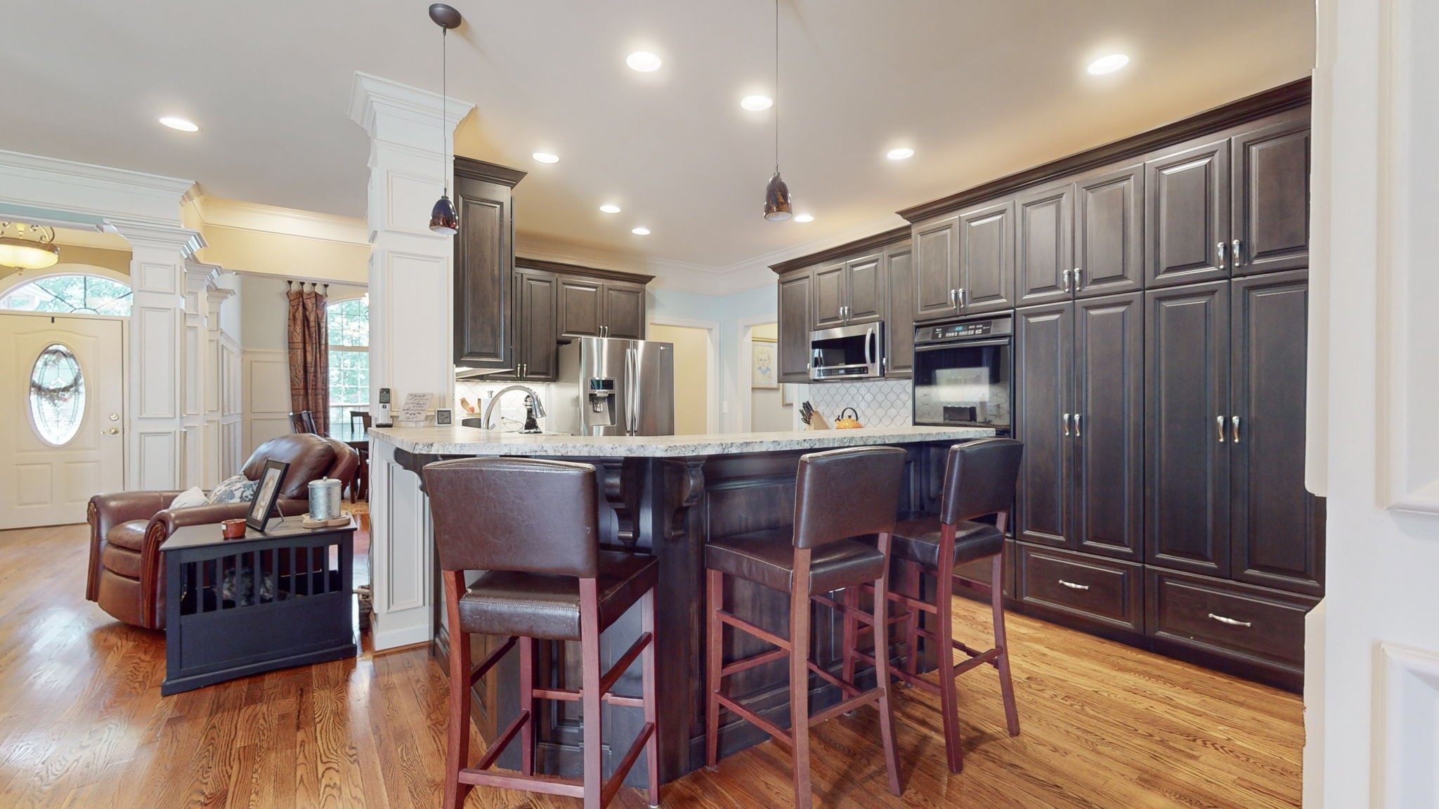 This stunning property has everything you’re looking for and more. The remodeled kitchen, a chef’s delight, complete with custom cabinet pantry & pull-out drawers for max storage and convenience. A less than 1 year old roof provides peace of mind & protection for years to come. The 1201 square foot built-out third floor, custom built in 2016, offers a private retreat for family & friends. Included in this area is a workout room & office. Relax and unwind in the fully screened-in porch, where you can enjoy the fresh air while staying protected from pesky bugs. The 2-car garage, along with the additional 1.5 car garage is perfect for storing your vehicles, golf cart, & mower. Convenient storage & a storm shelter are located off of the garage, providing peace of mind during severe weather.