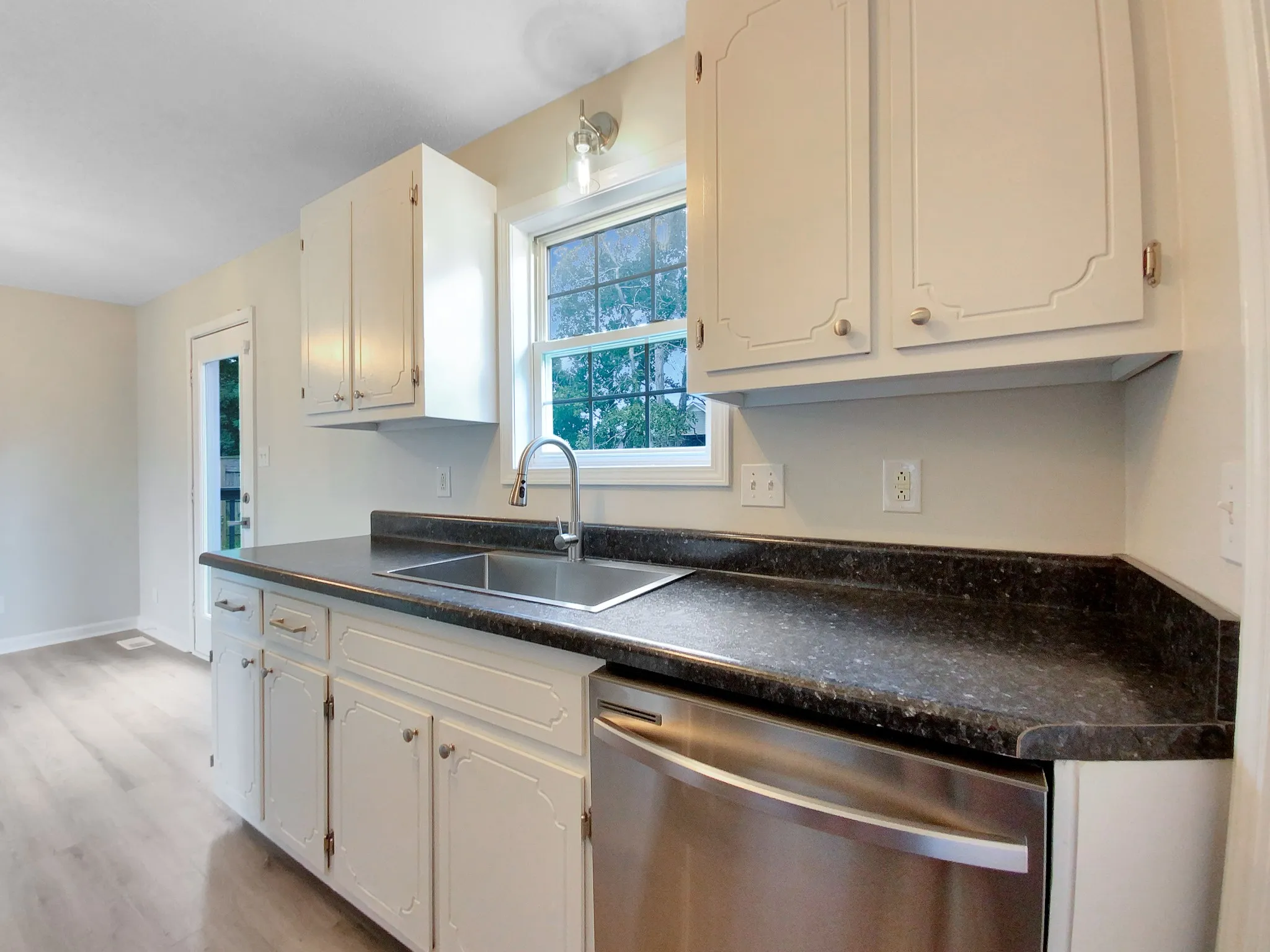 This freshly renovated home has it all! With a natural color palette and fresh interior paint, the home is warm and inviting. New flooring throughout and new appliances offer a modern, updated feel. The primary bathroom has good under sink storage and the flexible living space offers other rooms for whatever you need. Outside, the backyard is fully fenced in and has a sitting area for outdoor enjoyment. This home is sure to please and won’t last long! Reach out today to learn more about this amazing find. This home has been virtually staged to illustrate its potential.