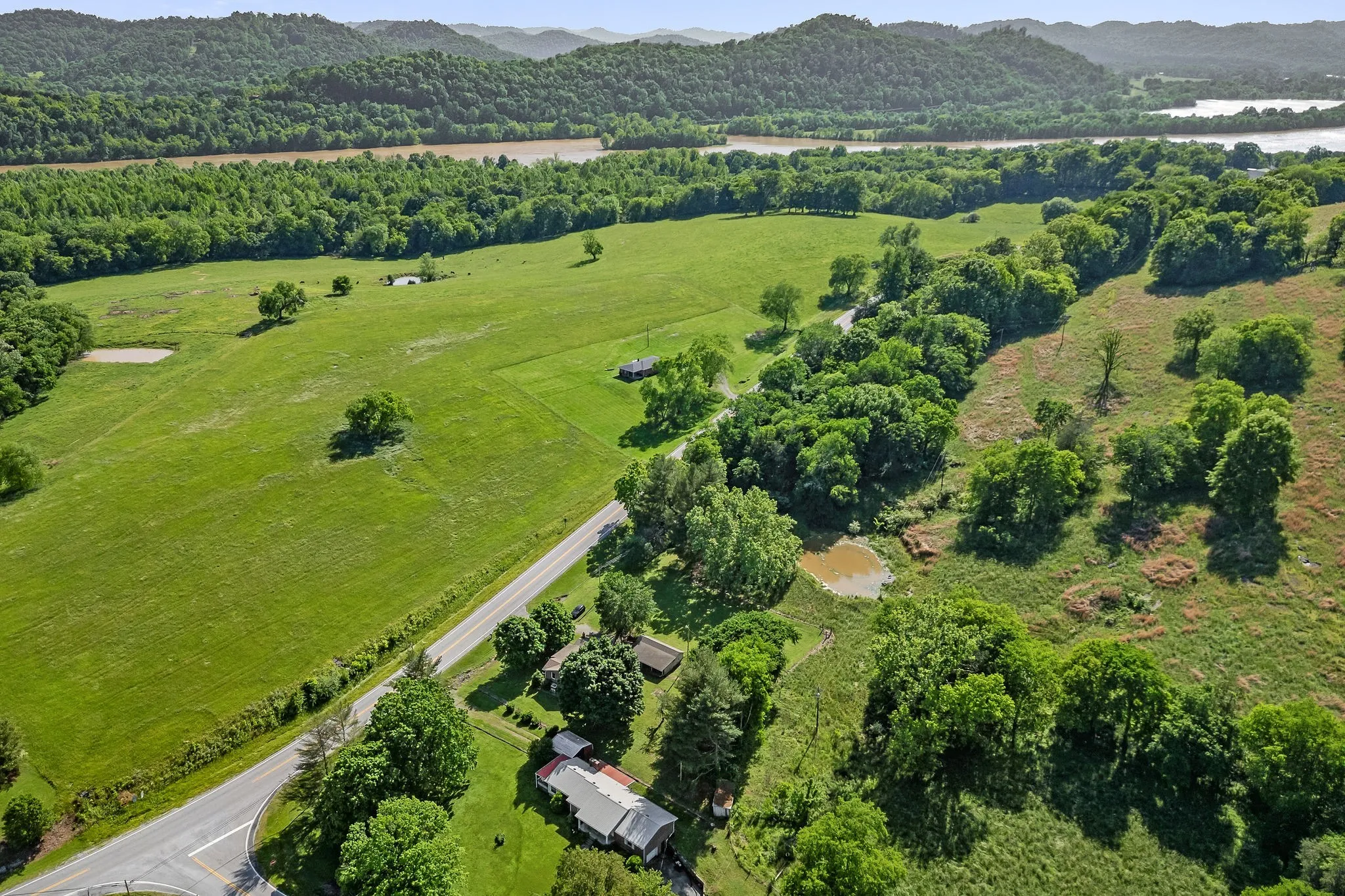 54.79 unrestricted acres situated just across from the water. This farm is perfect for the avid outdoorsman. Ideal for hunting, fishing, and farming. Its fenced and has a large barn. From up top of the farm you can enjoy gorgeous views of the Tennessee hills and the Cumberland River! Multiple home sites.