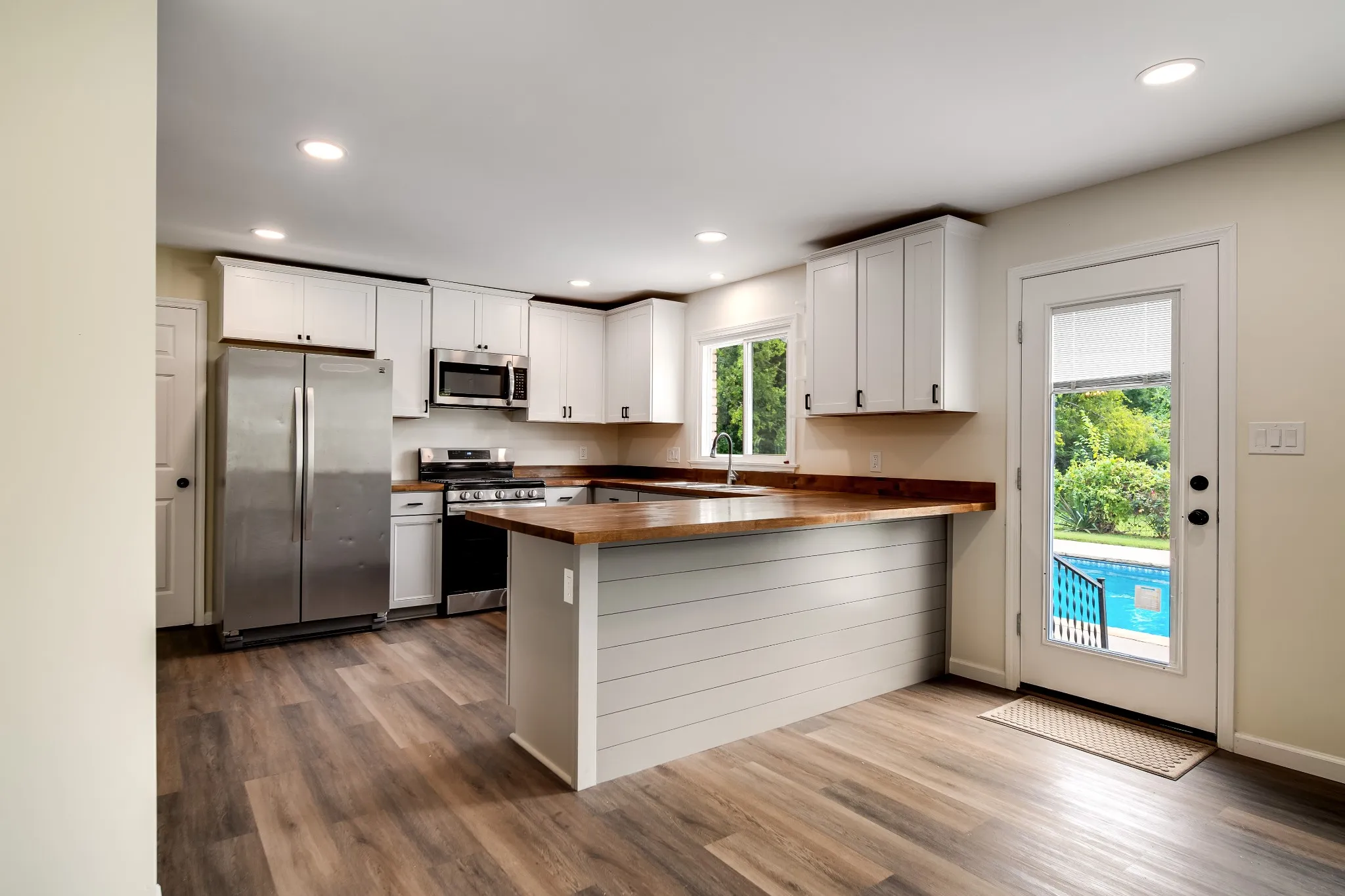 Fully renovated ranch style home with large lot and in ground pool! Enjoy an updated kitchen that is fully equipped with stainless steel appliances, gas burning stove, brand new cabinetry, and stunning butcher block counters. The main part of the home offers 3 spacious bedrooms, luxury vinyl plank throughout, beautiful recessed lighting, and all new bathroom counters and cabinetry. Bonus in-law suite with full bath and kitchen. Annual Pool Maintenance included in monthly rent! This hidden gem wont last long. Contact our office today for more information. No pets. *Clausen Group Realtors does not accept section 8 vouchers*