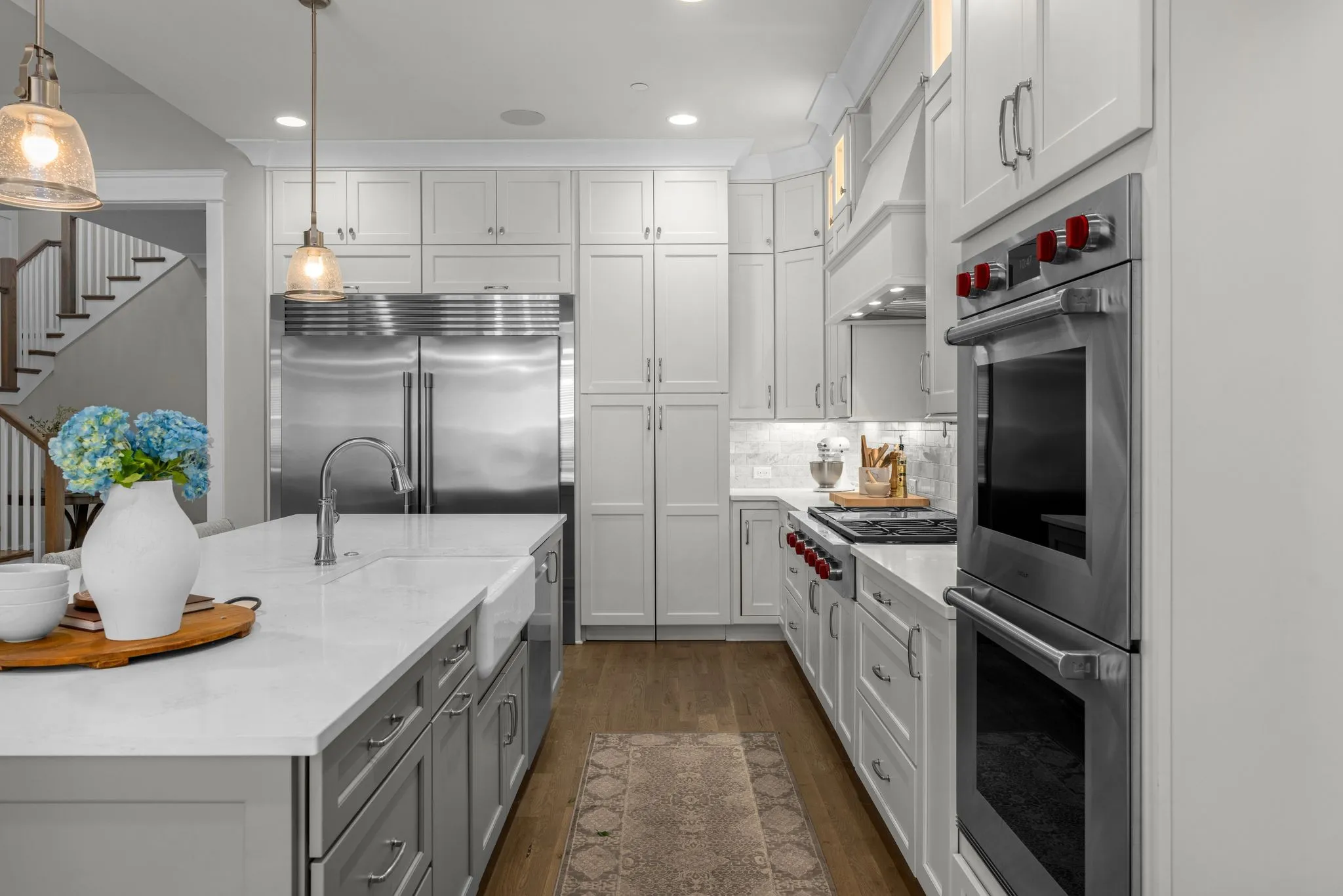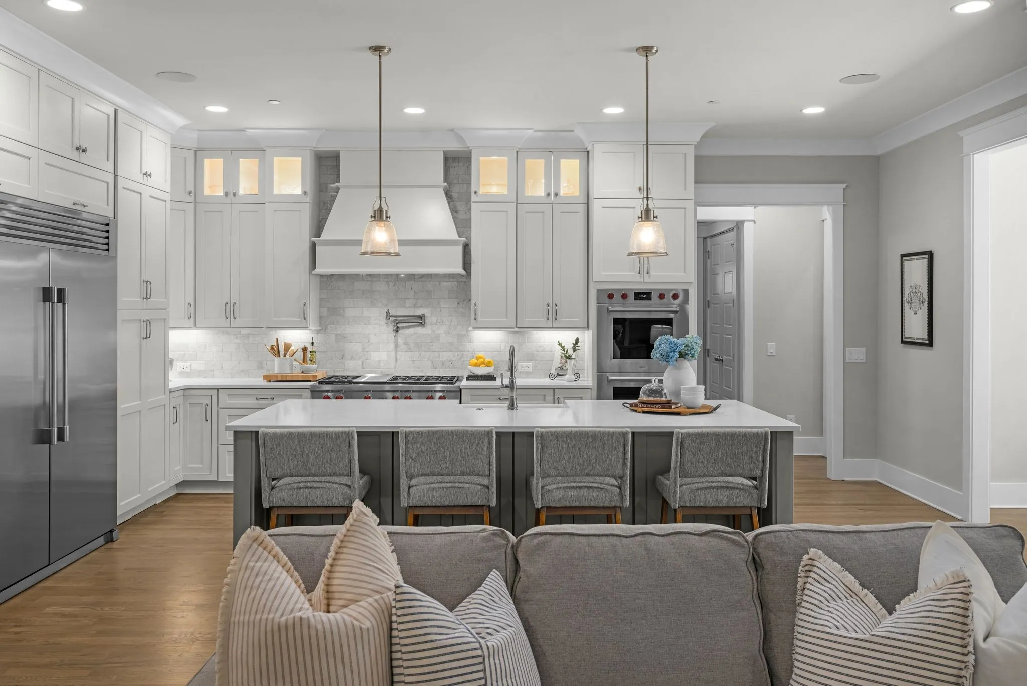 Custom built home on a cul-de-sac walking distance to downtown Franklin and 5 minutes to Interstate 65. This thought out floor plan is situated on the largest lot in the neighborhood and has two en-suite bedrooms, an office, laundry room and powder bath on the main floor. There is also a screened in porch that leads out to a well manicured and private fenced in backyard. The upstairs has two en-suite bedrooms, a powder room, a bonus room, and an unfinished attic area that could easily be converted into a workout room or fifth bedroom. The kitchen has Wolf appliances with a walk in pantry and scullery kitchen.