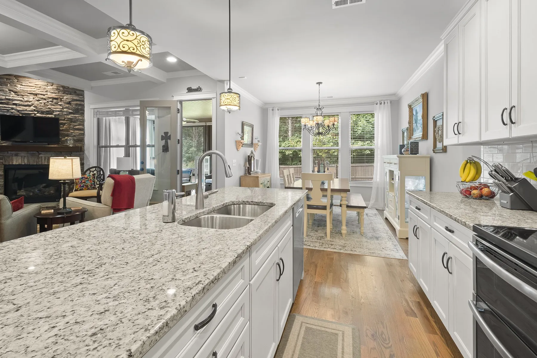 This stunning Frank Batson home in sought-after Lakeside Meadows is a must-see. Featuring a large primary suite with extra large walk-in closet; all 3 bedrooms including primary on the main level; four-season room; wet bar in the bonus space; sun tunnels in the living room for extra light; coffered ceilings; private, fenced backyard with large common area nextdoor; lawn irrigation system; lined, conditioned crawl space; and a huge floored area ready to finish for extra living space. Newly replaced carpet up. Tankless water heater replaced in 2024. Less than 2 miles to Seven Points boat ramp, 3 to Vivrett Creek boat ramp. Minutes to all conveniences in both Mt Juliet and Hermitage. A short ride into Nashville. Low monthly HOA.
