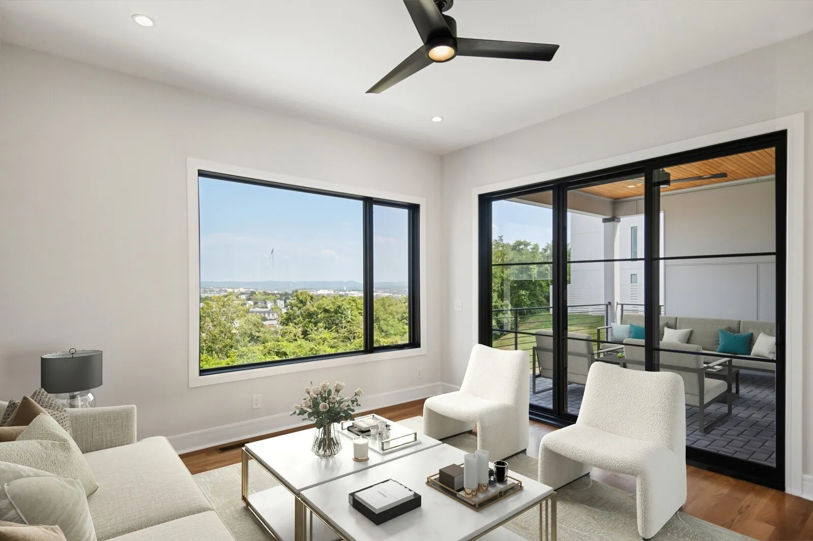 Located at one of the highest points in Nashville, this home presents views of the Cumberland River to the shimmering skyline. This contemporary gem is less than 6 miles from downtown. The open floor plan & large picture windows maximize the incredible views. Elevator to all floors. The gourmet kitchen is a dream, & features Carrara quartz countertops. The primary suite provides a tranquil oasis & the primary bath boasts soaking tub basked in natural light, walk-in shower, & dual vanity. 2 additional guest rooms on the second floor, & one on the lower level. The rooftop bonus is the perfect place to entertain, featuring a wet bar, wine fridge, & elevator access to all floors. The rooftop terrace showcases magical views. Endless space for both intimate and elaborate gatherings with unmatched views of the iconic music city skyline. A smart irrigation system. Experience the pinnacle of Nashville’s luxury living. Garage is pre-wired for car charger.