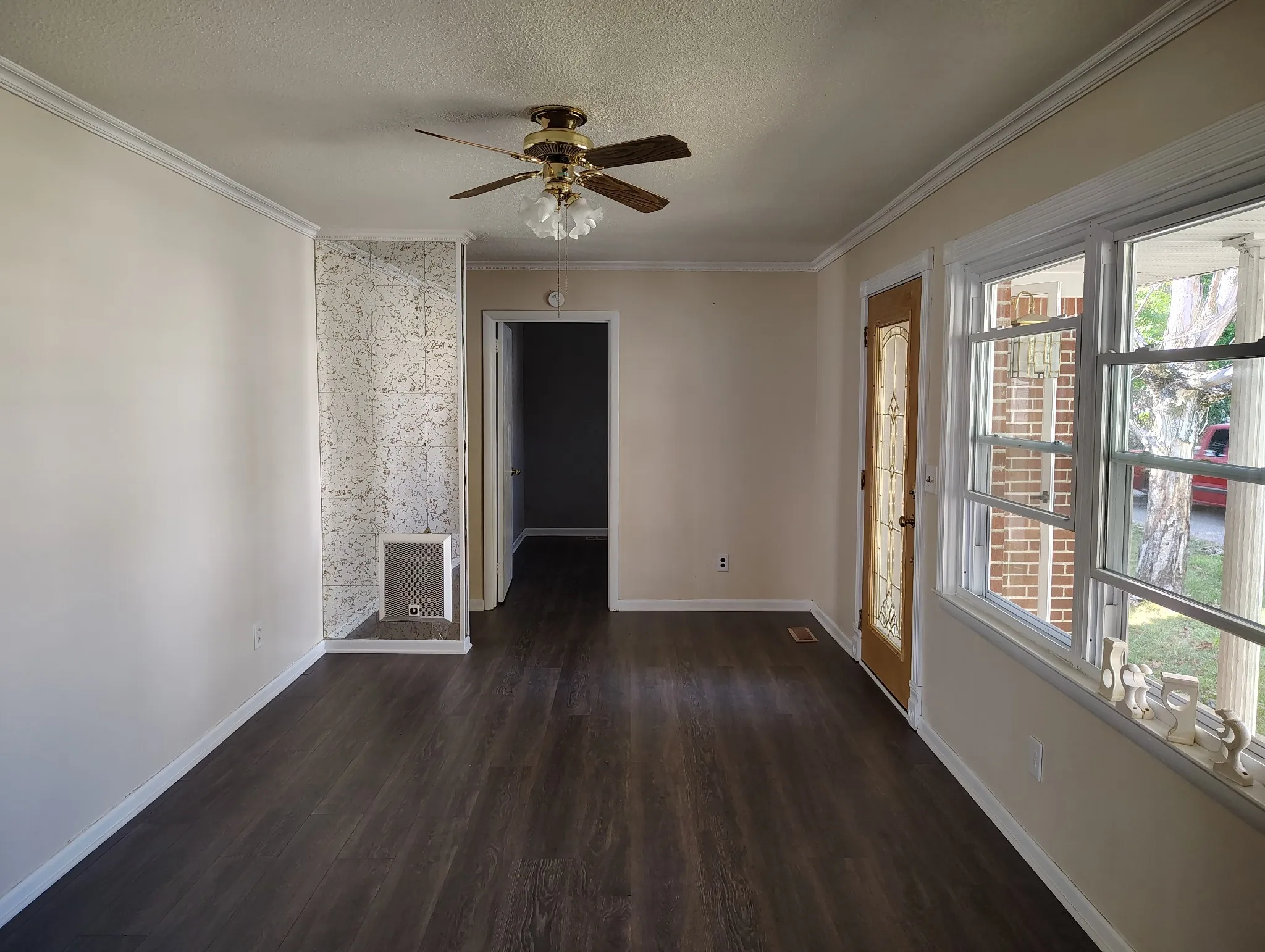 COZY BRICK HOME IN TOWN! 2 BEDRROM , 1 BATH WITH A BIG SUN ROOM. HOME WILL HAVE A BREAKER BOX, NEW LAMINET FLOORING, HEAT AND AIR TO SUNROOM, ALL NEW PAINT, NEW VENTS, CLEAN AND CHECK GUTTERS,NEW PLASTIC UNDER HOME, DEAD TREES WILL BE CUT DOWN. THE HOME WILL BE CLEANED AND READY TO MOVE IN. IN. THERE IS A 1 CAR DEATACHED GARAGE AND PAVED DRIVE WAY IN FRONT AND BEHIND HOME, NICE PATIO ON THE BACK WITH MATURE TREES
