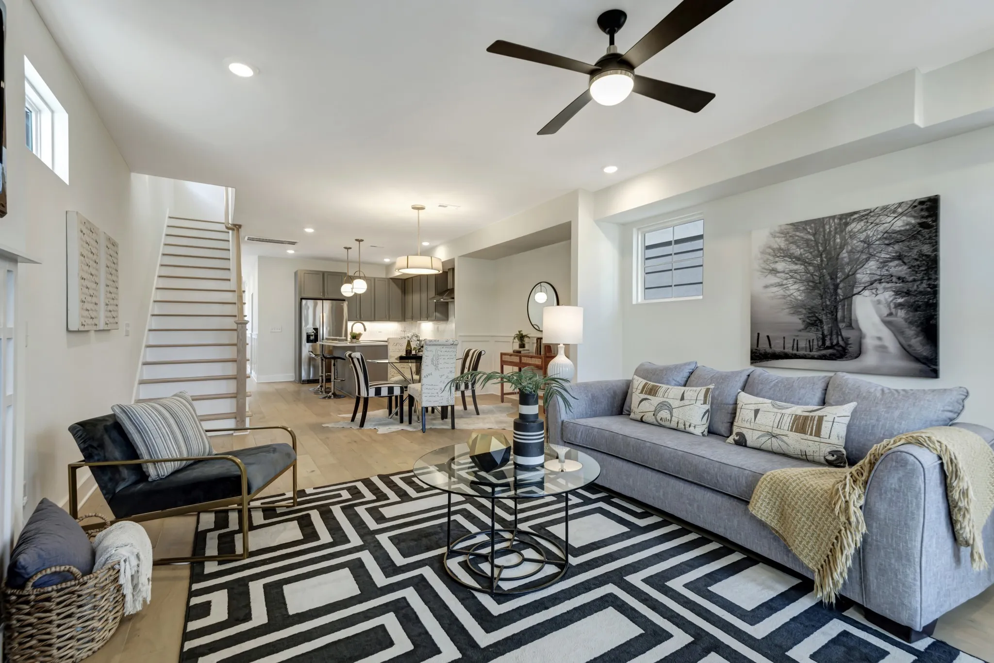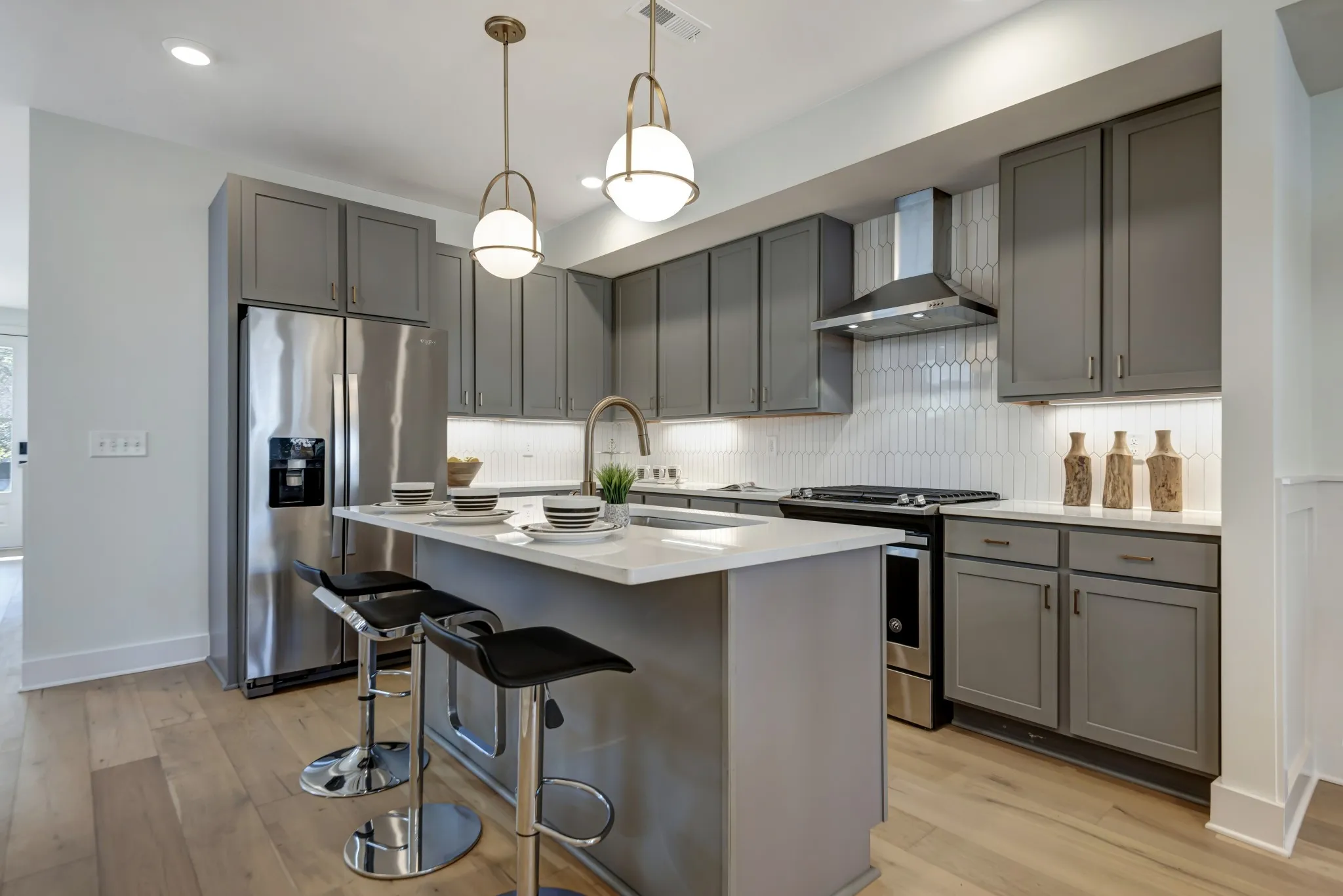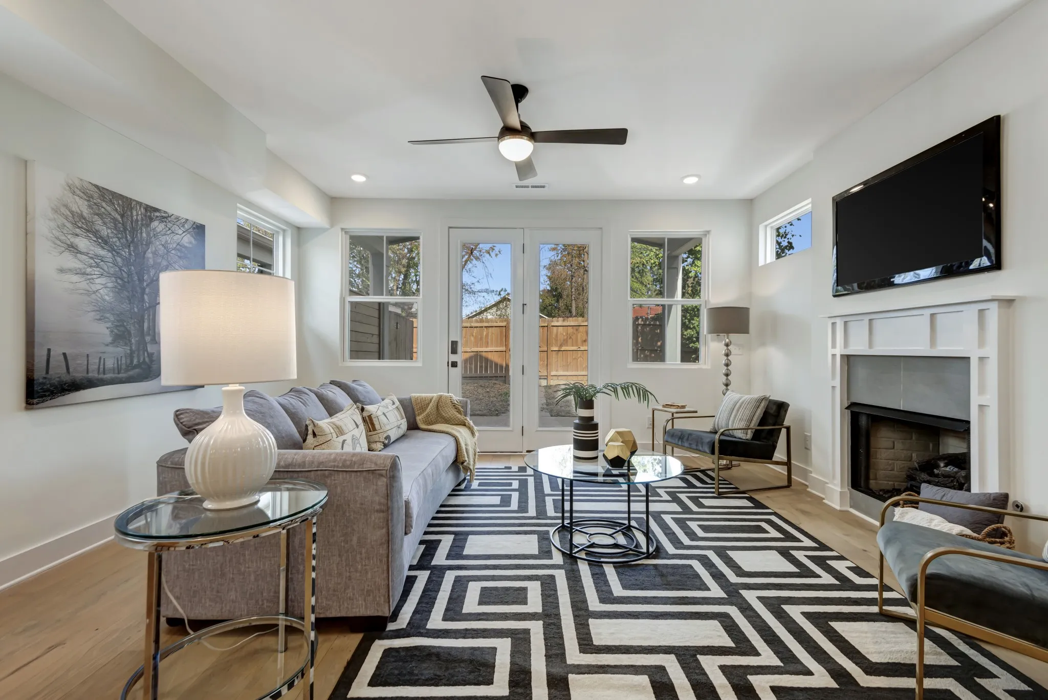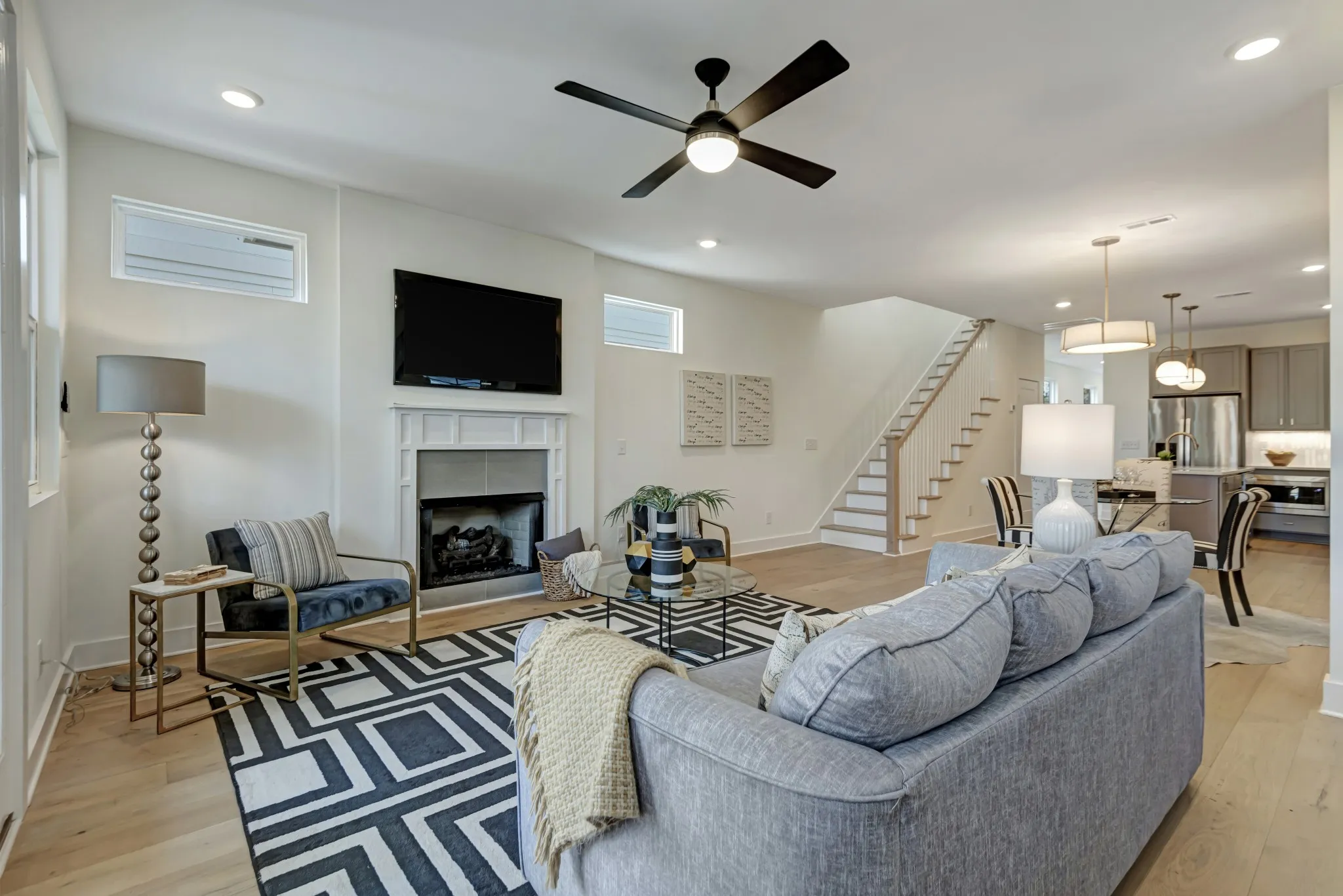Like-new home in the charming Woodbine neighborhood featuring 3 bedrooms and 3 baths with hardwood floors throughout. The kitchen is equipped with quartz countertops and stainless steel appliances, open to the dining and living room including a gas fireplace. The primary bedroom features lofted ceilings, double vanity, and a large walk in closet. High end finishes and fixtures give this home an elevated feel. Covered front and back patios with a two-car parking pad in the rear. Located minutes from Geodis Park and Wedgewood Houston, this home is a must-see!