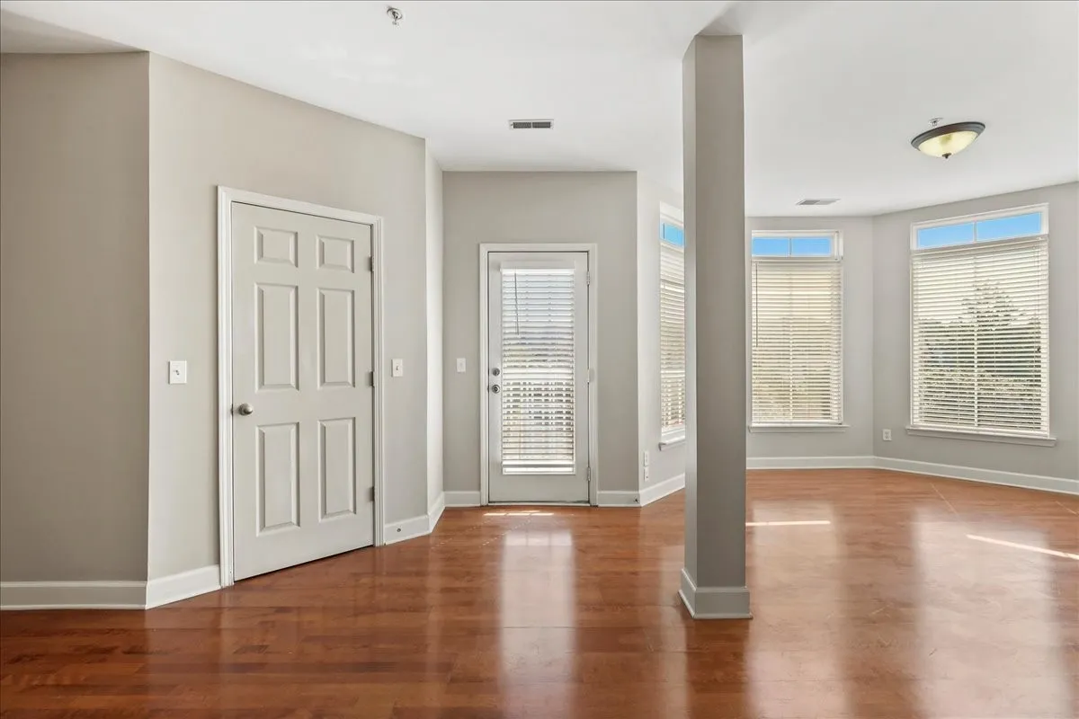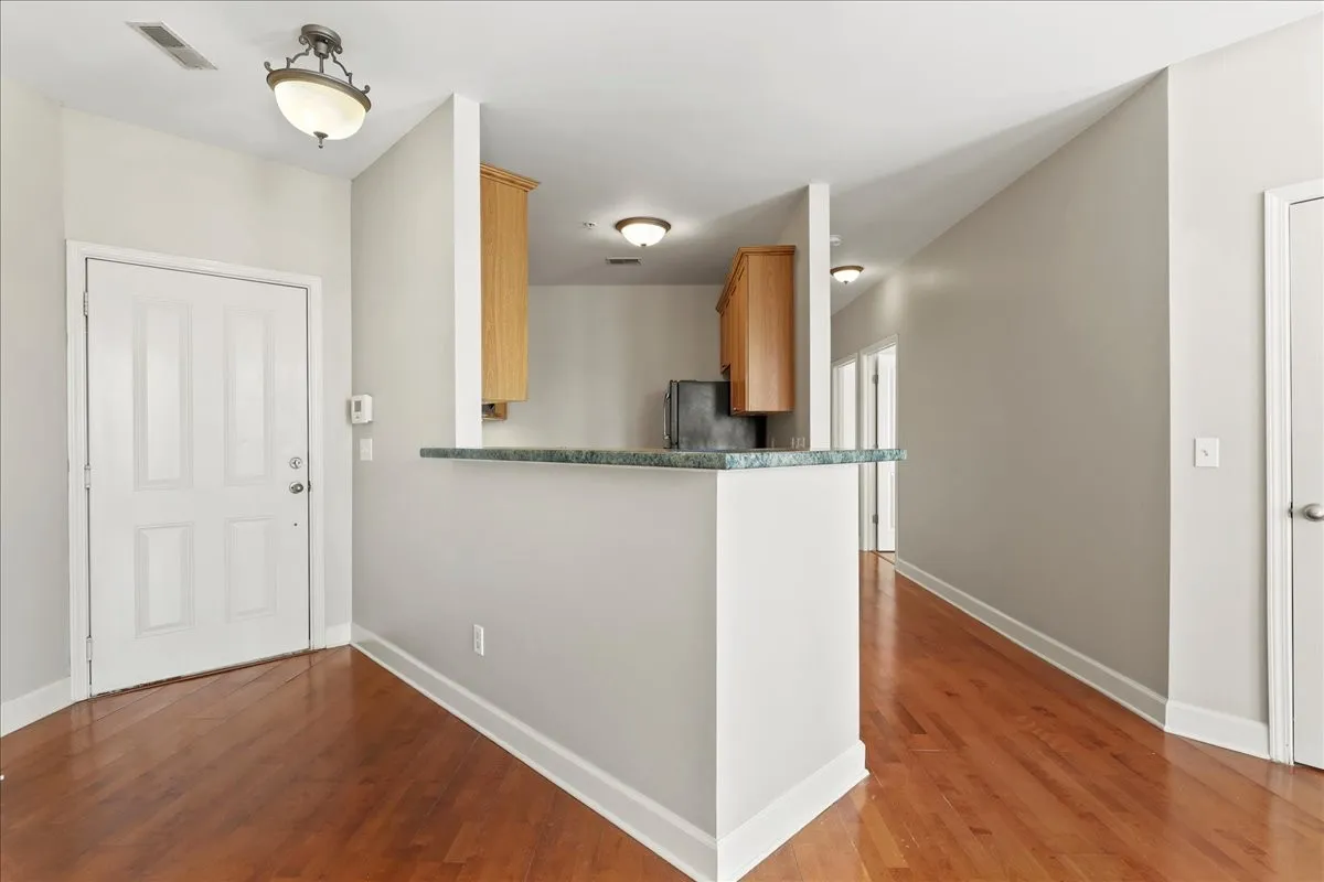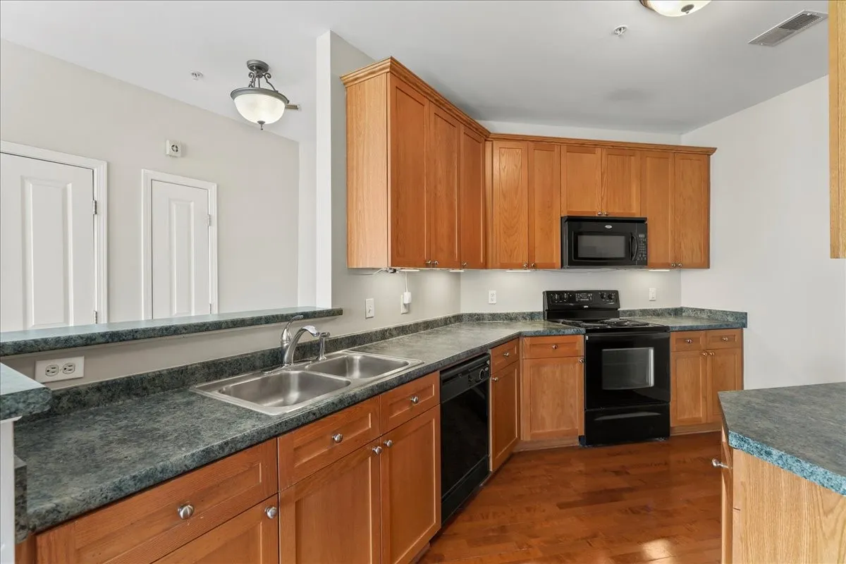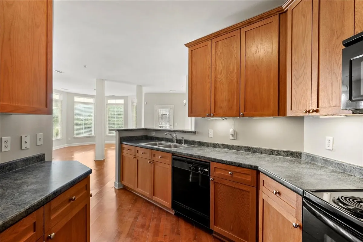 Beautifully updated ground-level condo in Lenox Village! Open floor plan with fresh paint throughout, laminate flooring throughout the main living areas and spacious bedrooms. Clean galley kitchen with newer refrigerator! Plantation blinds on both sets of doors leading to your two balconies off of living room as well as all windows. Bedrooms are a larger in size and primary bedroom has en suite bath and walk in closet. Brand new stackable washer/dryer combo! Walkable neighborhood with a pavilion, playground and a plethora of shopping/dining just steps away!