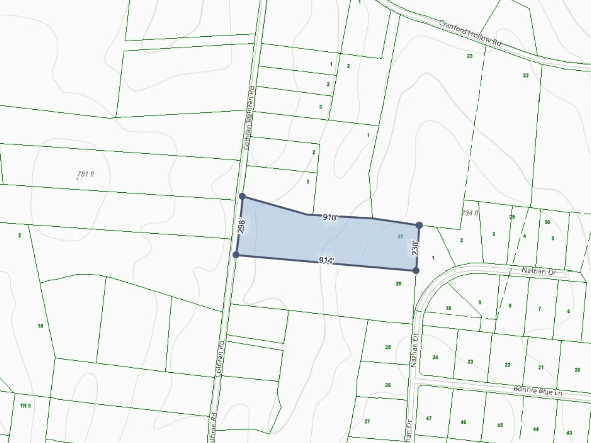 - Directions: From US Hwy 412 turn onto Cranford Hollow Rd for 0.1 mi, then sharp turn to the right onto Cothran Rd. Lot will be on your right in 0.3 mi.