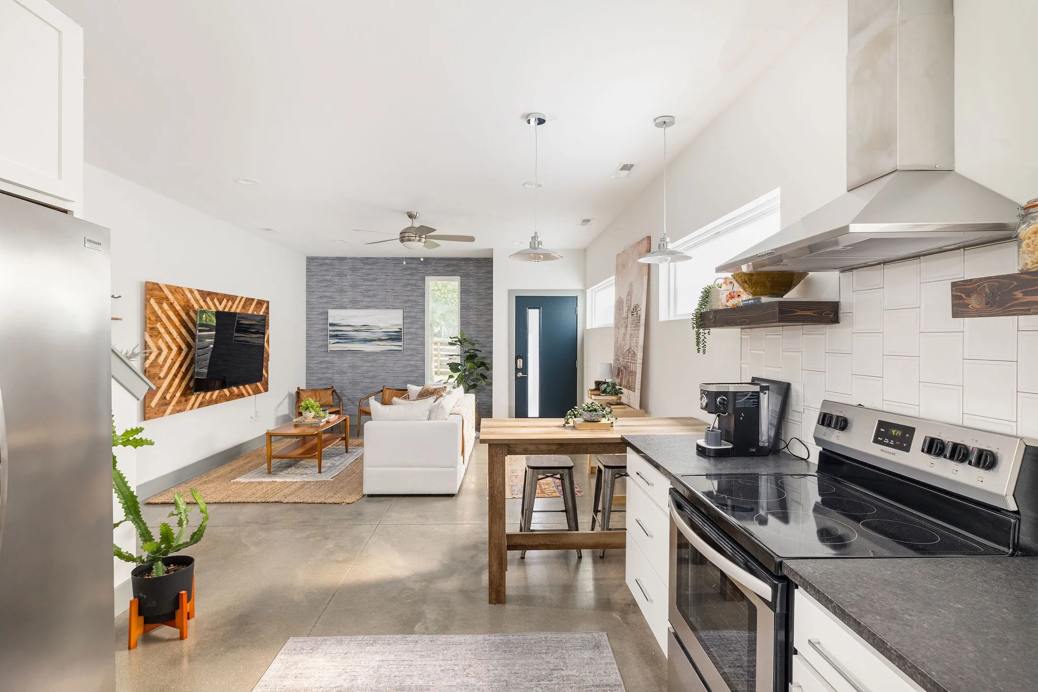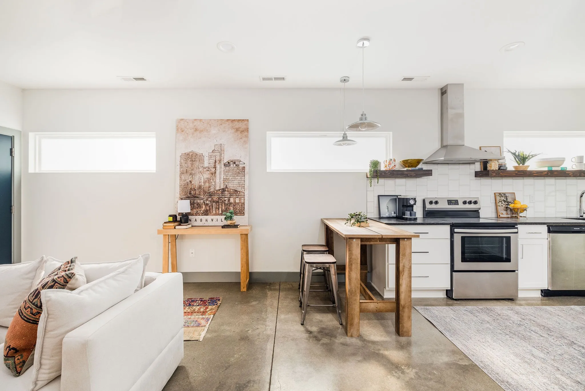 Feel the simplicity of clean lines and light filled rooms in this contemporary and Nordic-inspired home! Surrounded by mature trees and adjacent undeveloped land, Straightway Circle is a little known gem which offers in-town serenity while being a short sidewalk-lined jaunt to some of our favorite East Nashville restaurants, bars, and coffee! Thoughtful floor plan with smart storage helps this tidy space live large! This home offers low maintenance living, which frees you to entertain the things you want to, with durable and consistently beautiful concrete floors downstairs, warm hardwood upstairs, smart storage, and easy to maintain fenced front yard! A well kept parking pad will greet you after a day’s work with 2 designated spaces and plenty of parking for them out front! Turn key rental with competitive rents for those looking for a solid investment! Come on down to this delicious slice where the neighbors are friendly and the times are good: Welcome home to Straightway Circle!
