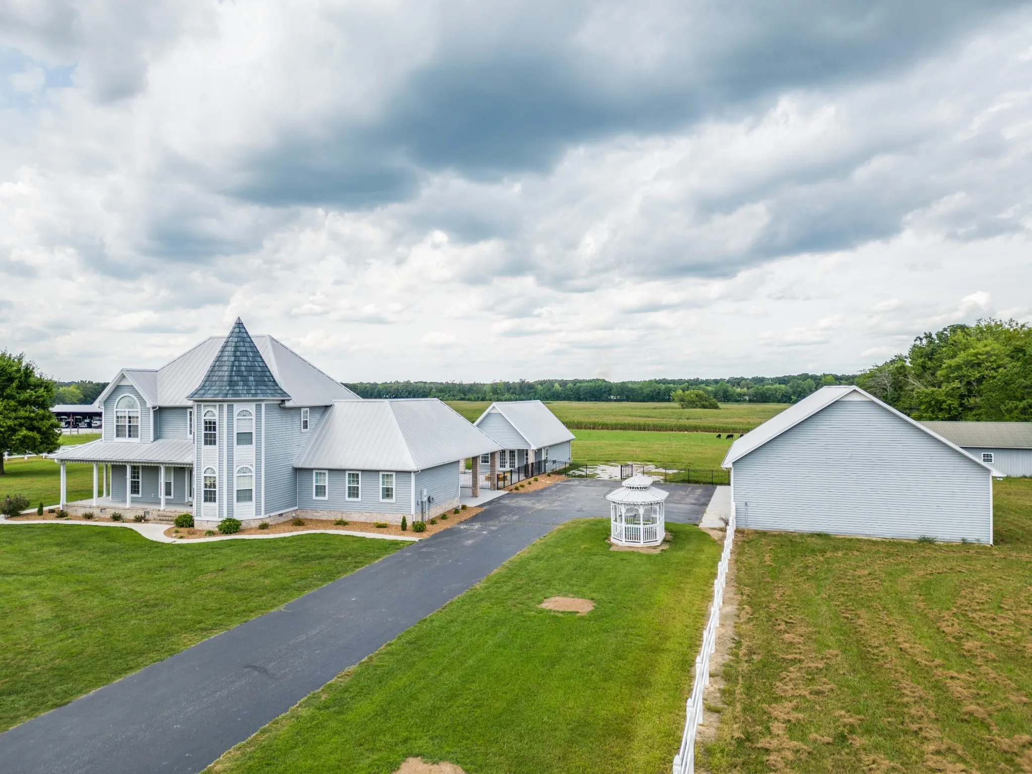 +"PublicRemarks": "Welcome to this exquisite Victorian-style home on 5 acres, where modern comforts harmonize with timeless elegance. This property offers 3 bedrooms, 2.5 baths, & a beautifully designed interior. The spacious kitchen features granite, s/s appliances, & a peninsula island. The breakfast room & formal DR provide ample space for hosting gatherings or enjoying meals w/loved ones. The separate den w/fireplace offers a cozy retreat, while the LR provides versatile space for relaxation & entertainment. Step outside to discover the allure of the inground pool w/slide & firepit, perfect for summertime relaxation. The pool/guesthouse provides an ideal space for hosting & entertaining guests, while the oversized 4-car detached garage & charming barn add to the versatility of this estate. Conveniently located to I-24, this home combines the tranquility of country living w/accessibility to urban conveniences, making it the perfect retreat to call your own! New landscaping! No city taxes!"