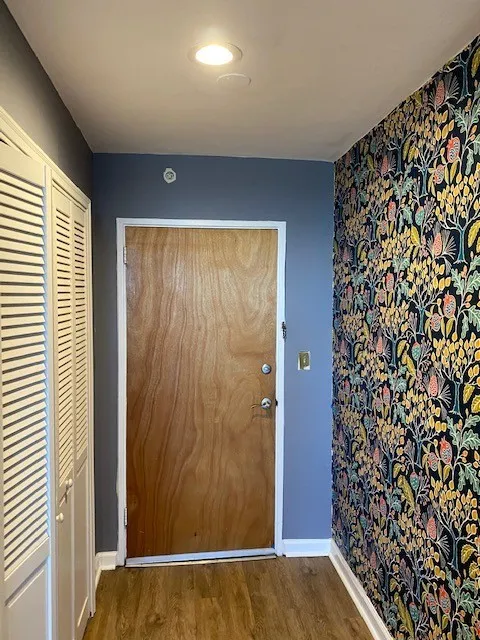 Condo face front side of building, just off elevator with 24 hour security and doorman.One covered parking space.Within walking distance to many wonderful places to dine and great parks.