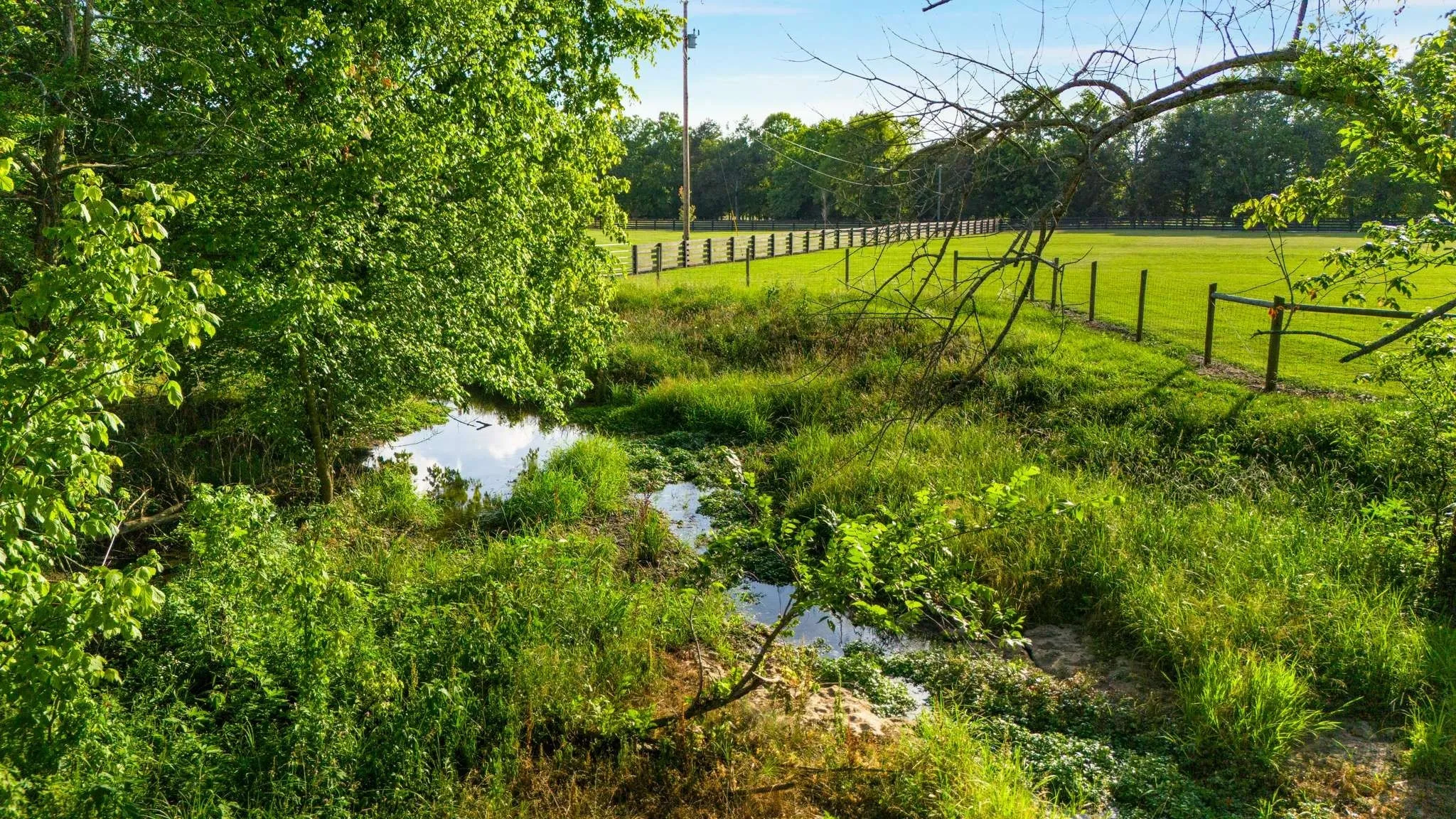 The perfect mix of field and mature trees, fiber internet at the road as well as electric, water and natural gas!