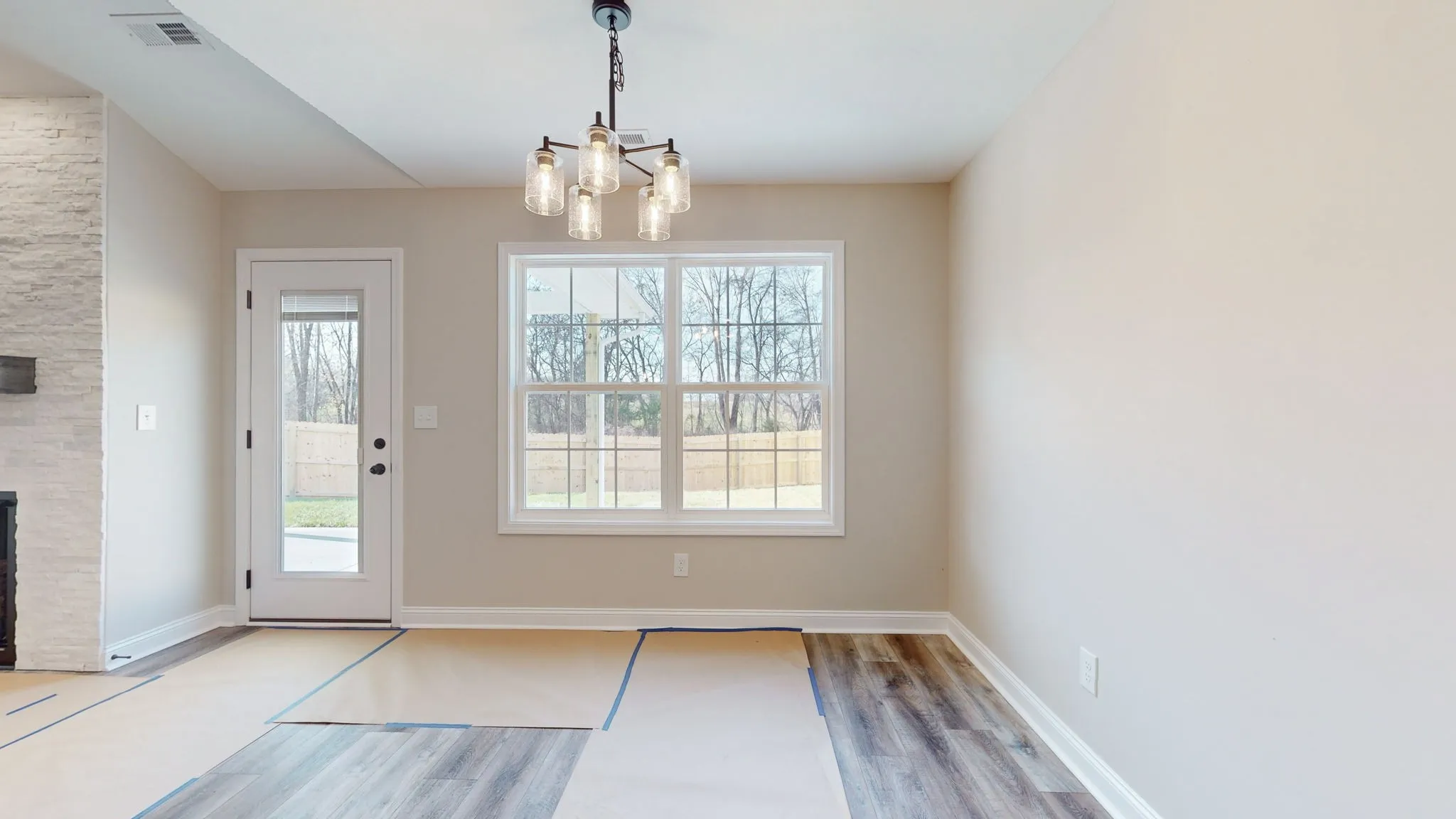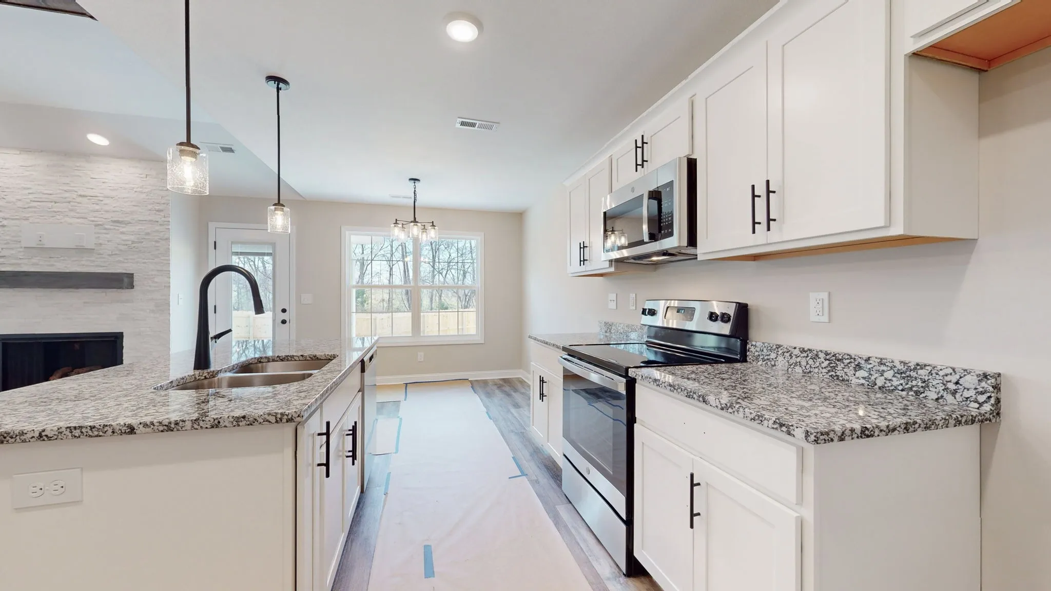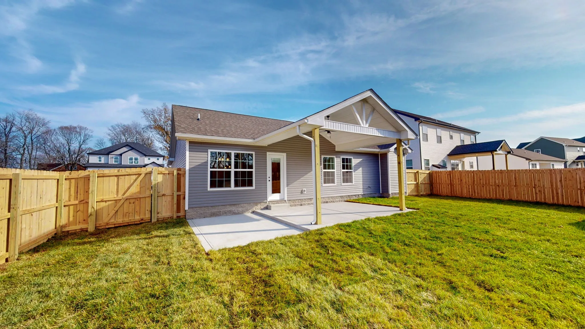 Move in ready!!. New construction, one level, 2 car garage,3 bed 2 bath, with double bowl vanity, LVP waterproof flooring, tile floors in bathrooms, stone fireplace with mantel, mini blinds, fridge and fenced in backyard. Covered patio with extended barbeque patio. Home is located close to Ft Campbell and easy commute to all local amenities. Seller to offer up to $18,000 in concessions to include rate buy down. No City Taxes.