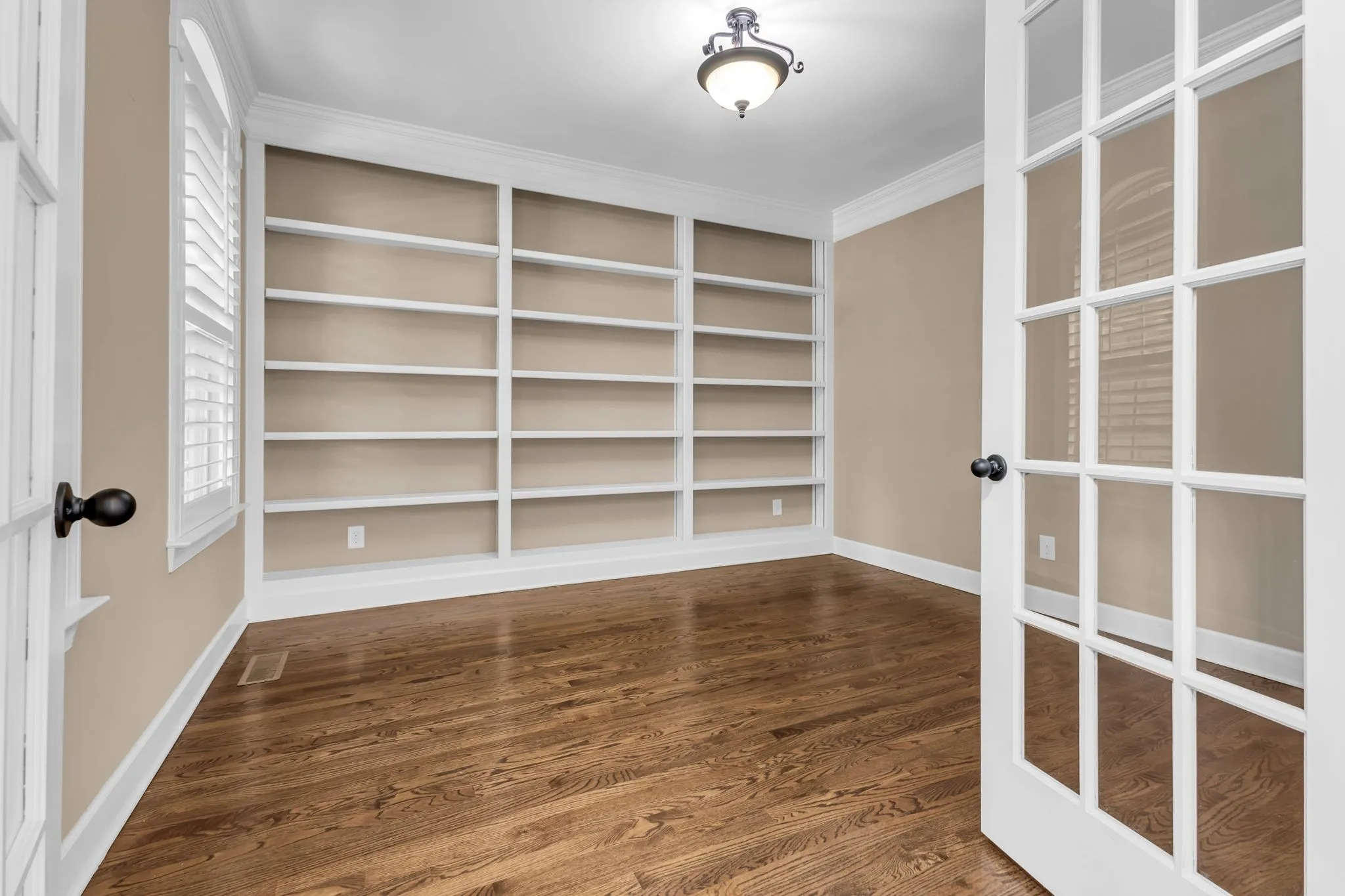 Interior Features Walk-In Closet(s), Primary Bedroom Main Floor, High Ceilings, Bookcases, Ceiling Fan(s), Entry Foyer, Water Filter