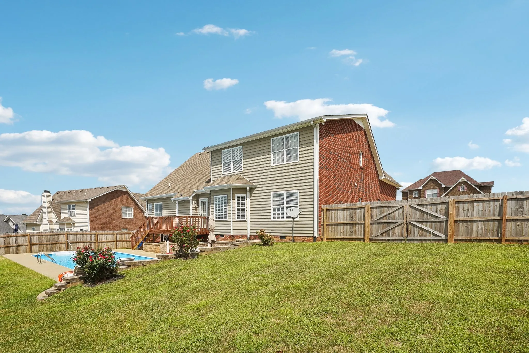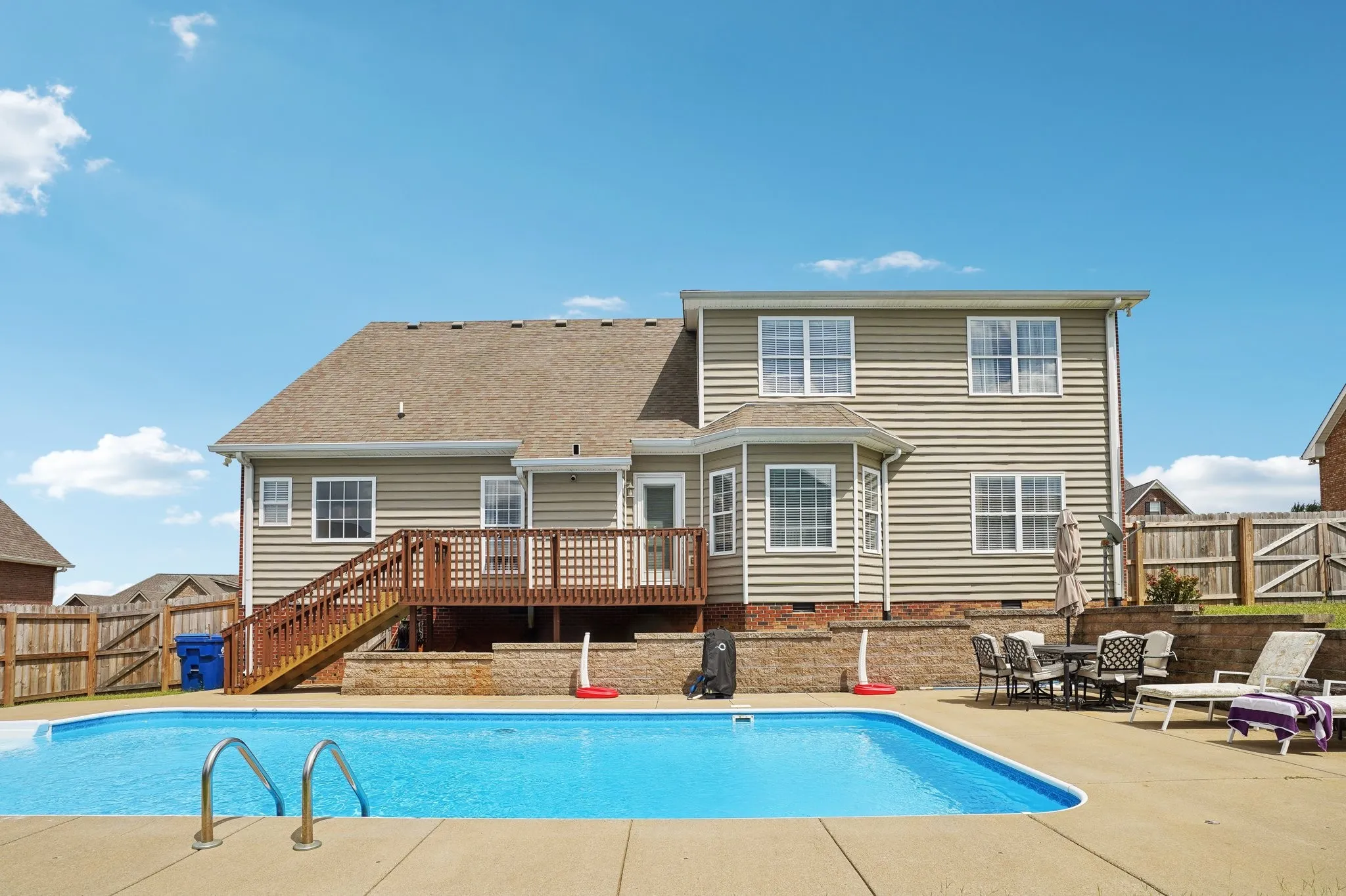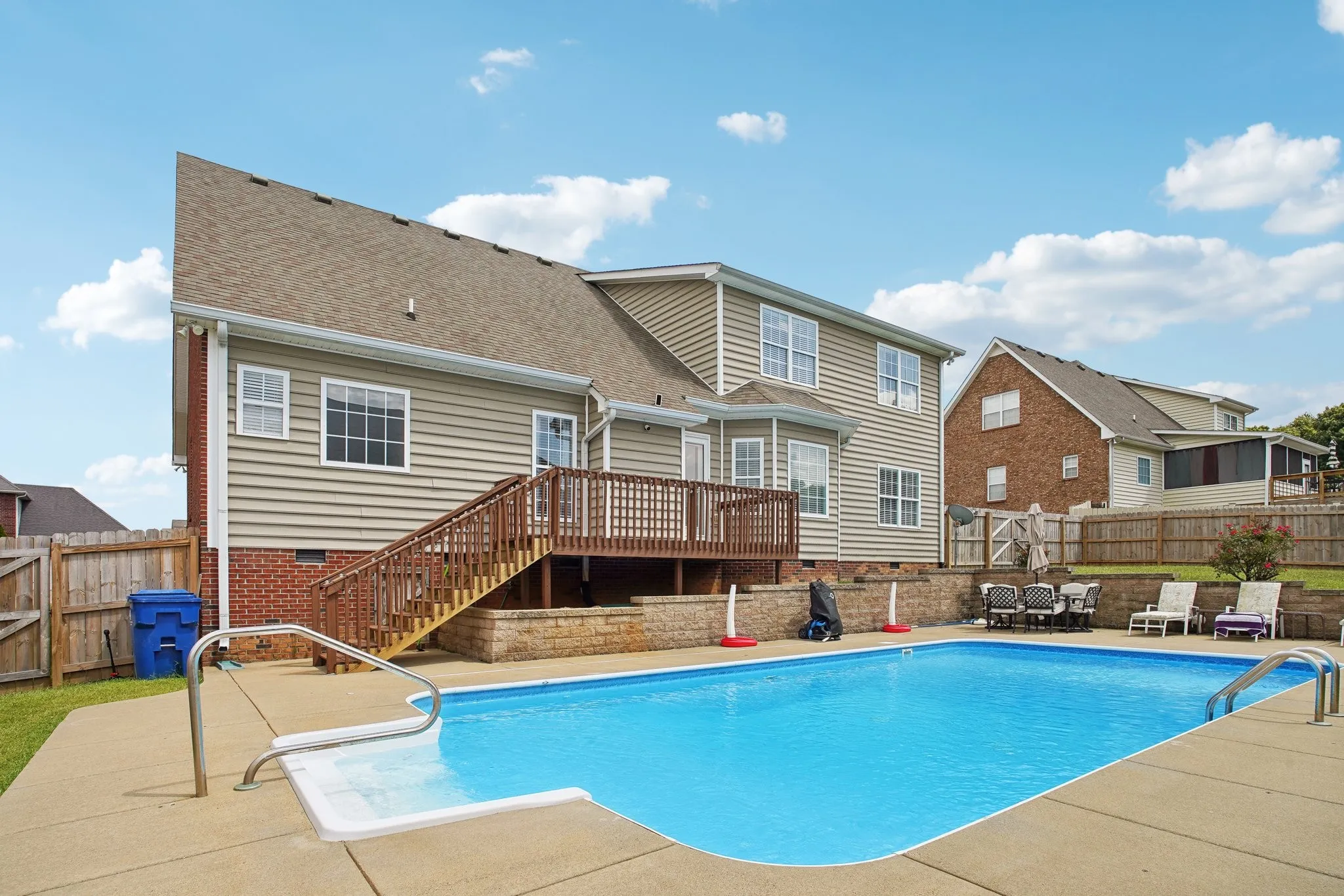 Located mins from I-24 in the Terraces of Hearthstone, this beautiful home has a 2-story foyer with 4 bedrooms, 3 full bathrooms & elegant crown molding throughout. The home has tons of upgrades with two new HVAC units in 2021; granite countertops & backsplash, & new fence in 2023; water heater in 2024; & new GE appliances with gas stove, carpet, storm doors, & paint in 2022. The gorgeous inground pool (new generator added in 2023) is a wonderful place for entertaining & family fun. The eat-in kitchen & separate dining room are great for family dinners. Plenty of storage space with his & her closets in the master bedroom, spacious closets in the other 3-bedrooms, and two pantries in the kitchen. The HUGE bonus room can be used as a 5th bedroom/office/or additional entertainment space. Simply safe security, above head storage in the garage, pool table & pool furniture will remain. Home warranty included, until May 2026! Come see this well-maintained home, you & your family will love it!