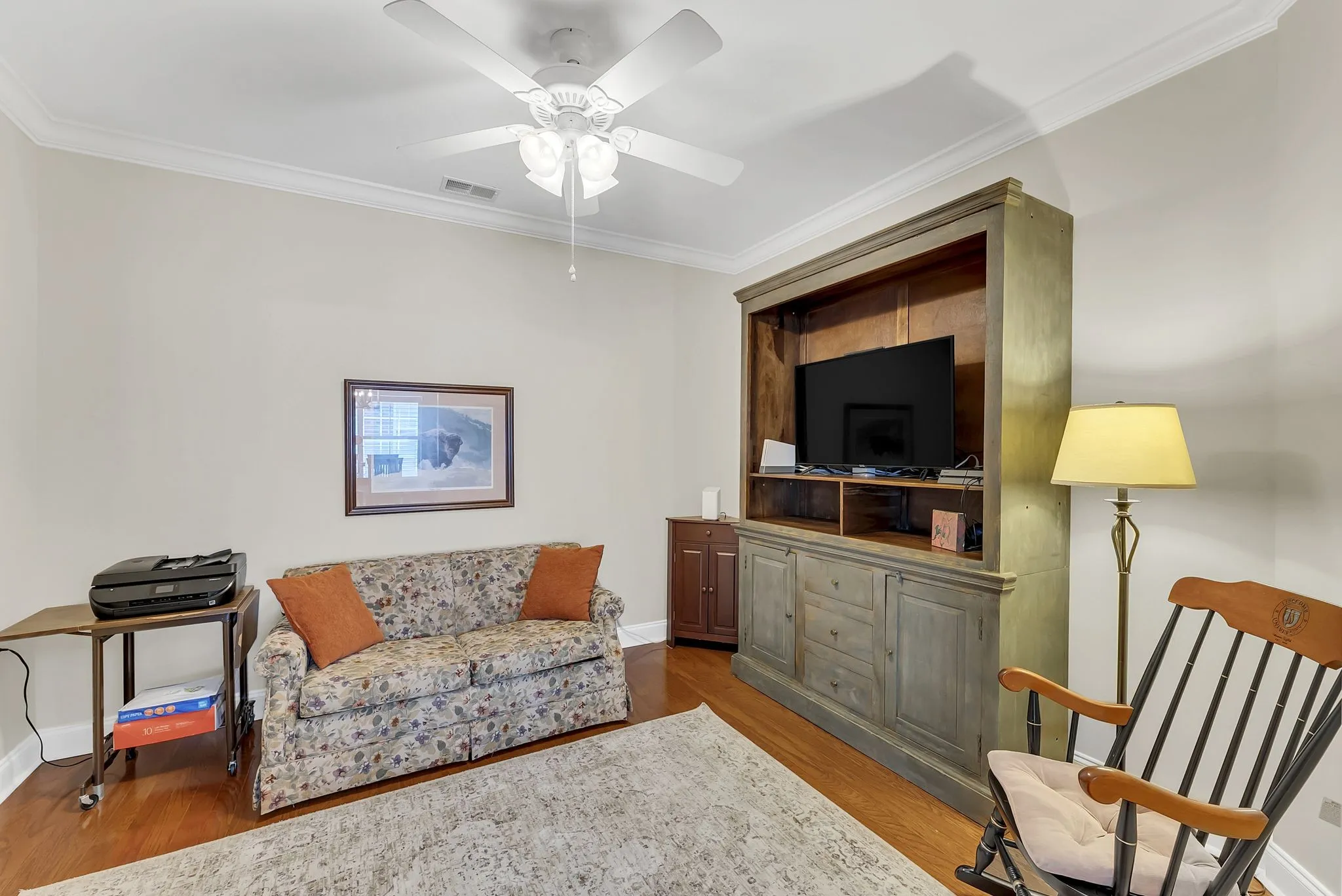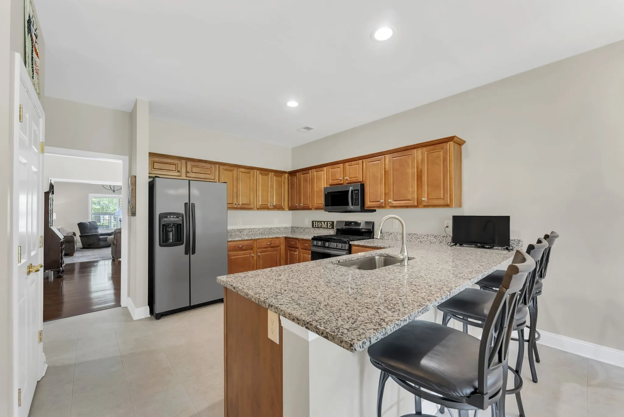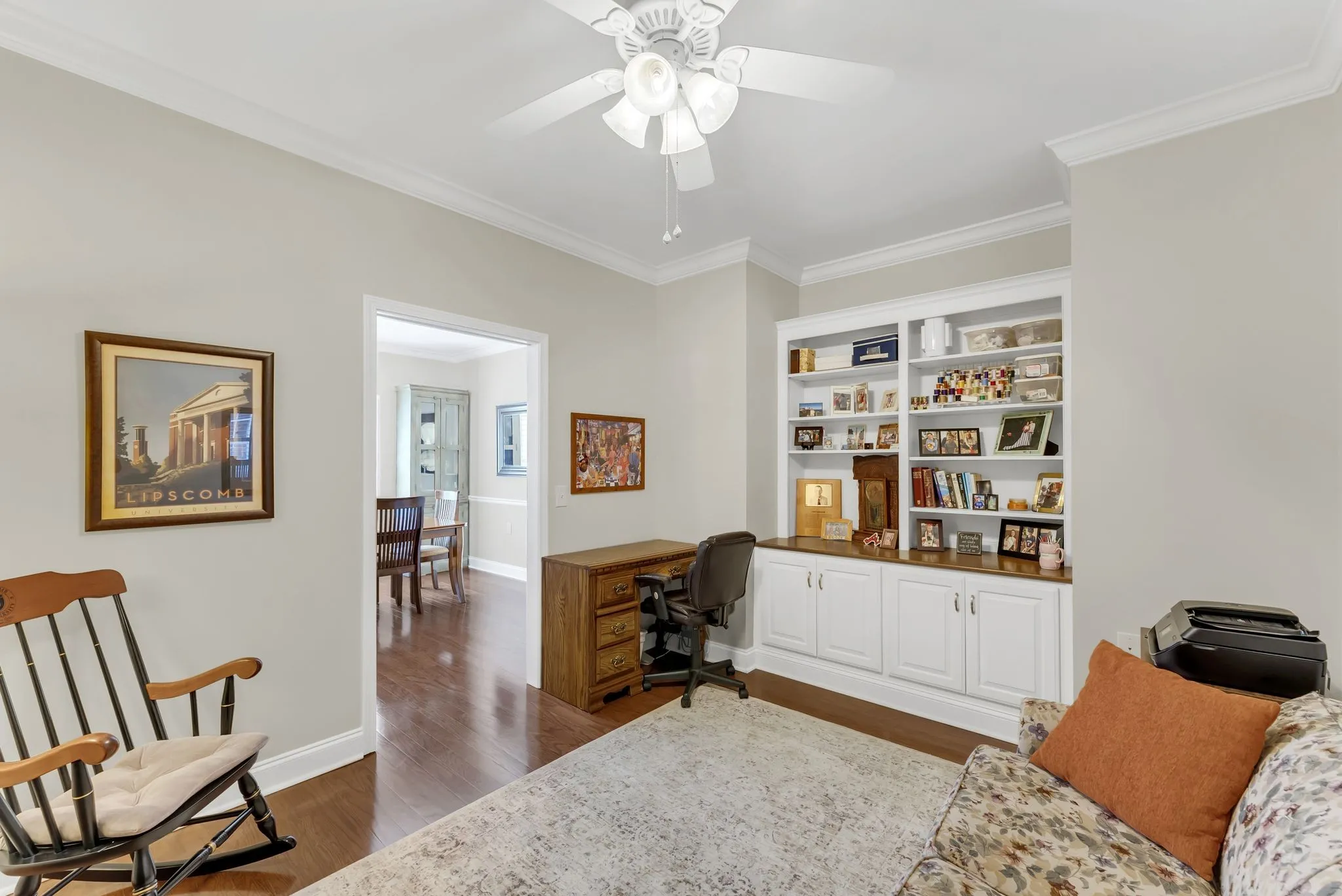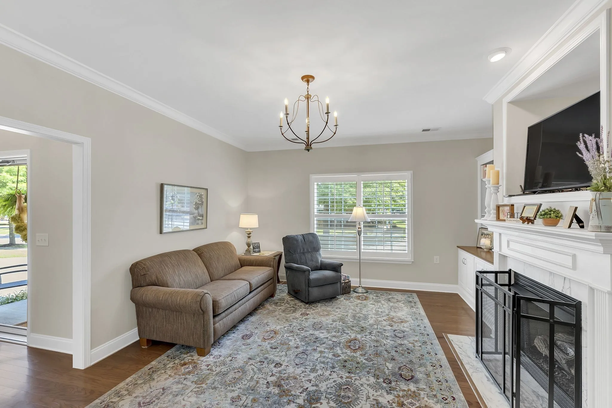 55+ turn-key residence just minutes from downtown Franklin! Well maintained and updated 2 bedroom one level unit on a flat lot. Hardwoods in living, dining room, and hallway. Tile flooring in both bathrooms. Useful built-ins along living room wall. Plenty of usable green space in the back with private patio and side fencing. HOA includes all yard and landscaping maintenance. UPDATES: New dishwasher, microwave, gas range, new roof (2023), granite counters, gas heat (2024) and new cover on back porch. Owner would like to keep the light fixtures in the entry foyer, dining room and breakfast room light fixtures.