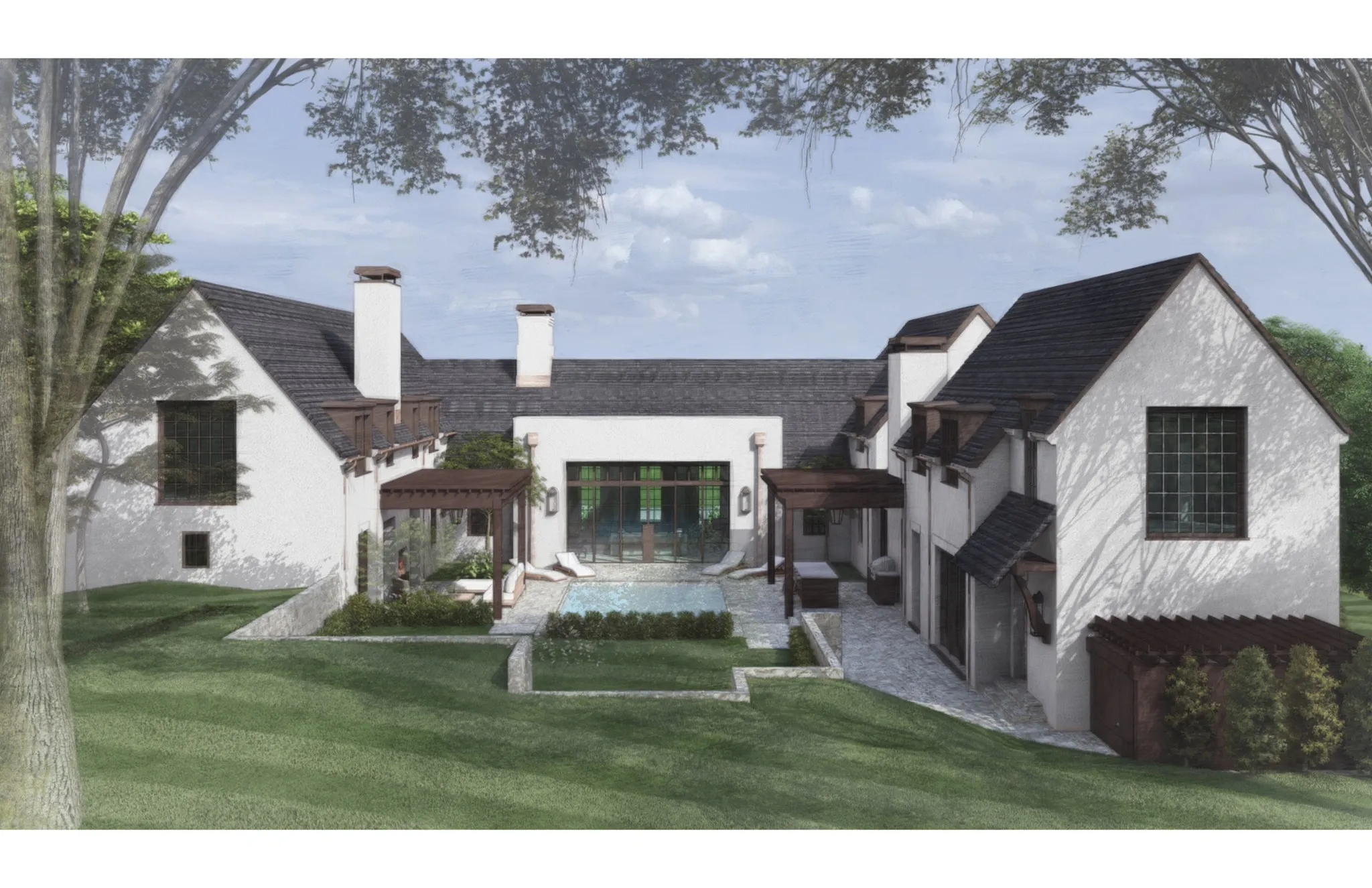 Welcome to 1553 Harding Place, a brand-new in-town estate blending timeless European farmhouse charm with modern sophistication. Designed by the acclaimed Pfeffer Torode Architecture and set on 1.69 private wooded acres, this home offers an unmatched combination of impeccable design, privacy, and convenience in Forest Hills. Construction has not yet started, and buyers have the rare opportunity to customize selections, ensuring a truly personalized luxury experience. With over 9,000 square feet of thoughtfully designed living space, this estate features five bedrooms, five full baths, and three half baths. Every detail reflects superior craftsmanship, from the plaster interior walls and soaring ceilings to the oversized windows that flood the home with natural light. A retractable glass wall seamlessly connects the indoors to the expansive outdoor oasis, which includes a pool, spa, pool house, and outdoor kitchen. This estate is an entertainer’s dream, offering indoor and outdoor fireplaces, a rooftop terrace, a wine cellar, and a golf and sports simulator room. Additional luxury amenities include a wellness room, an elevator, and a five-car garage with a motor court, accessed through two gated entrances for ultimate privacy and convenience. Designed for effortless living, the property comes with fully prepared plans, a cleared site, and obtained permits. Buyers can bypass lengthy custom home timelines and enjoy the benefits of a meticulously planned, move-in-ready masterpiece. Collaborate with the world-class design team to tailor the finishing touches to your vision. Located just minutes from Green Hills’ premier shopping and dining destinations, 1553 Harding Place combines modern luxury with classic elegance in one of Nashville’s most coveted neighborhoods.