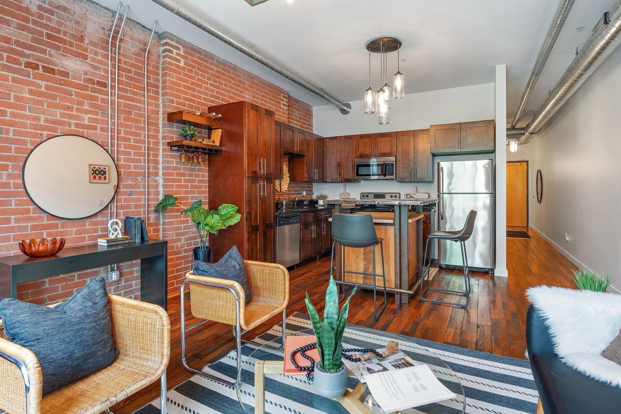 Werthan Lofts condo in the heart of historic Germantown! Full of unique industrial character with exposed brick walls, original mill hardwood flooring and soaring ceilings. The kitchen seamlessly opens to the living area creating an inviting space flooded with natural light pouring in through floor to ceiling windows. This unit boasts a rare corner position within the Boiler building offering privacy and exclusivity among just 10 units in total. Werthan Lofts amenities include two pools, a gym, yoga studio, bocce ball court, cabana with an outdoor kitchen and gated and secure garage parking. Steps to some of the best restaurants in Nashville, charming coffee shops, retail, the Sounds baseball stadium, Brooklyn Bowl, Farmers Market and Bicentennial Mall. Downtown Nashville + interstate access are just moments away, ensuring effortless connectivity. Own a piece of history in one of Nashville’s most sought after neighborhoods!
