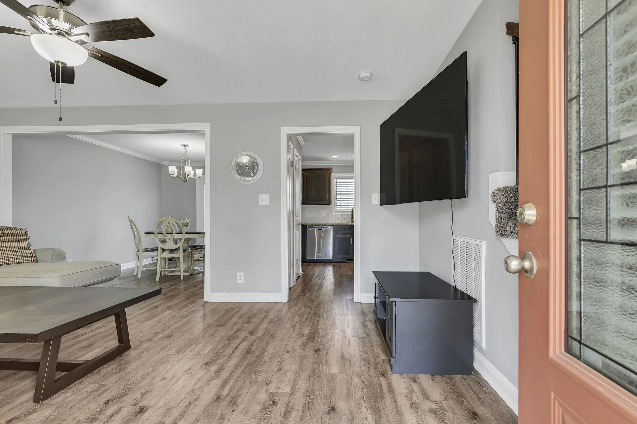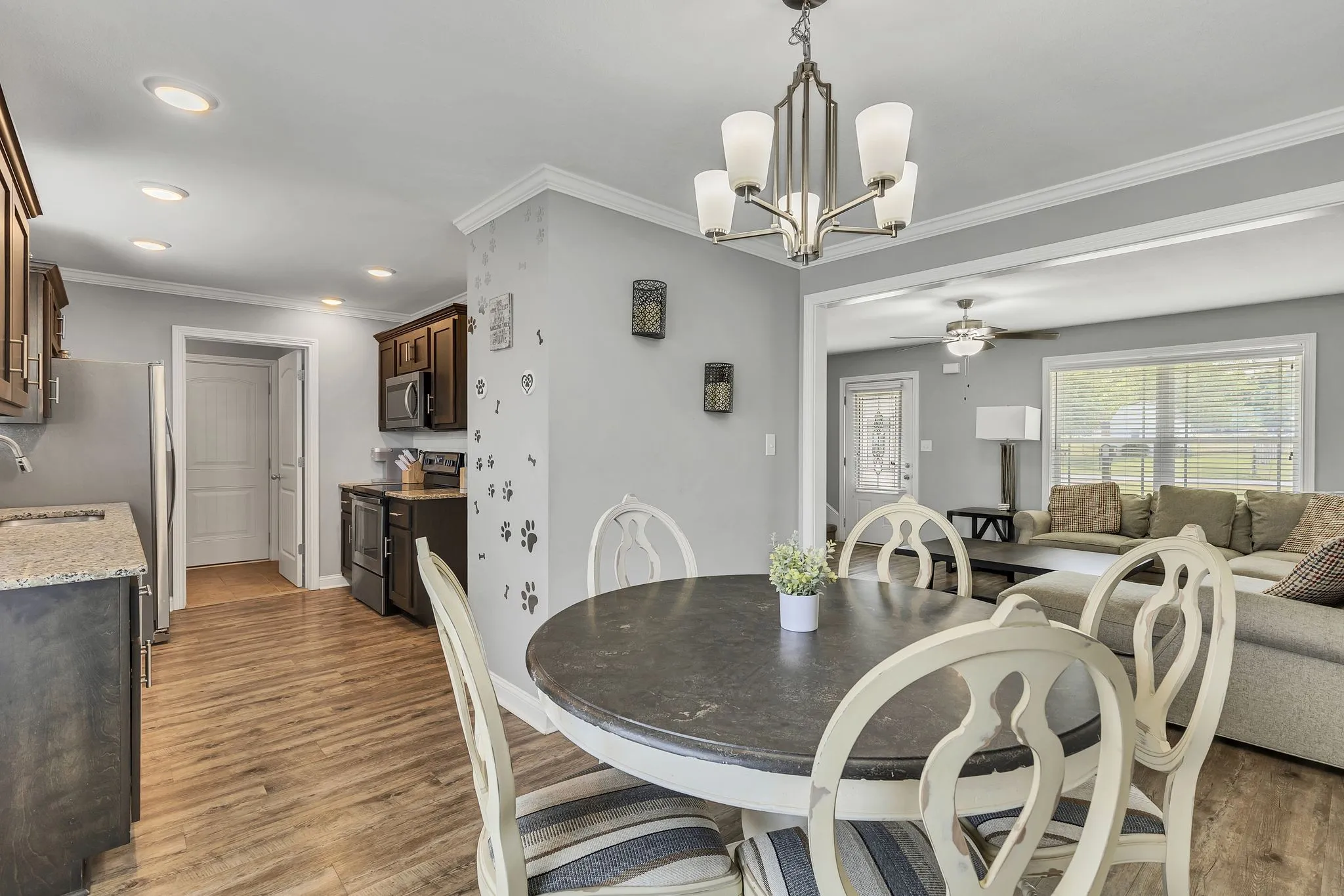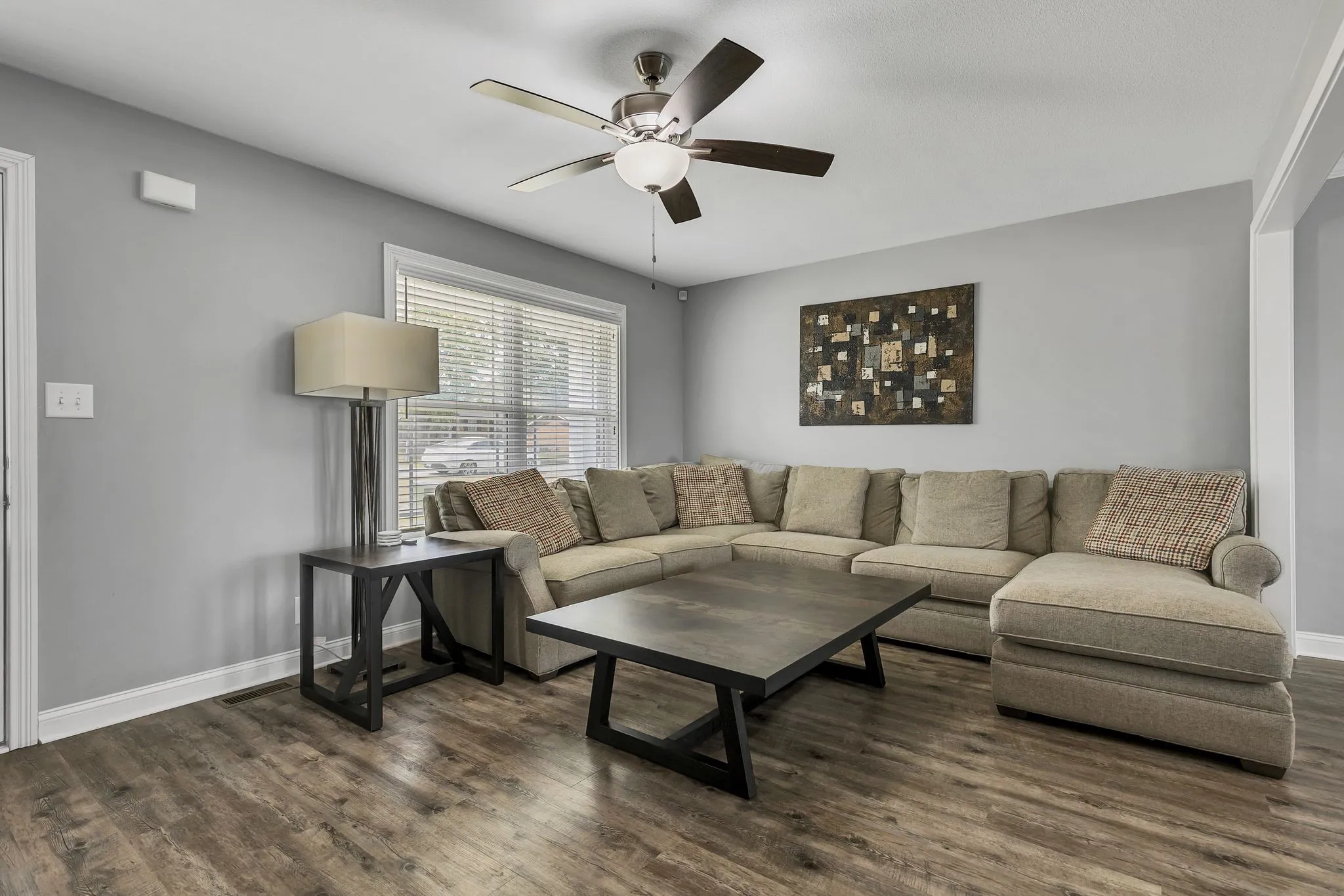 Back on market, no fault to the seller! This 4-bedroom home features an open-concept living and dining area, perfect for entertaining. The primary suite offers trey ceilings, his and hers closets, and a private bath with double vanities. The extra-large second bedroom includes custom cabinets and desks which can be used for crafts, games, and more. Enjoy the large deck with storage underneath, a custom walkway, and a fully fenced backyard! The inviting front porch is a charming spot to relax, whether you’re enjoying a quiet morning or unwinding after a long day. Only 1 mile from 101st Parkway, this home offers quick access to I-24, the military base, shopping, and dining. Perfectly located and no HOA!