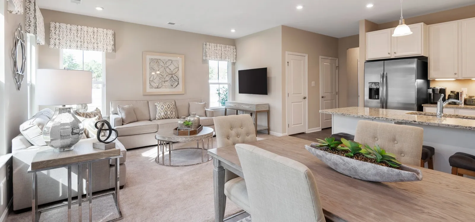 ONE OF THE LAST END UNITS! Extra windows, open space living room/dining/kitchen, tray ceiling in owner’s suite with two oversized closets! Attic for storage, 10×12 composite timbertech deck on rear, one-car garage included