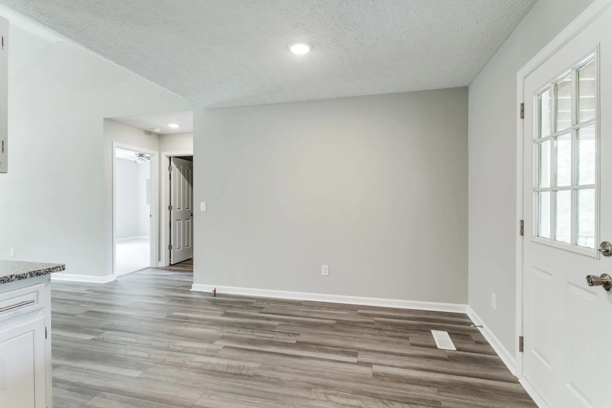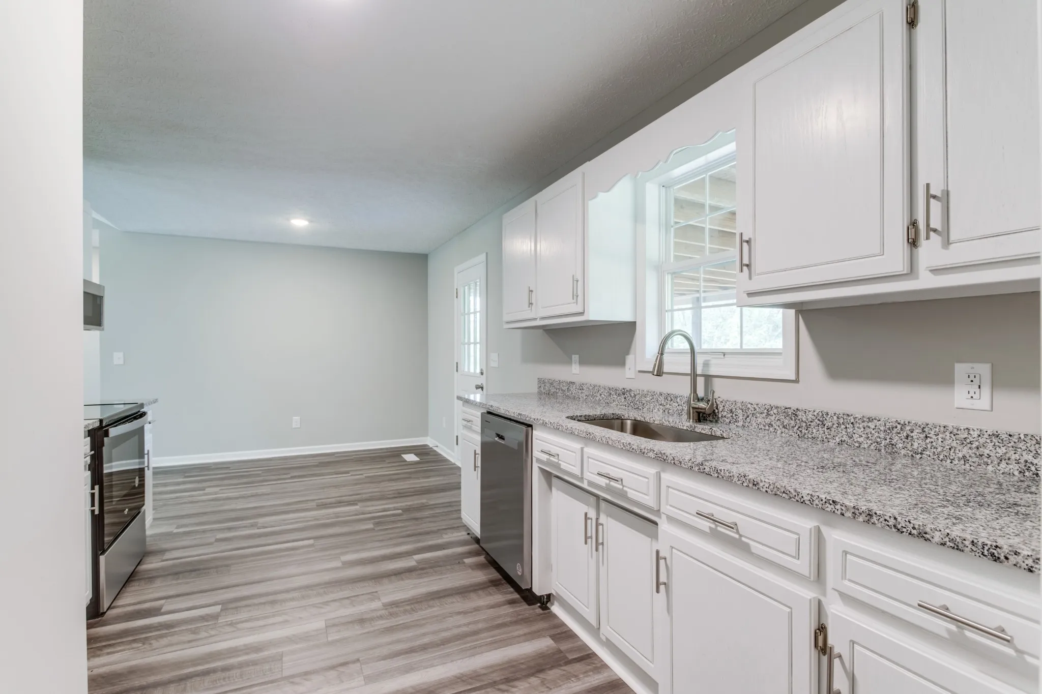 This newly renovated 3 bedroom, 2 bath home has a brand new roof and gutters, brand new siding, brand new flooring and freshly painted! Huge detached 2 car garage! The open floor plan features vaulted ceilings, new luxury vinyl plank flooring, and new carpet in bedrooms! Updated kitchen with new granite countertops and new stainless steel appliances. The primary suite includes a private renovated bath, and there’s plenty of room for everyone with two additional bedrooms and a newly renovated full bath. Enjoy the outdoors on the charming front porch or in the large fenced in backyard. Conveniently located near downtown Manchester, this home is ready for you to move in and enjoy!