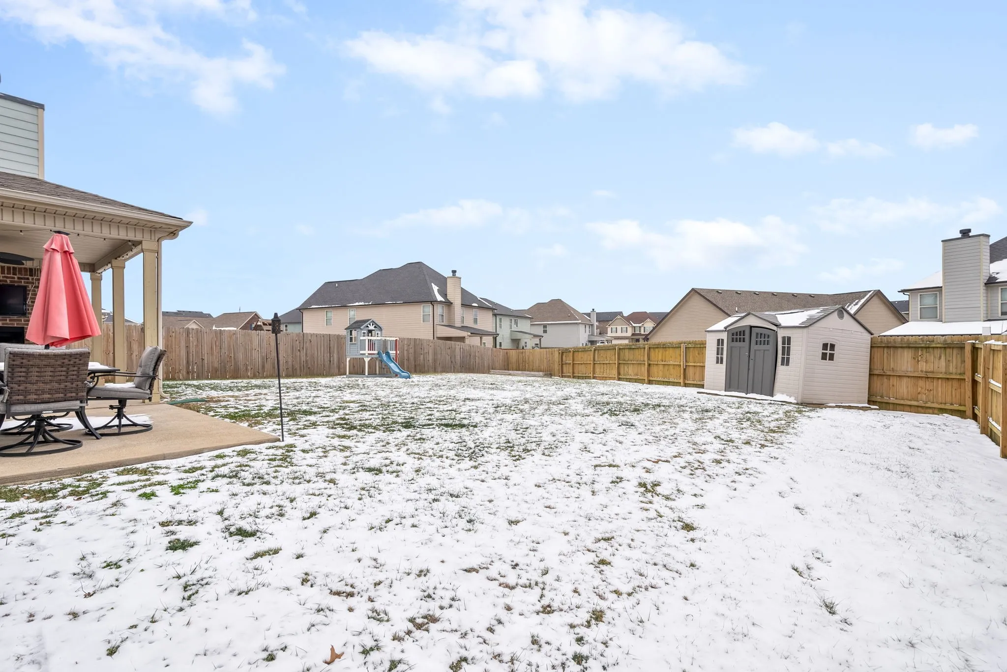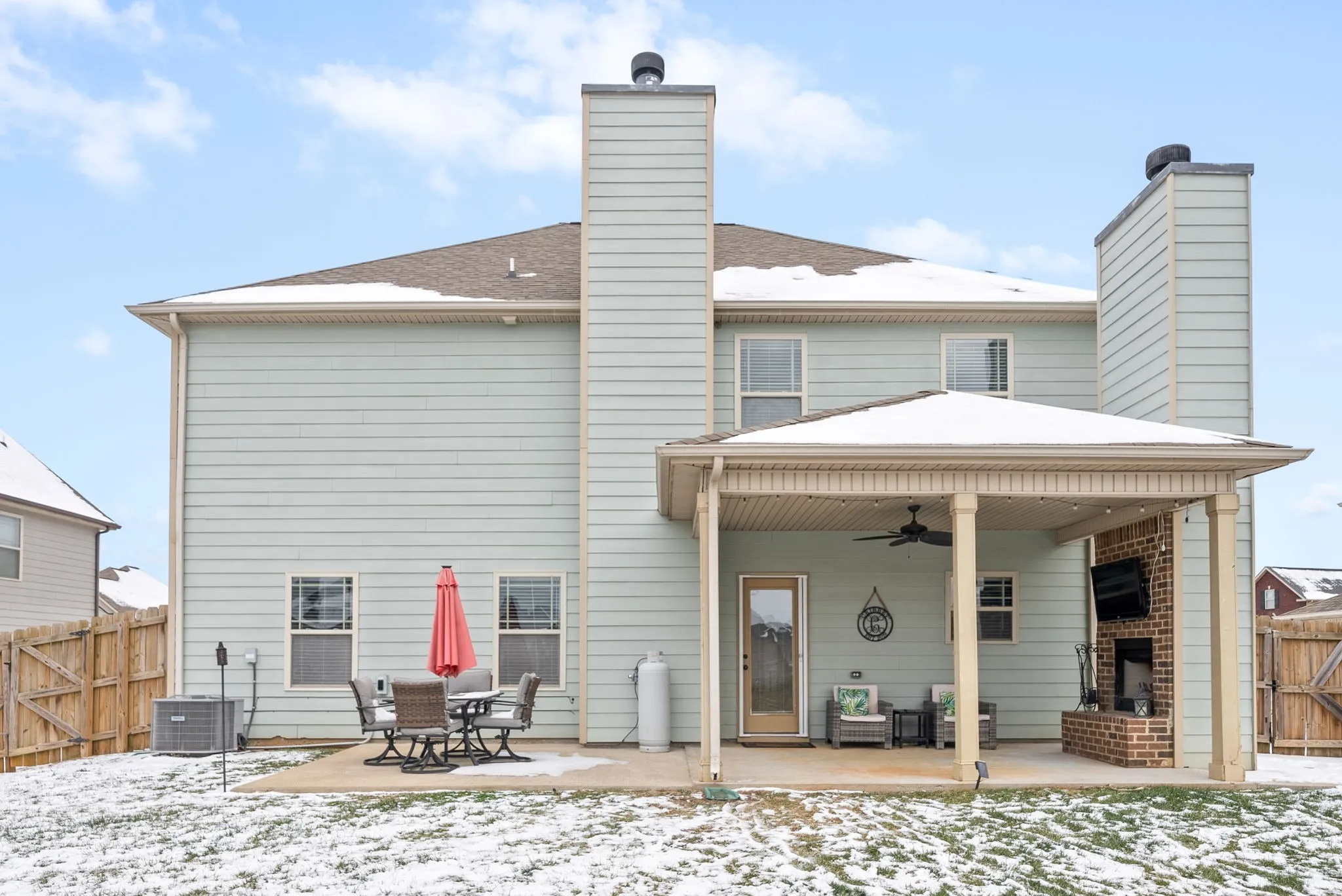 Welcome to this stunning 5 bedroom, 3 bath home located in a desirable area of Clarksville, TN. The spacious living room features a beautiful coffered ceiling with a gas fireplace. The living room flows into the gourmet kitchen, which is equipped with modern appliances, granite countertops, double full size ovens w/ convection and an abundance of storage. The back yard sits right off of the kitchen and has a stone fireplace with cable hook ups to watch your favorite TV channels while grilling out. This home has one of the largest backyards in the neighborhood. The primary 22×20 bedroom is a huge oasis, boasting an ensuite bathroom with a separate tub & shower and an extra large walk-in closet. Upstairs has four bedrooms, making this house one of the largest in the community. Conveniently located near schools, parks, and shopping centers, this house will make the perfect home. Don’t wait, come and see it today!