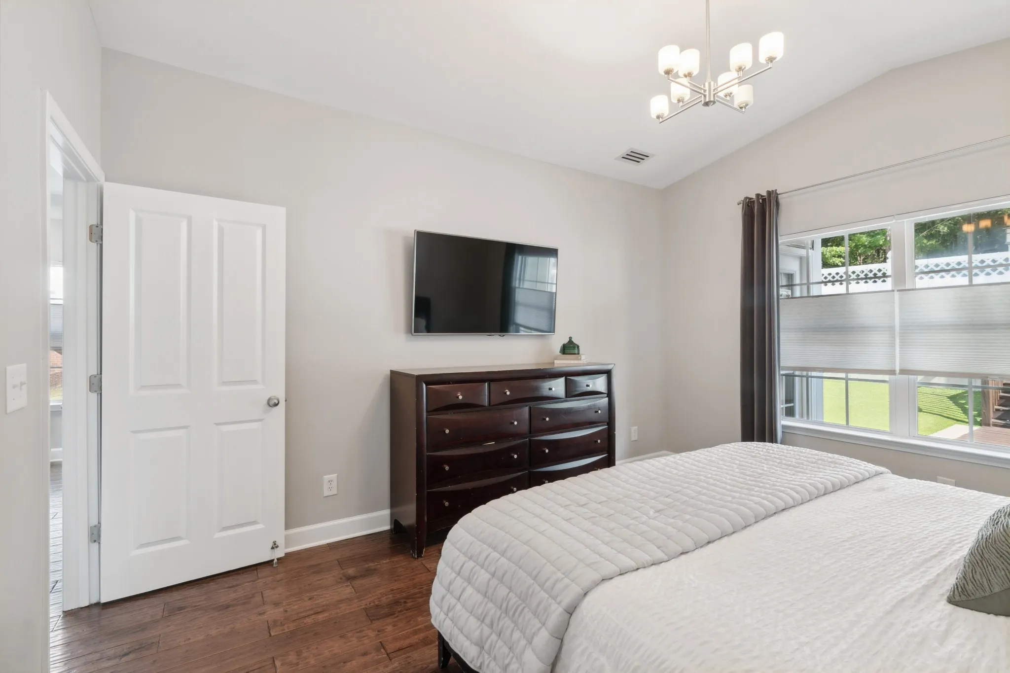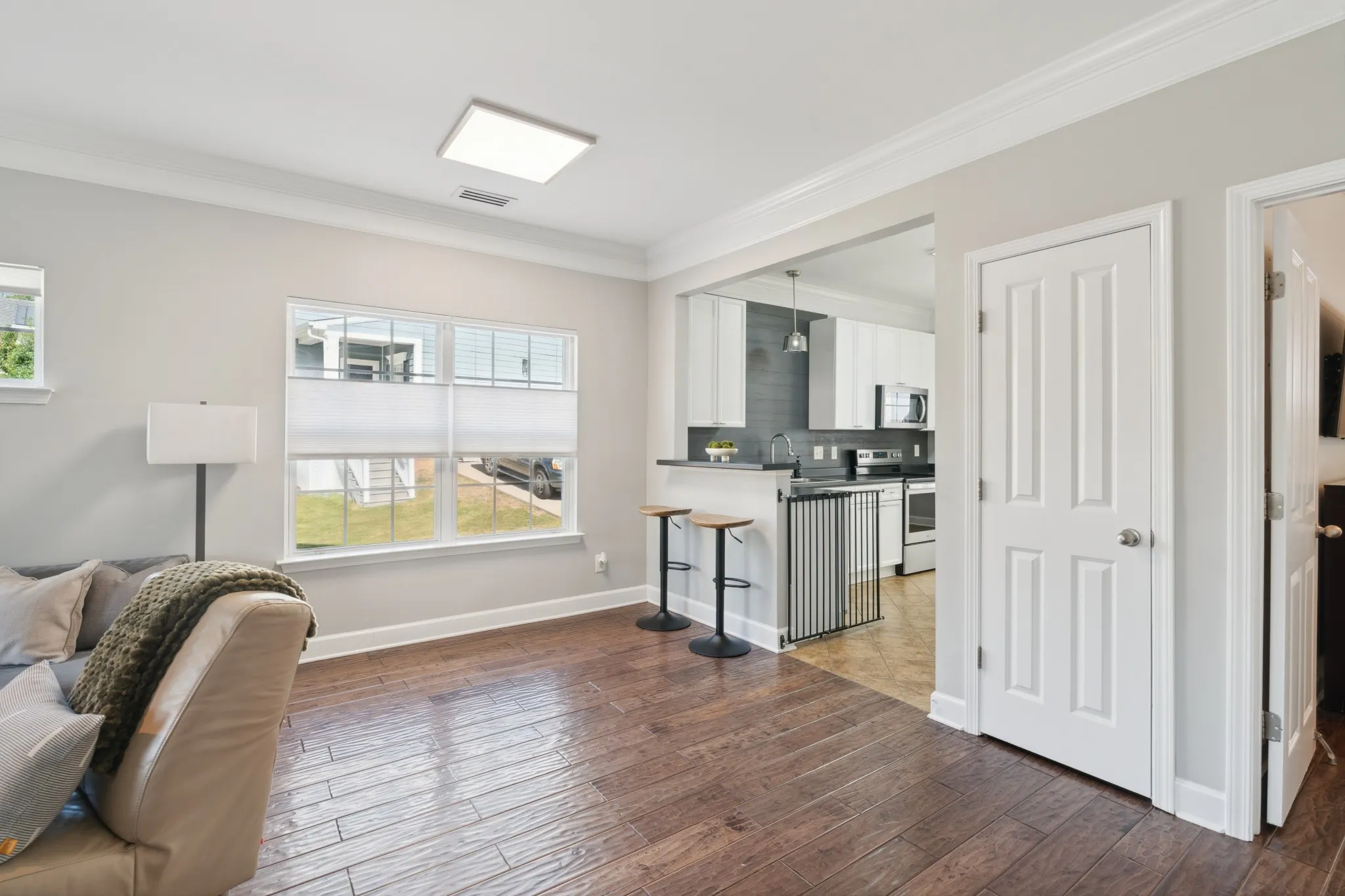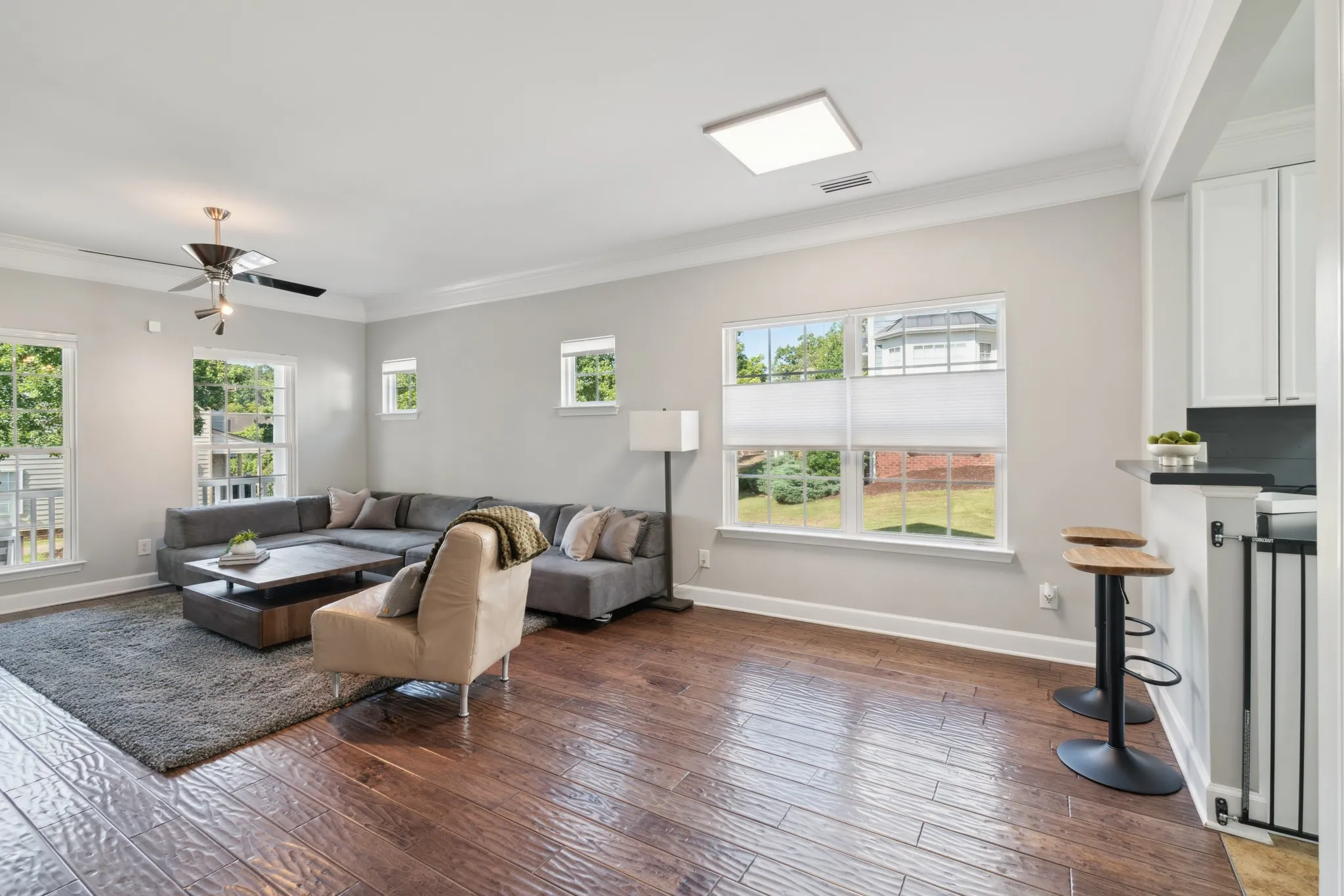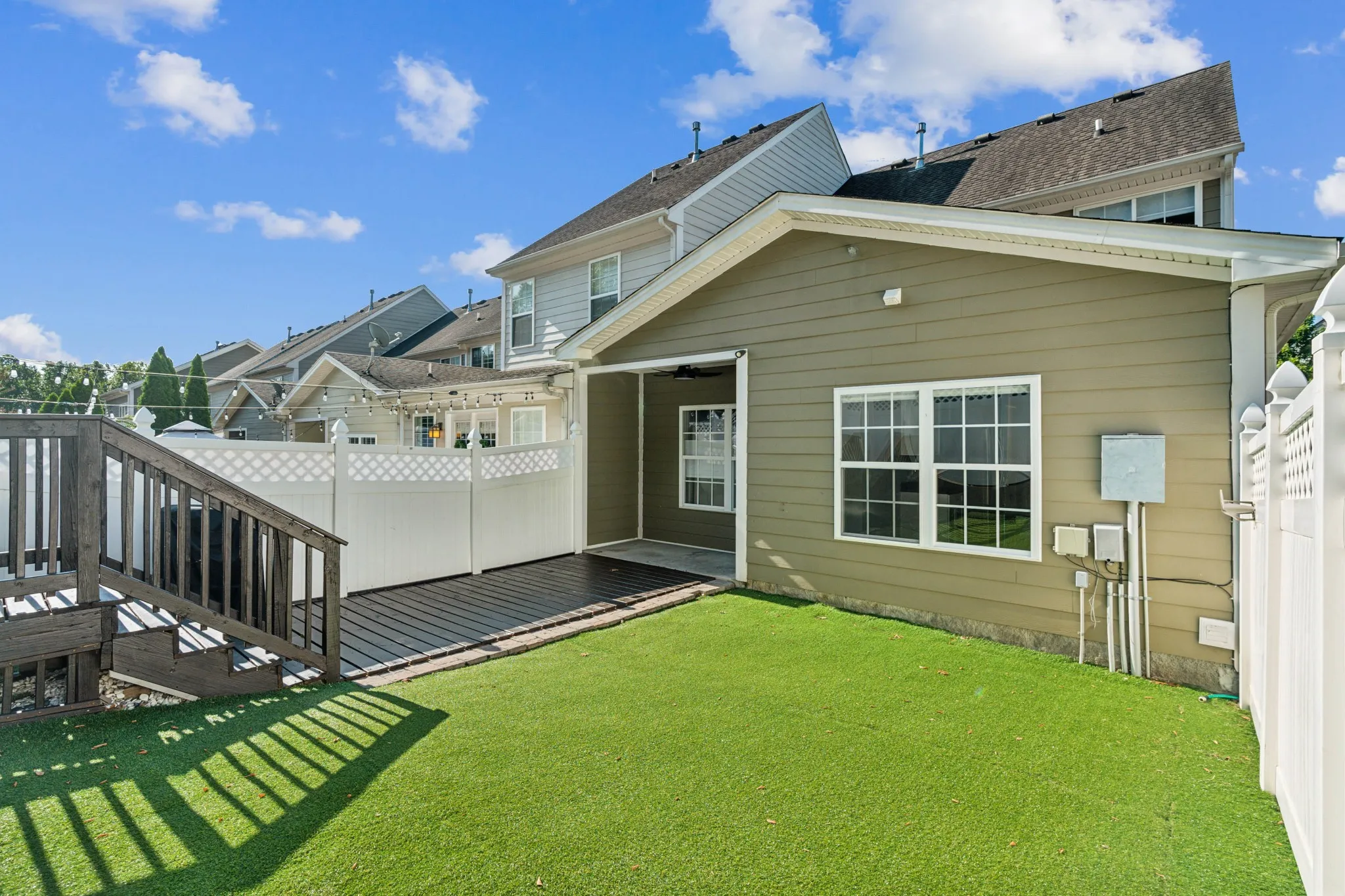 Welcome to your dream home in the sought-after Lenox Village community! This spacious 3-bedroom, 2.5-bathroom end unit townhome offers the perfect blend of modern living and natural tranquility. Key Features: – Rare 3 bedroom end unit backing up to serene wooded area – Open floor plan with abundant natural light – Hardwood flooring and tile throughout – no carpet! – Updated kitchen with stainless steel appliances – Primary suite on the main level with vaulted ceilings and walk-in closet – Two additional bedrooms and loft upstairs with a Jack-and-Jill bathroom – Private, low-maintenance backyard with turf, perfect for relaxation or entertaining – Large driveway providing ample parking