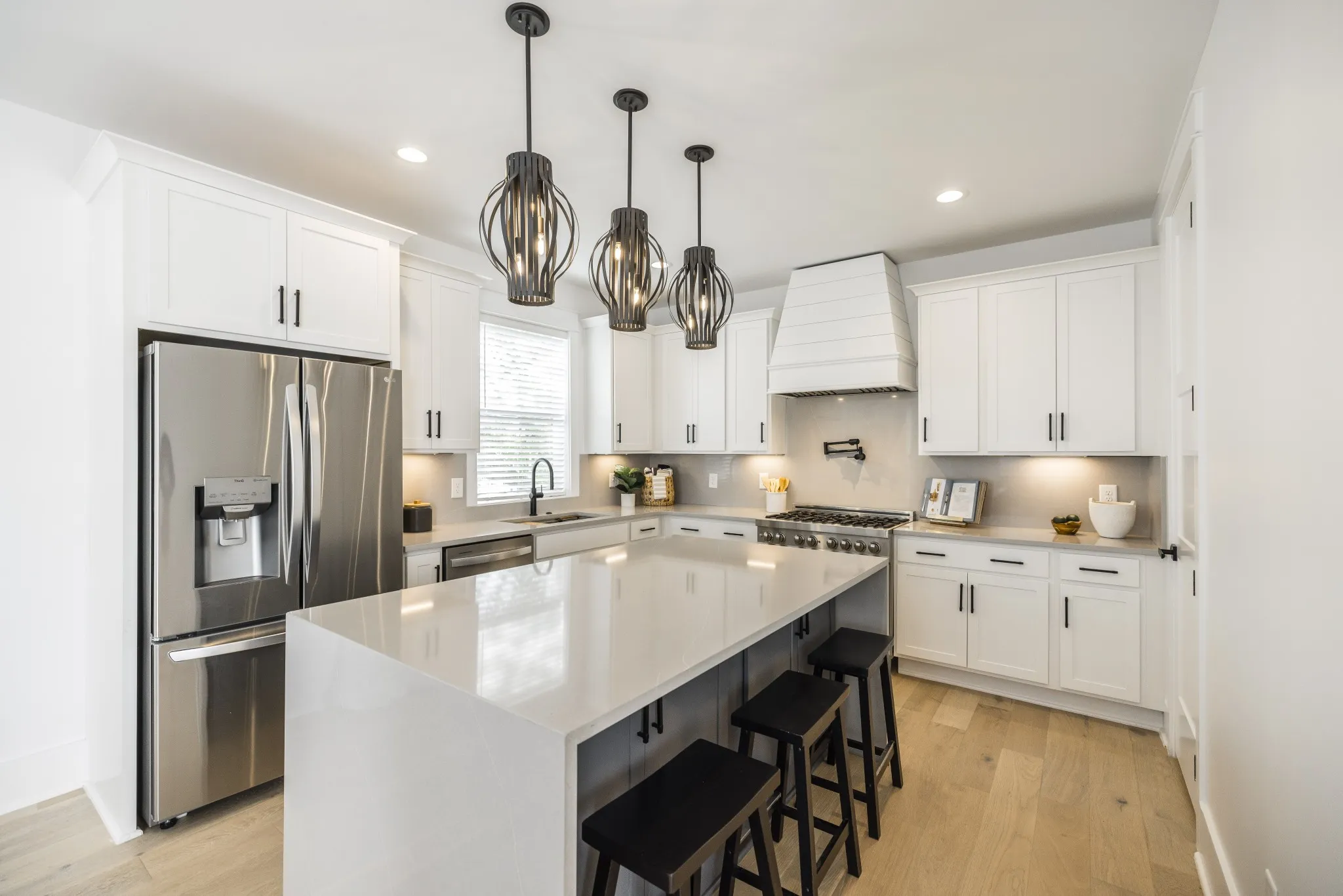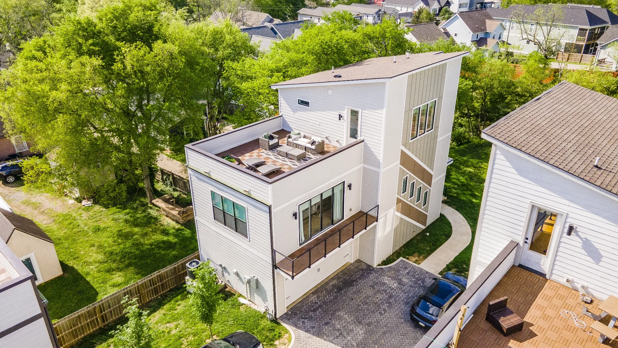 Modern elegance meets masterful craftsmanship in this exquisite 2022 custom home. Indulge in the best of city living while enjoying the charm of West Nashville shops and dining. Upon entry, you’re met with a meticulously crafted organization drop zone, designed to suit your lifestyle. You’ll also find two spacious bedrooms and adjoining full bath. The main level features an inviting, sun-drenched great room with balcony access. The open-concept kitchen boasts Quartz countertops, a waterfall island, pot filler, and top-of-the-line stainless steel appliances. Luxury finishes abound, including custom lighting, stainless steel cable handrails, and a gas tankless water heater. A luxurious 3rd floor primary suite offers the ultimate in comfort and privacy! The real showstopper is the rooftop deck, ideal for entertaining or simply soaking in a sunrise/sunset. Additional features include a two-car garage. Don’t miss this chance to immerse yourself in the epitome of modern Nashville living.